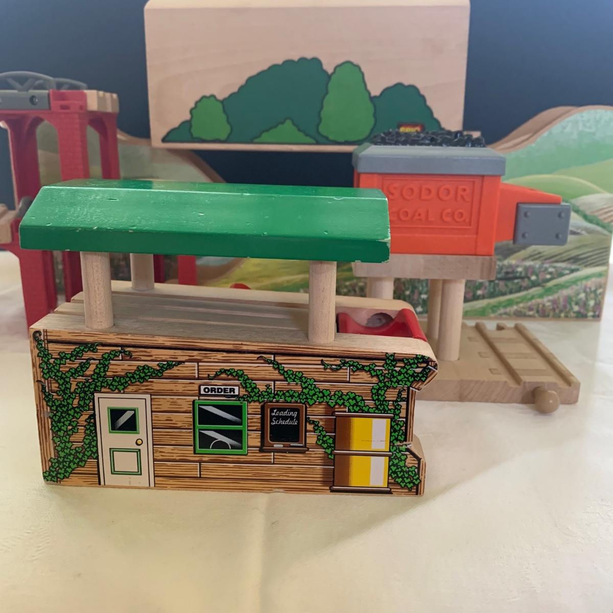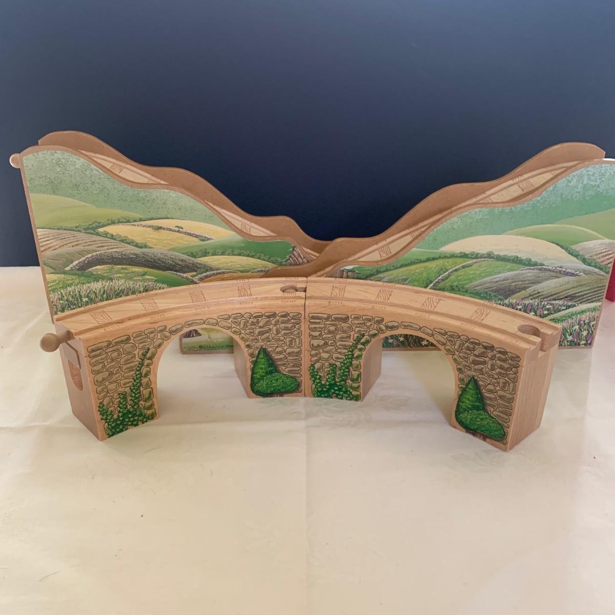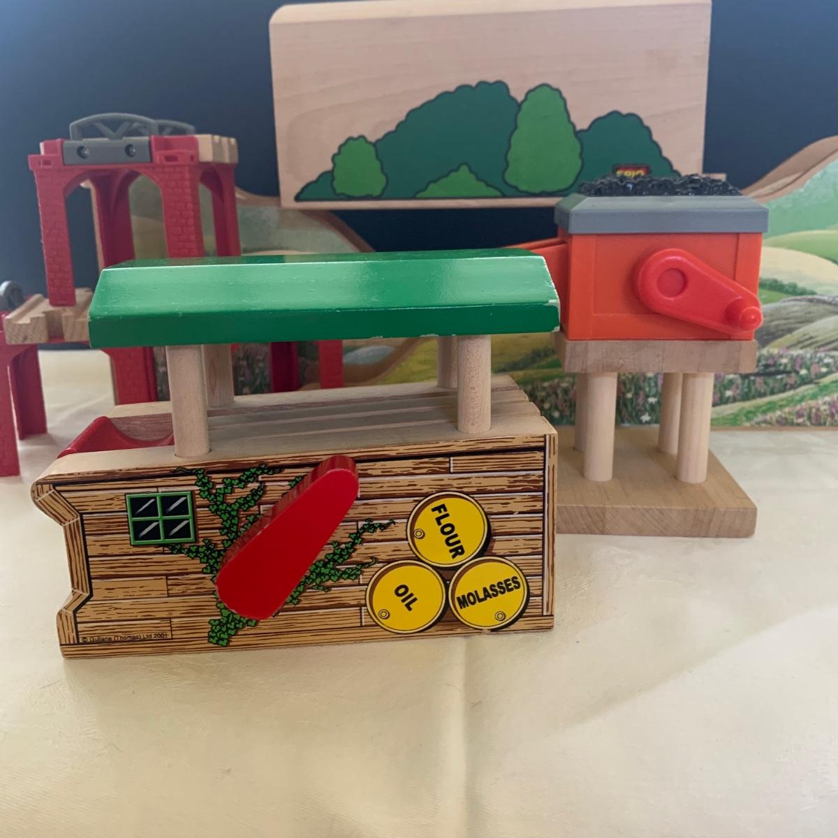 LOT 277: Thomas the Tank Engine Train Wooden Train Accessories: Scenic Mountain Crossing, Bridges, Arlesdale Barrel Company (no barrels), Water Tower & More