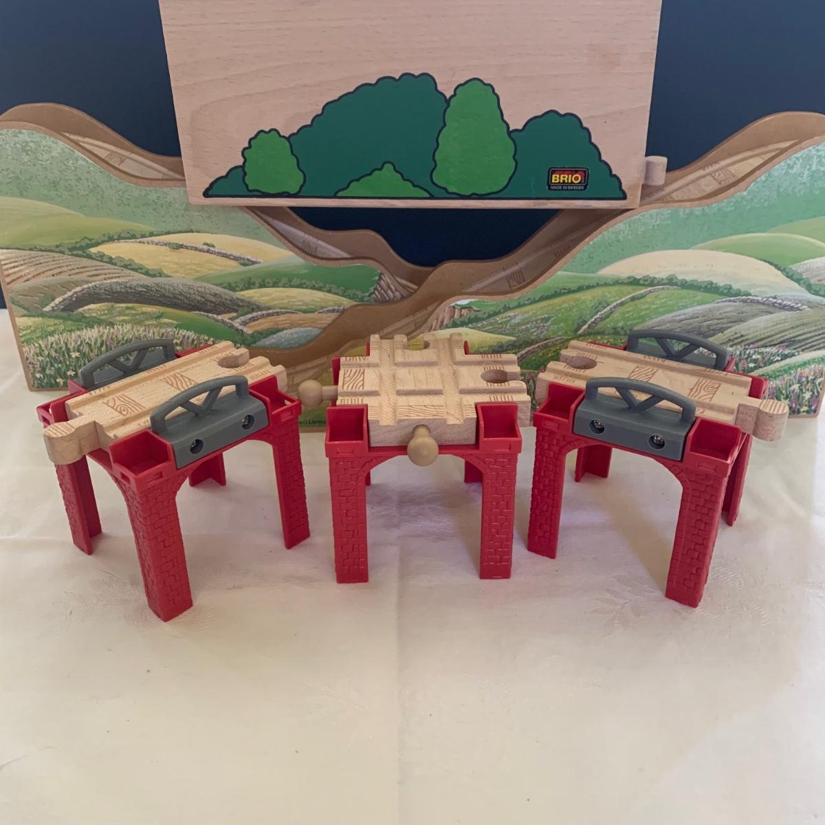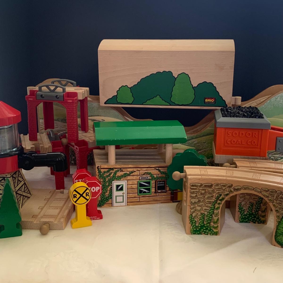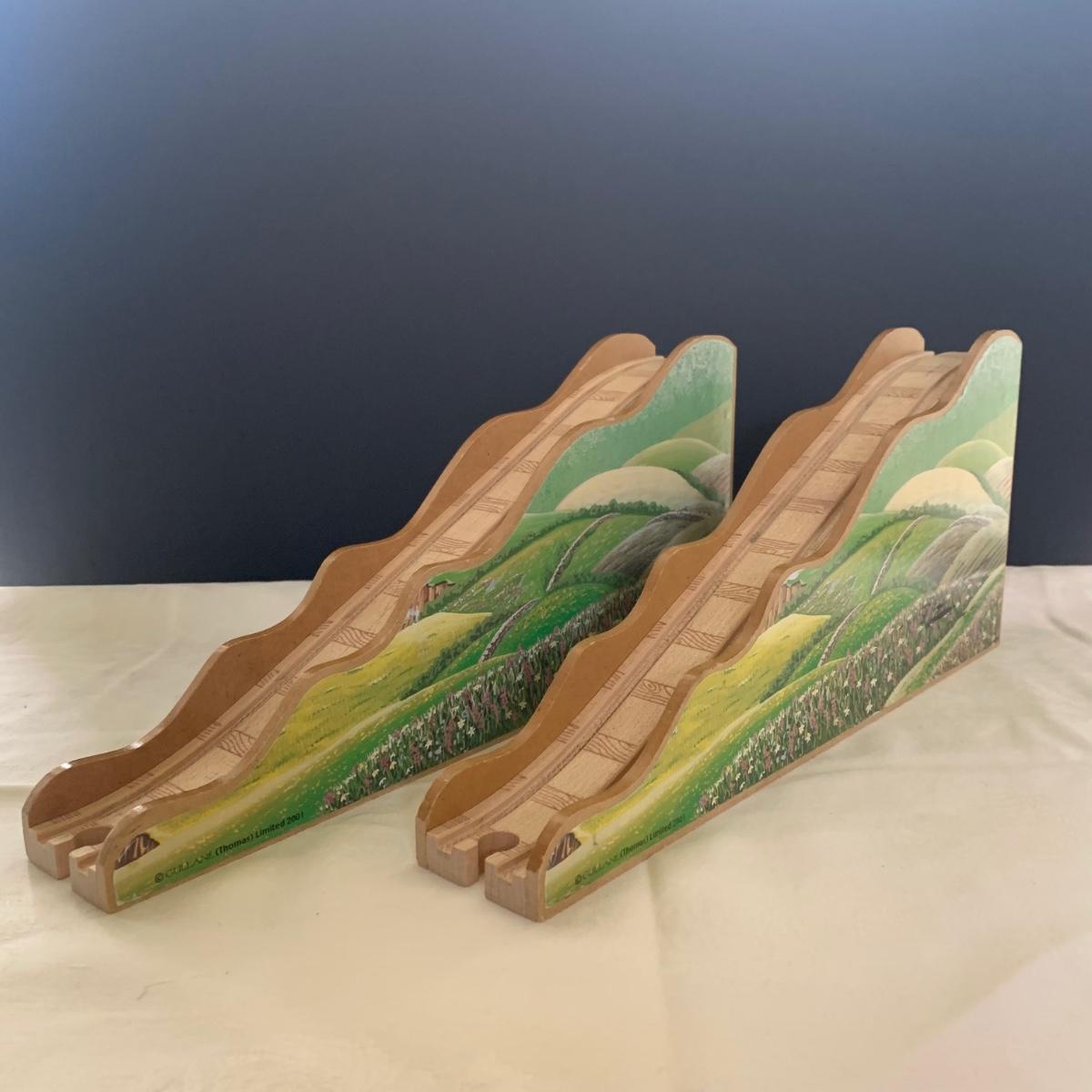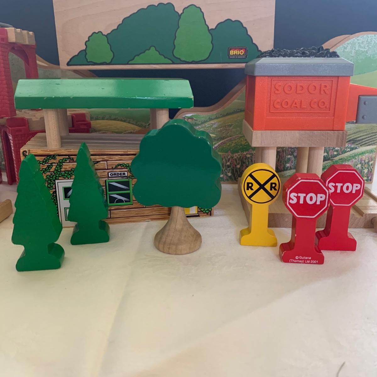 LOT 277: Thomas the Tank Engine Train Wooden Train Accessories: Scenic Mountain Crossing, Bridges, Arlesdale Barrel Company (no barrels), Water Tower & More
