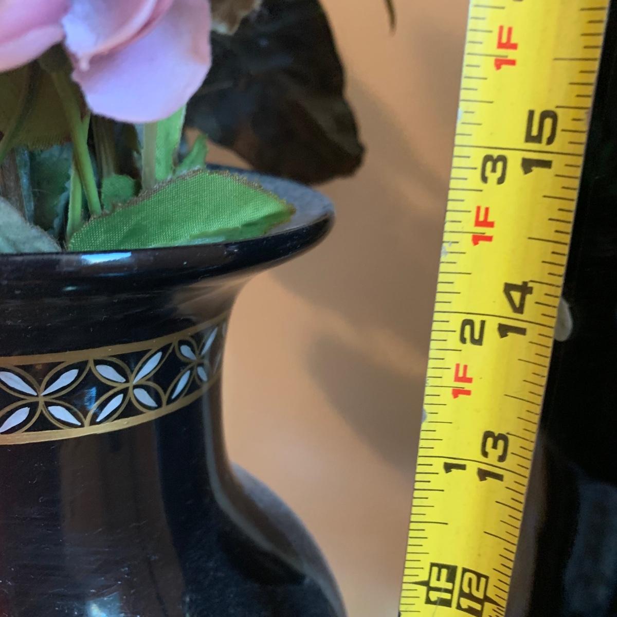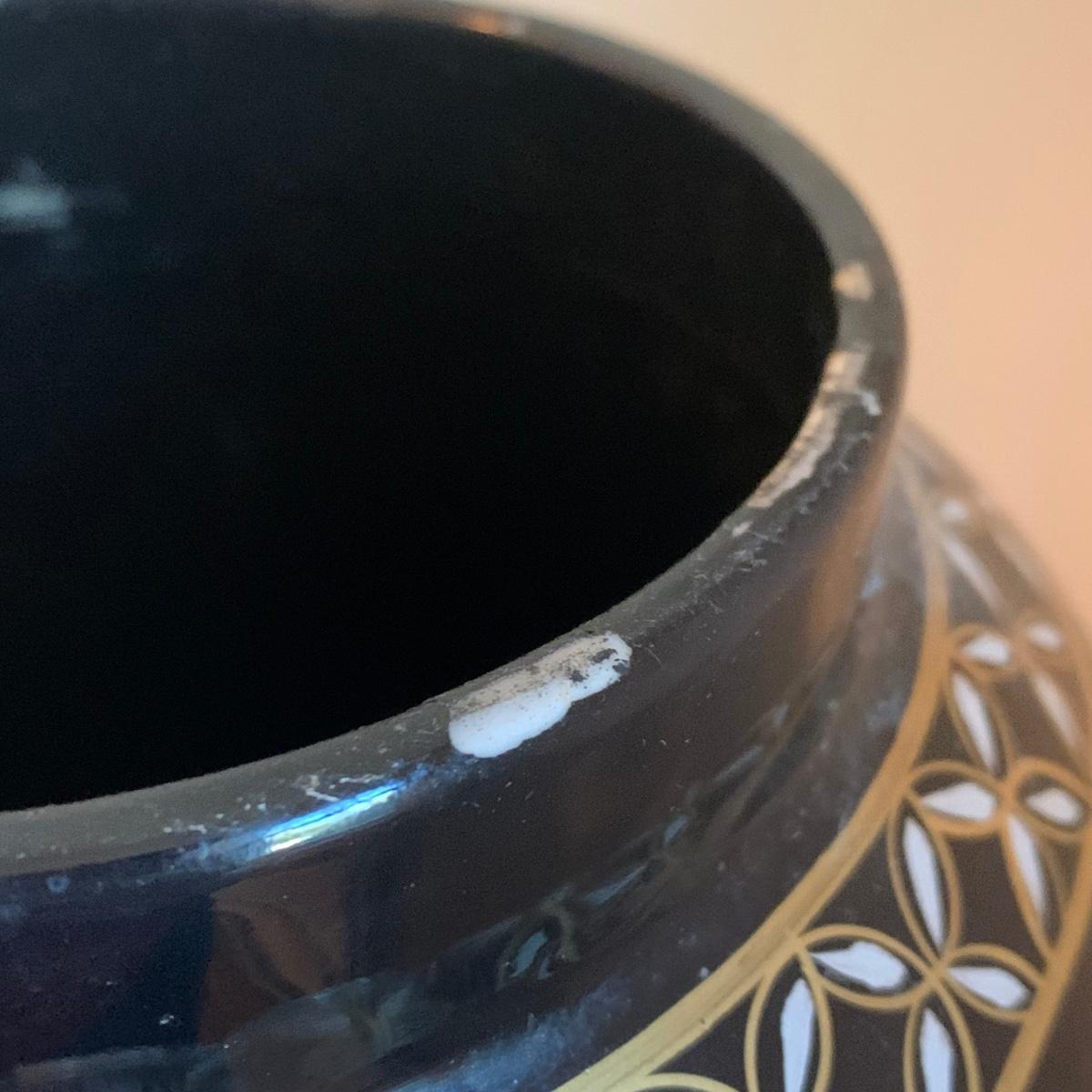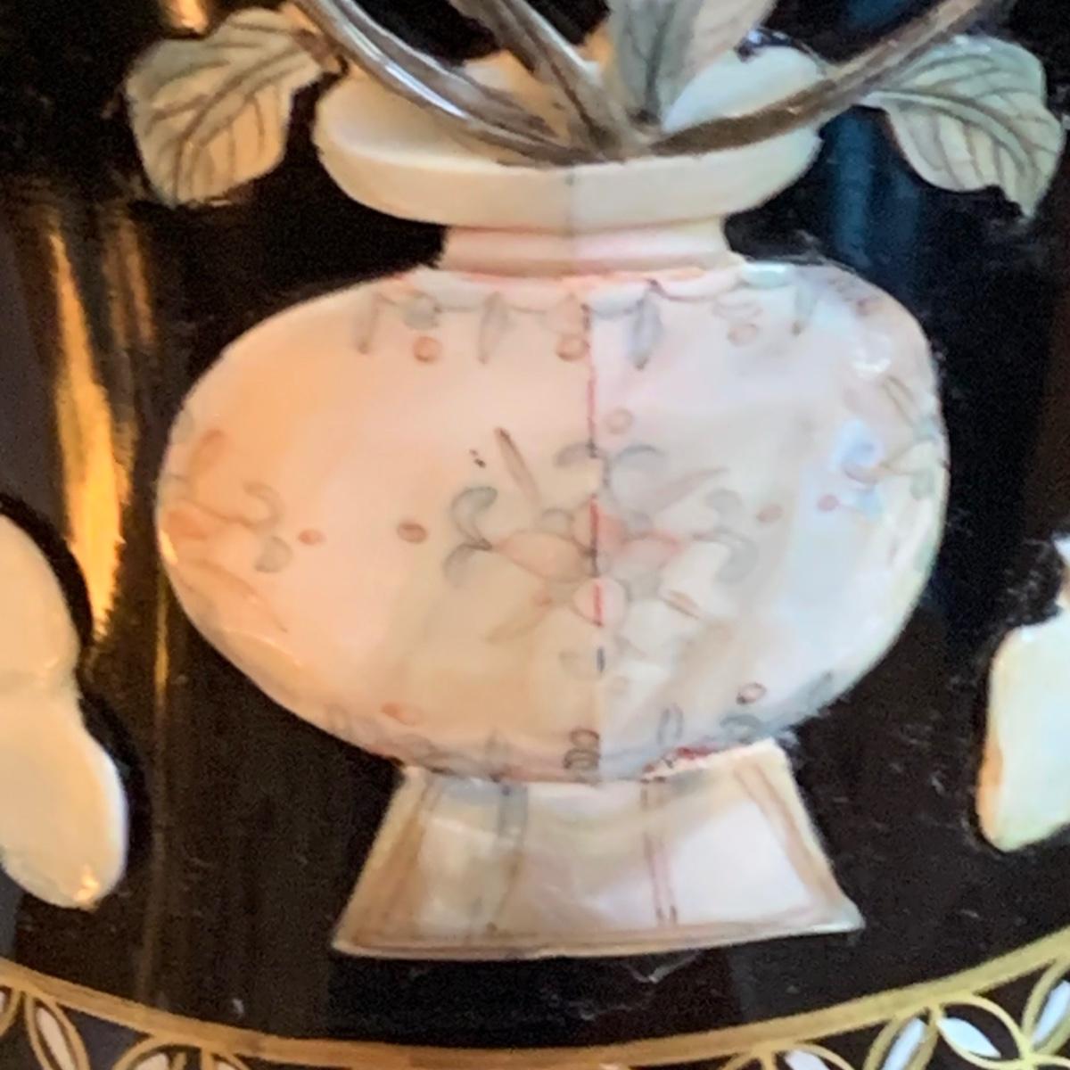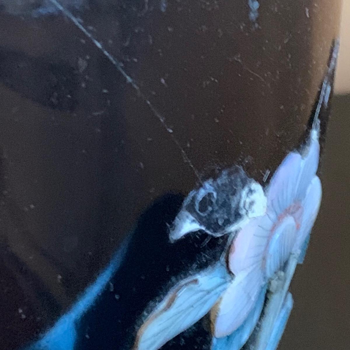 As pictured the vase with the flowers in it has condition issues and has been repaired.
