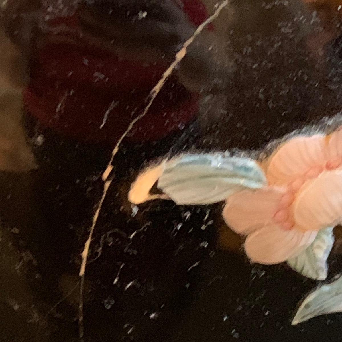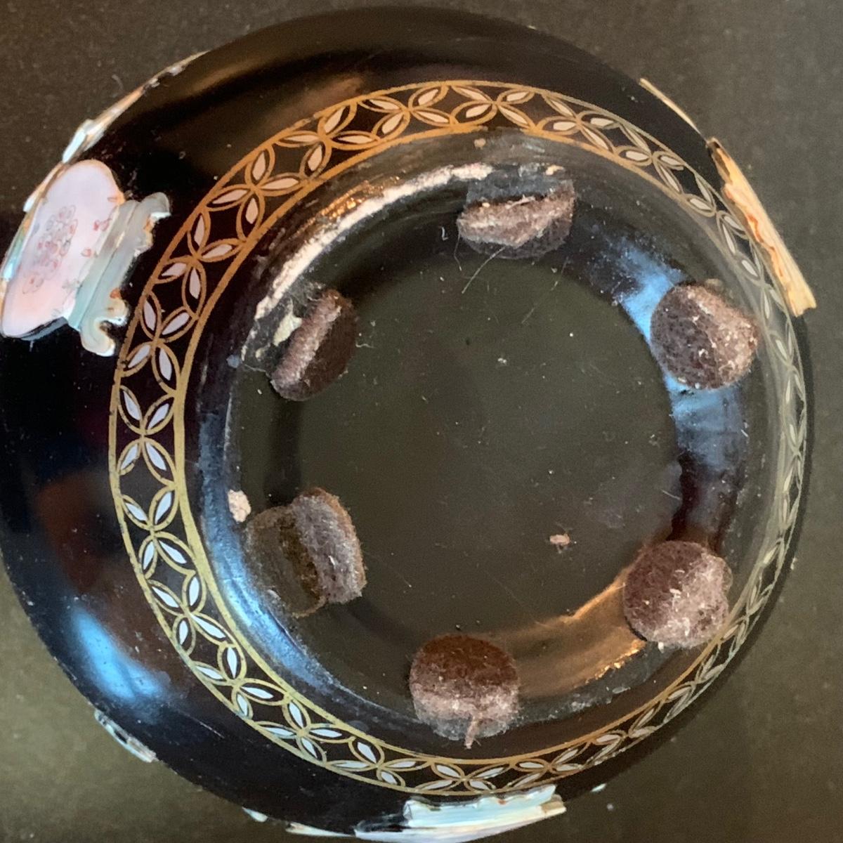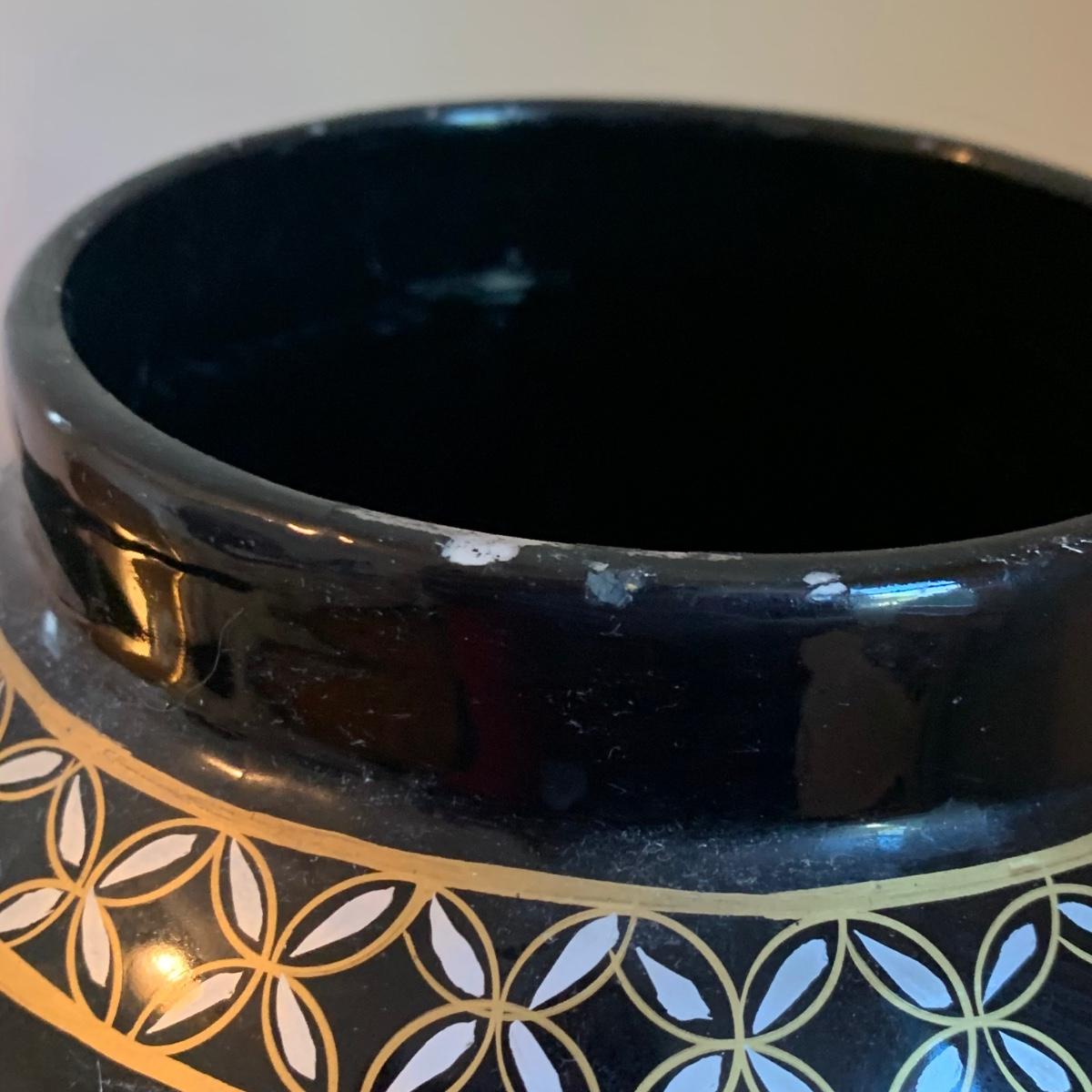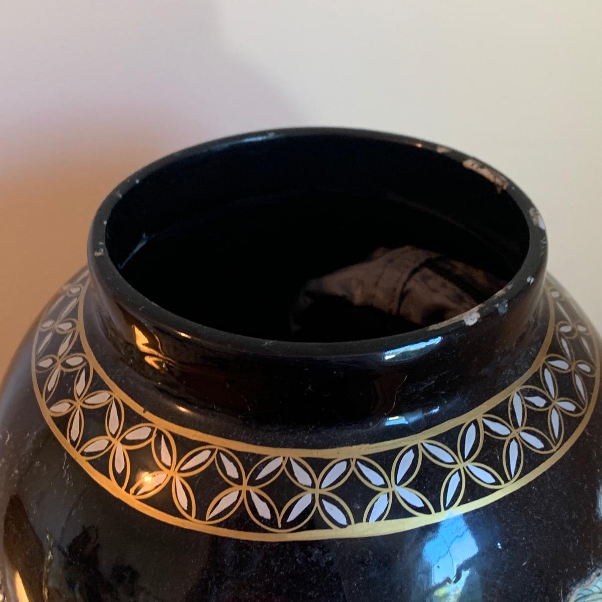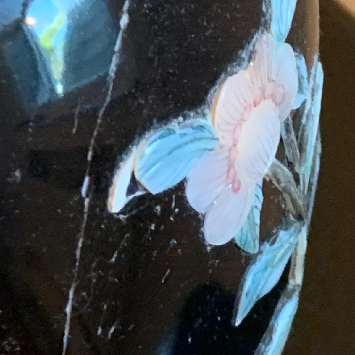 As pictured the vase with the flowers in it has condition issues and has been repaired.