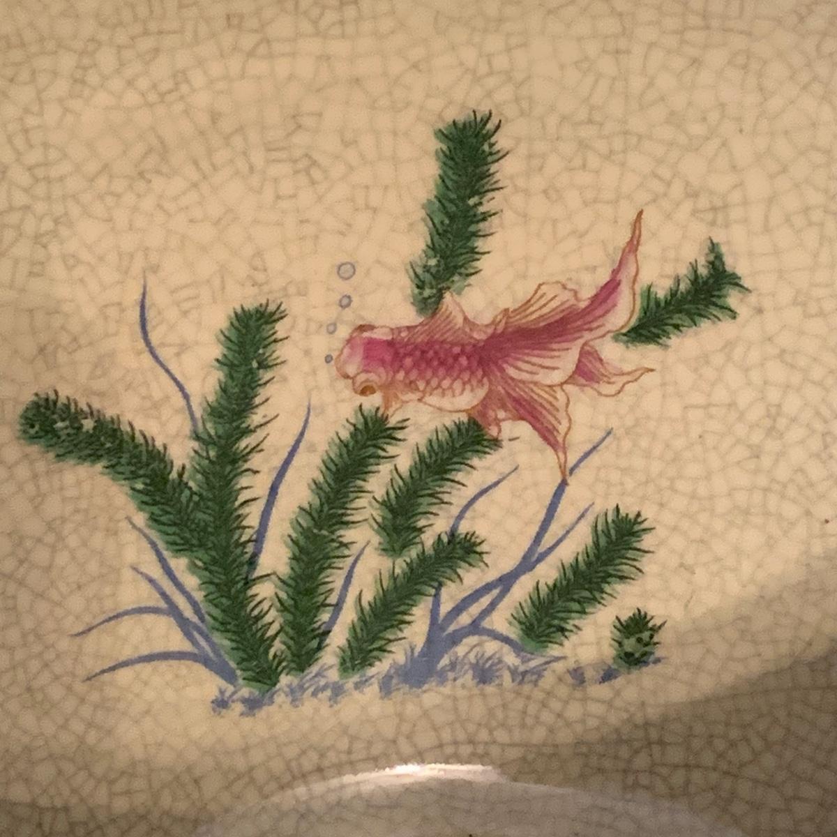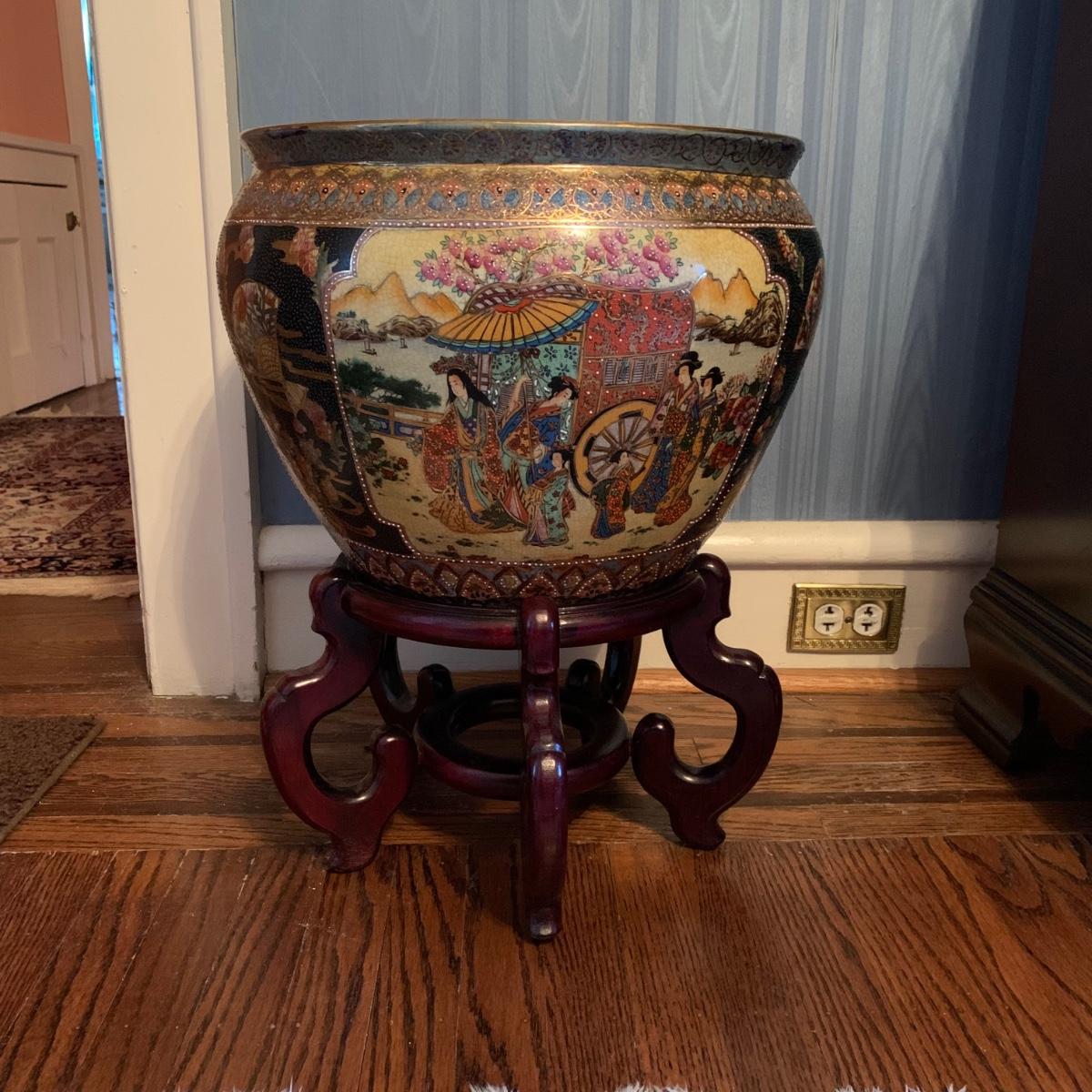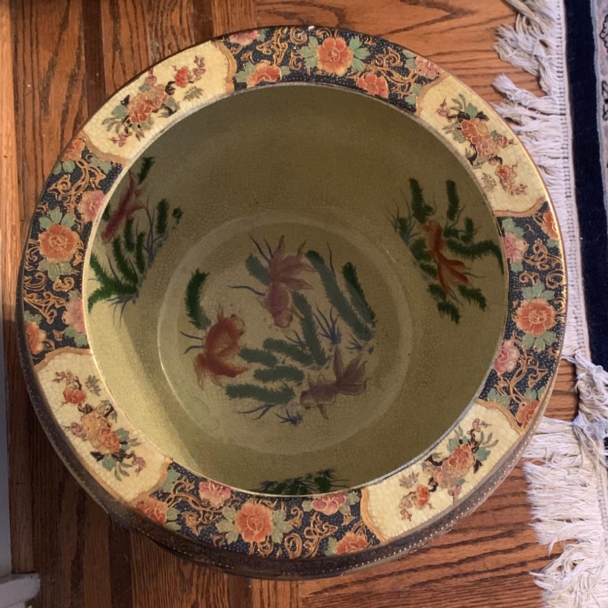 LOT 288: Planter/Koi Fish Porcelain Jardiniere with Stand