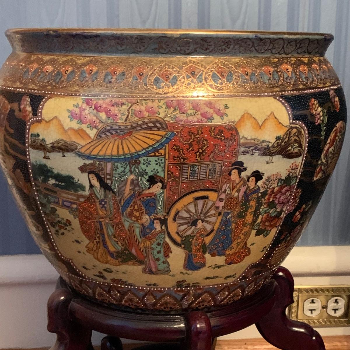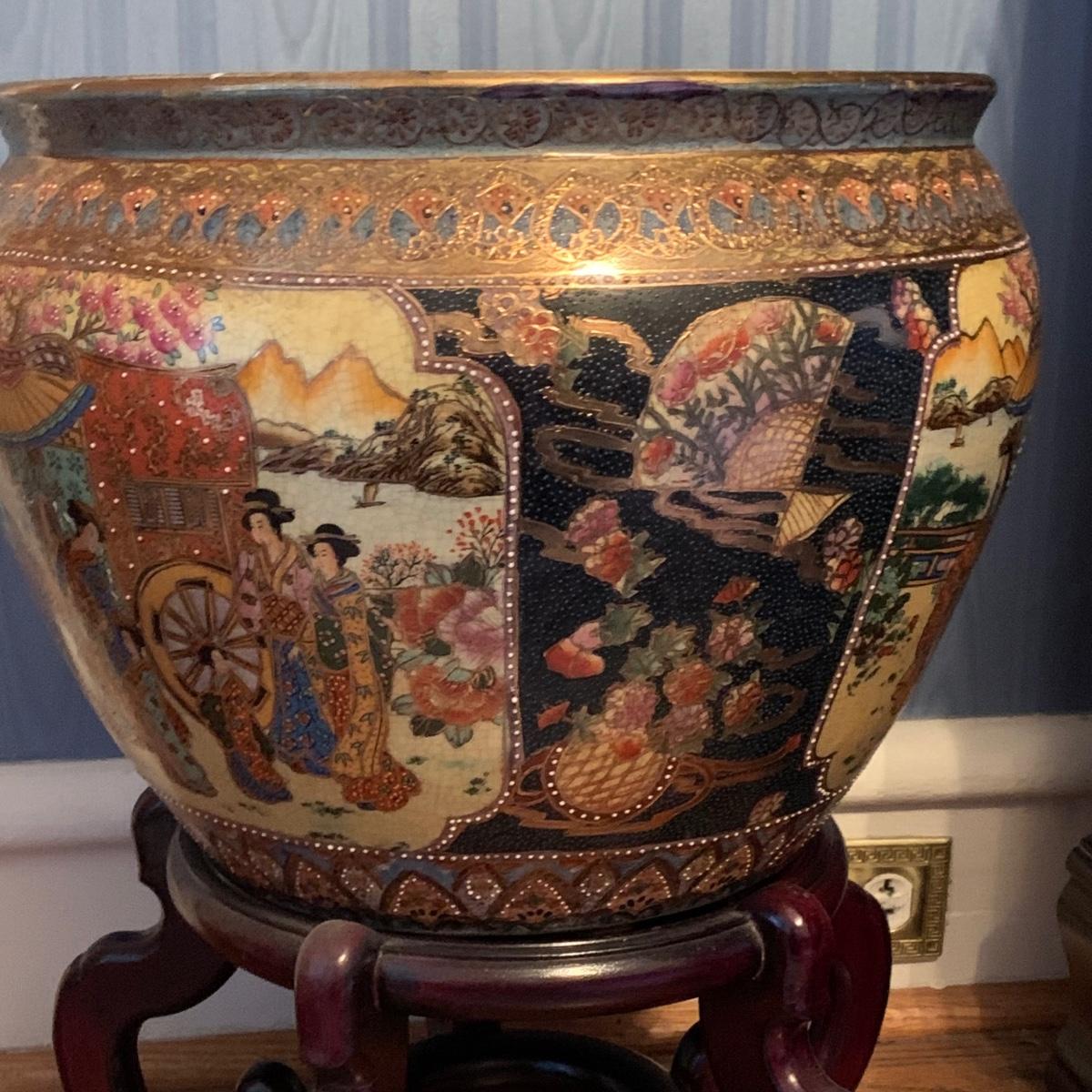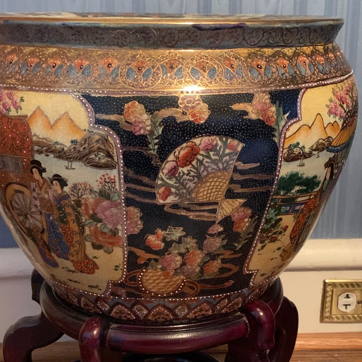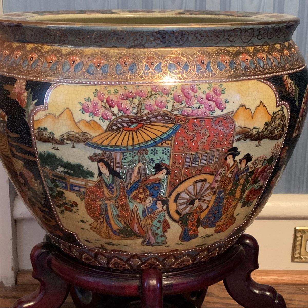 LOT 288: Planter/Koi Fish Porcelain Jardiniere with Stand