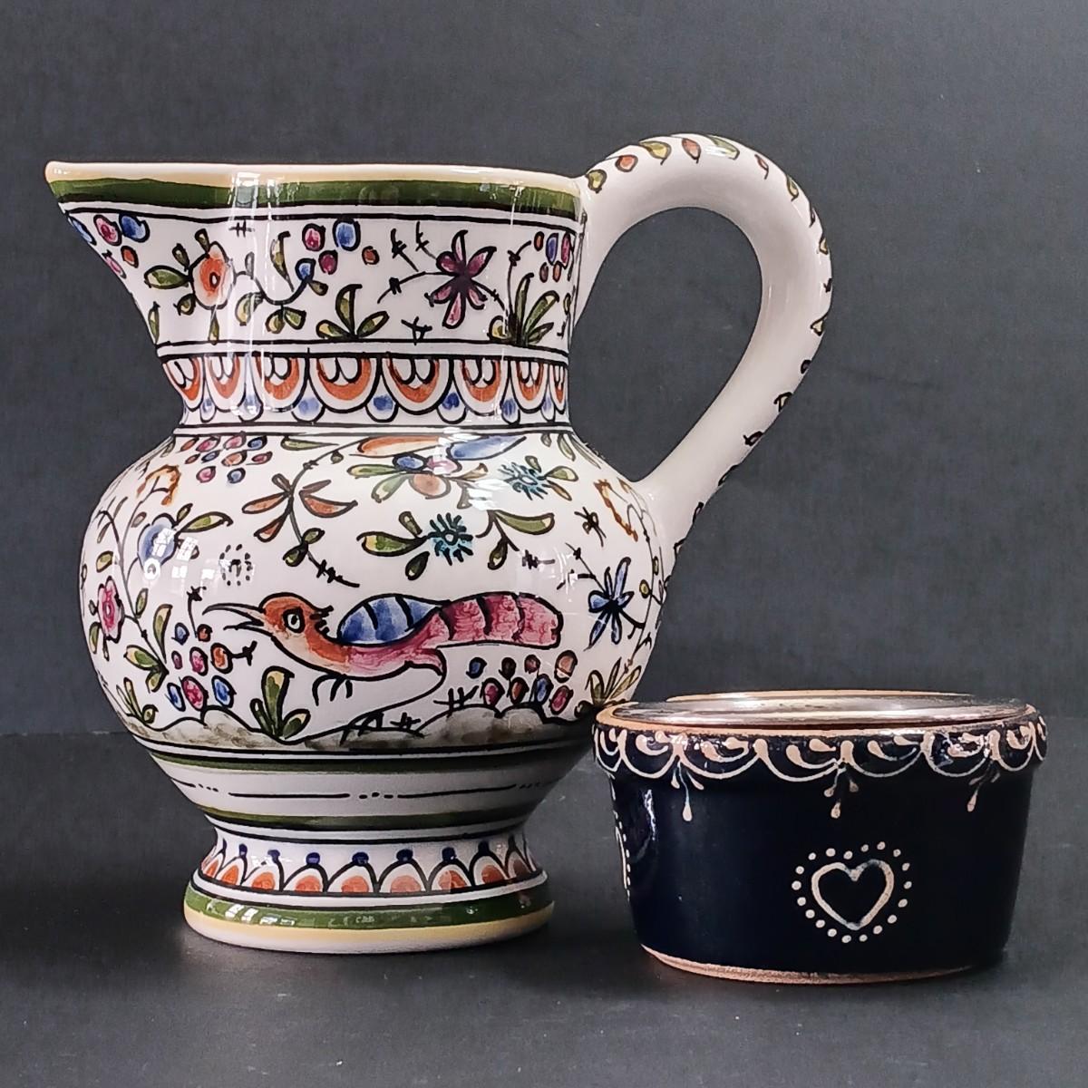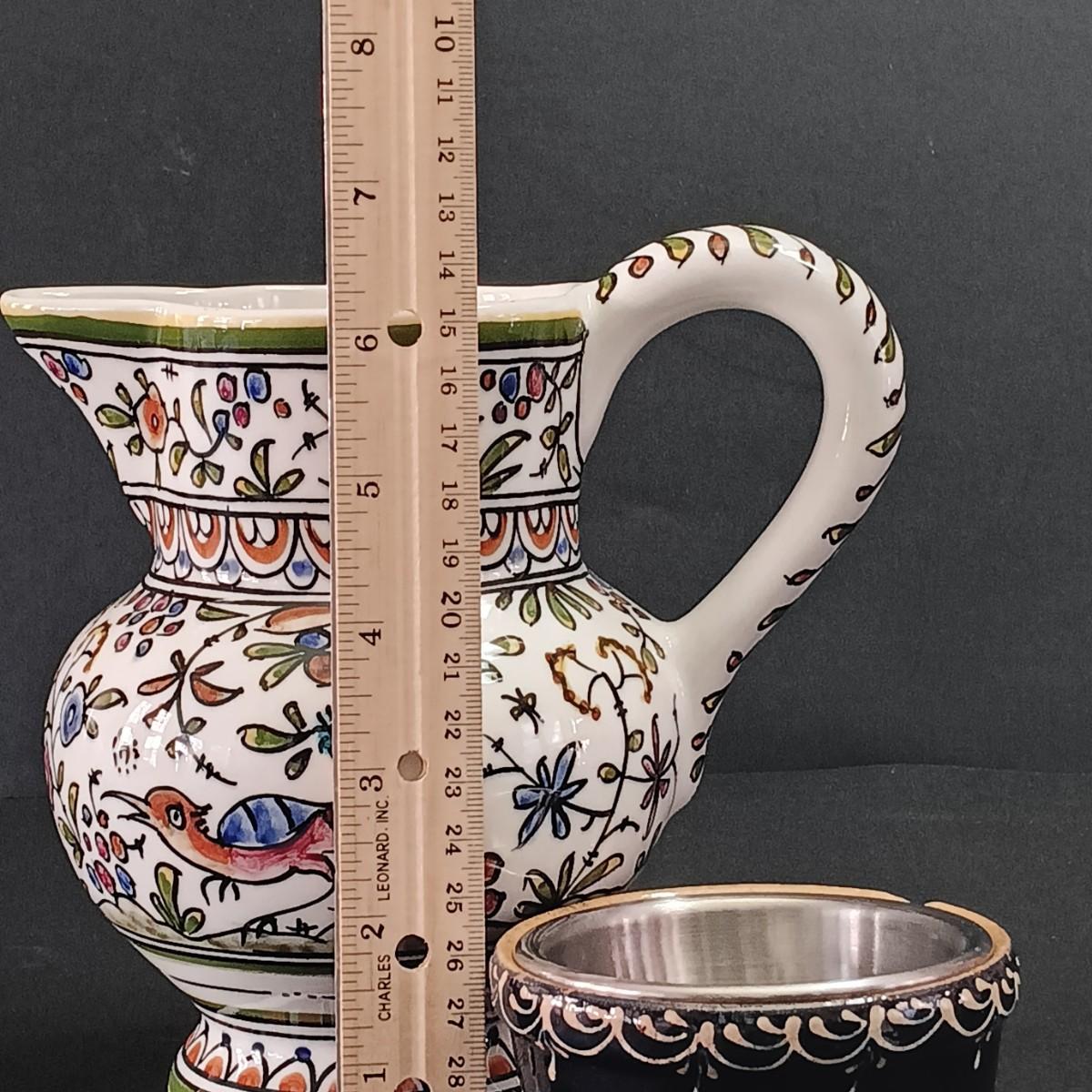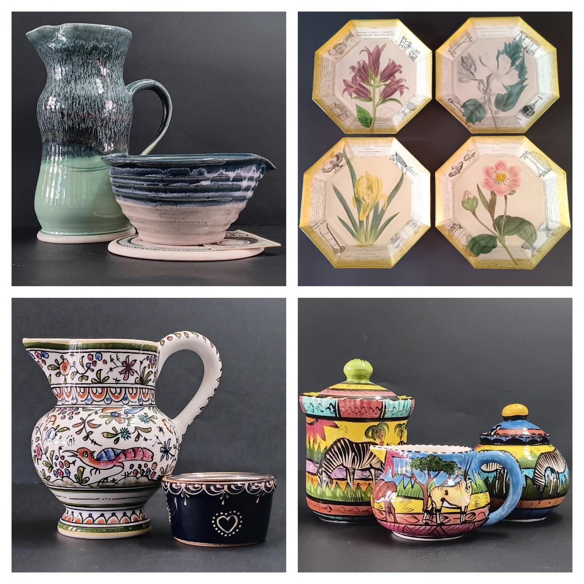 LOT 299: Kenzo Zimbabwe Handpainted Pottery, Glass Botanical Plates, Handpainted Portuguese Pitcher & More