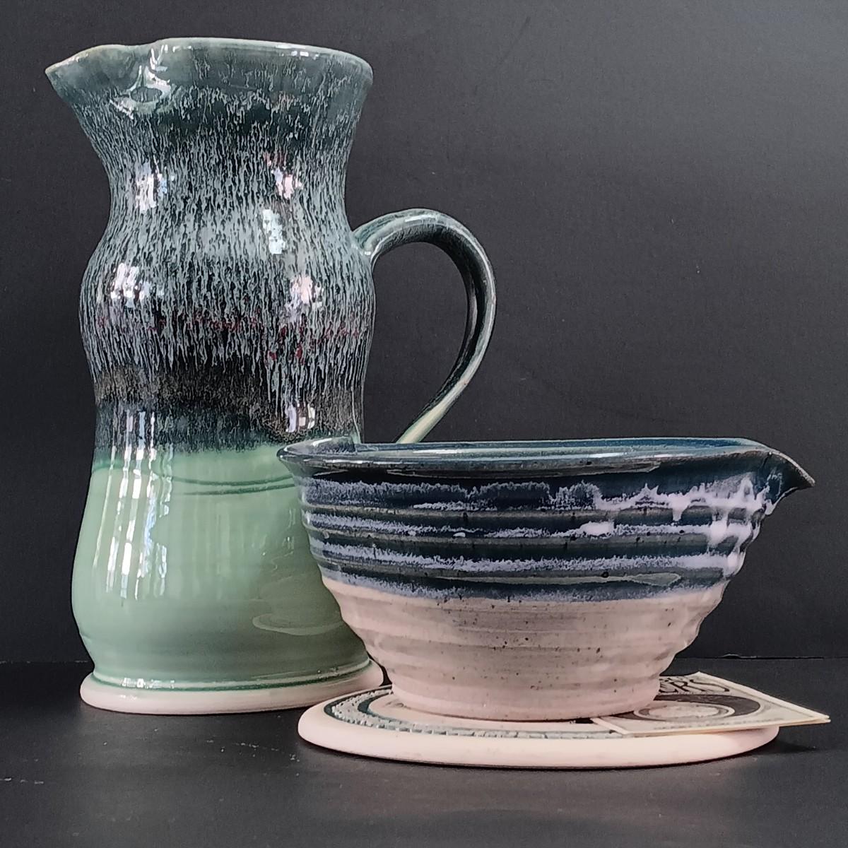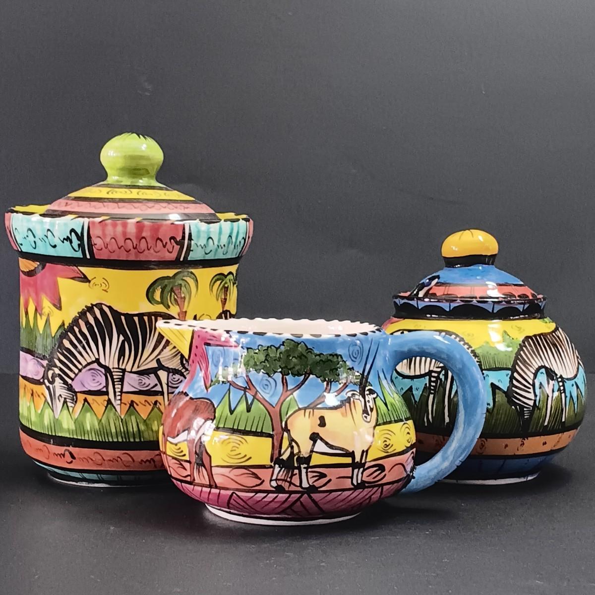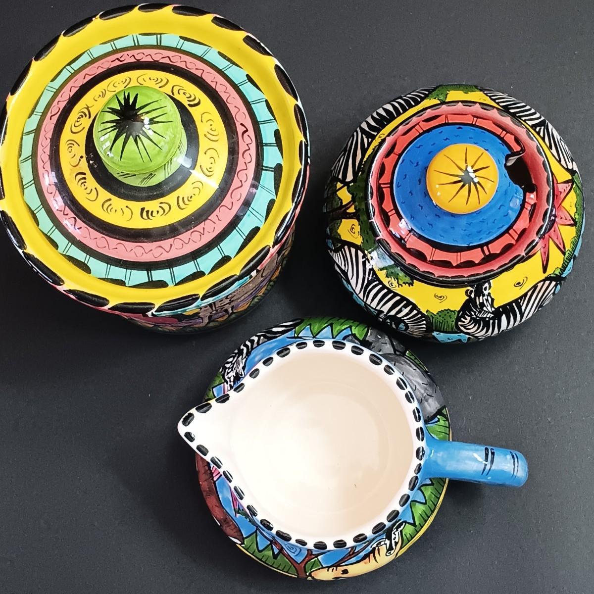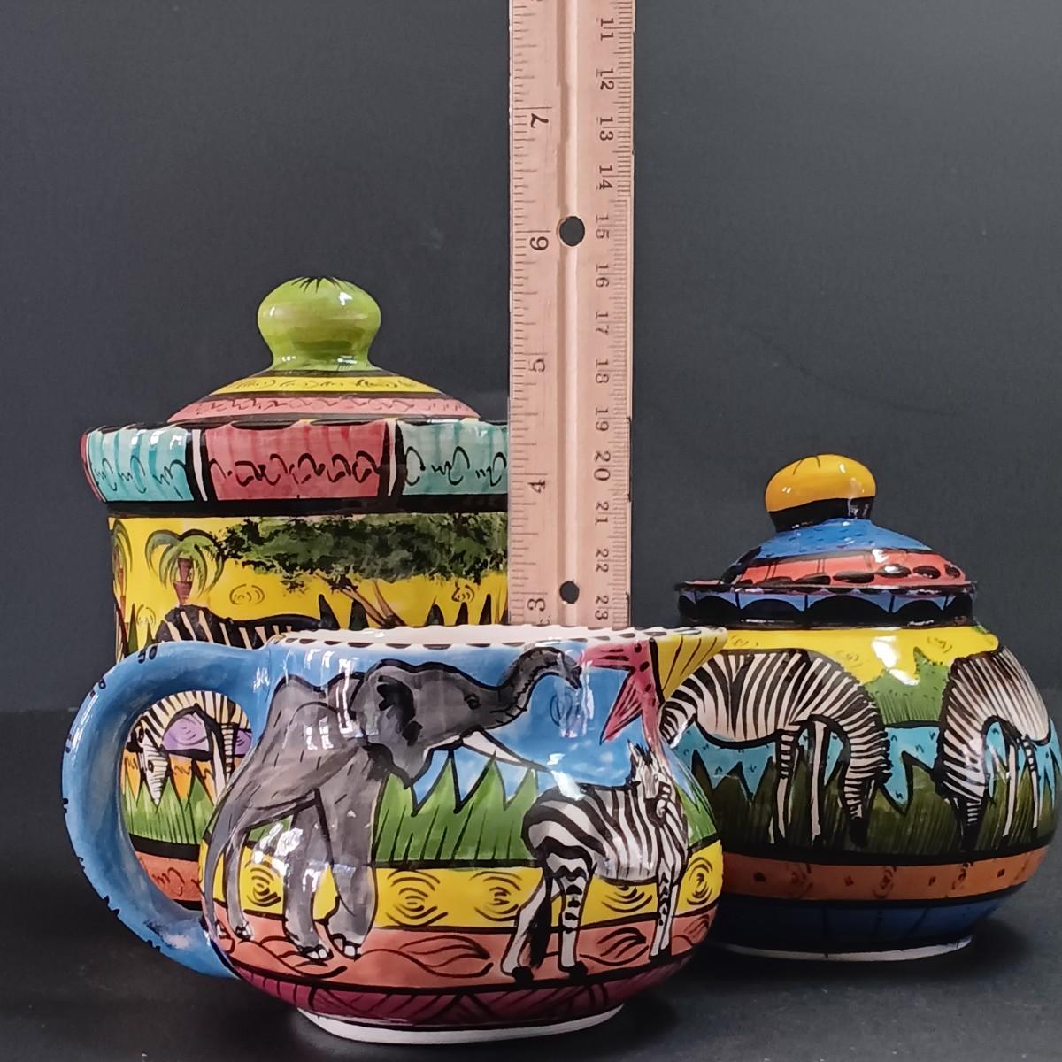 LOT 299: Kenzo Zimbabwe Handpainted Pottery, Glass Botanical Plates, Handpainted Portuguese Pitcher & More