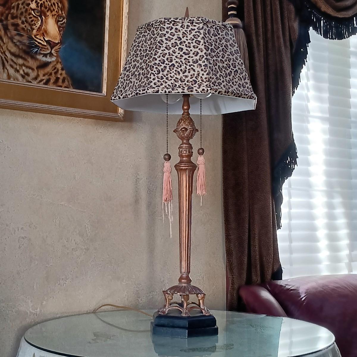 LOT 303: Jungle Theme- Leopard Print Lamp with End Table