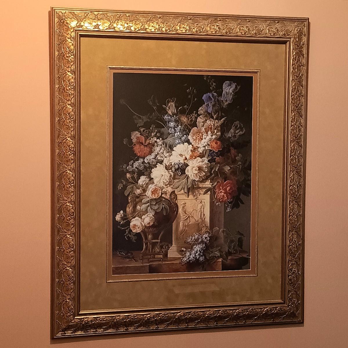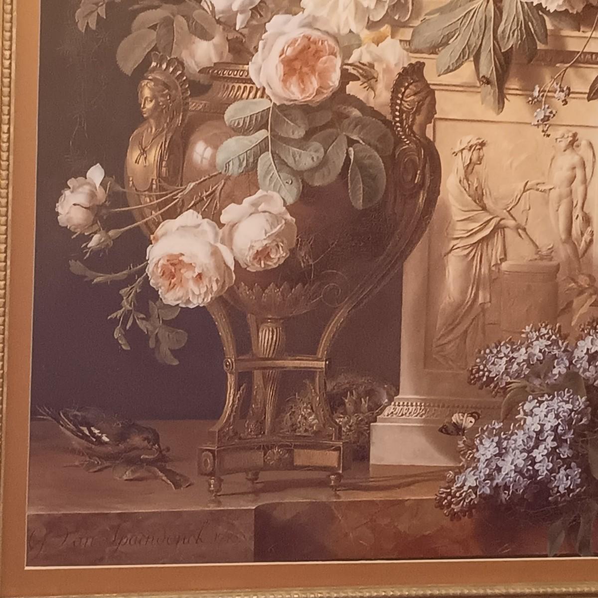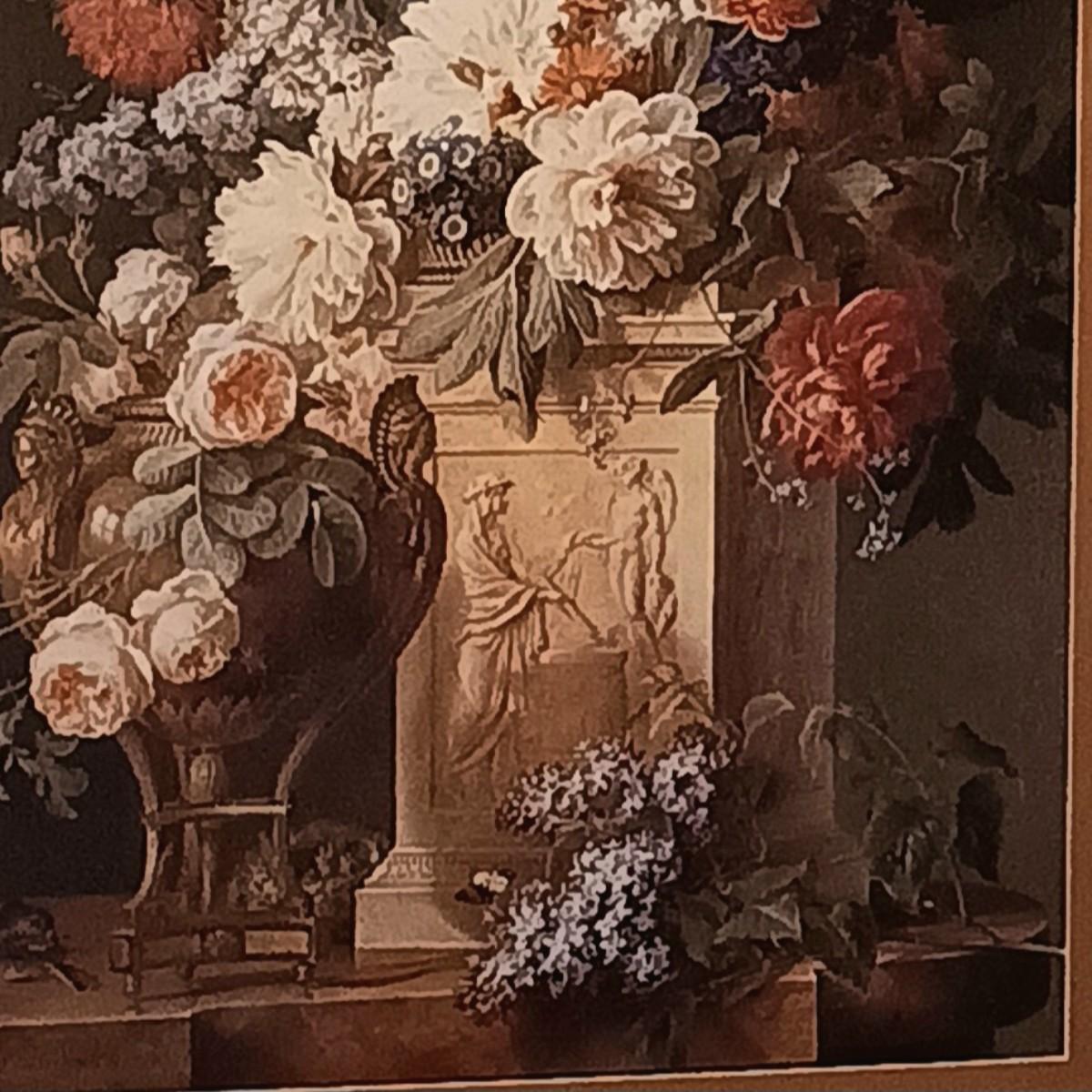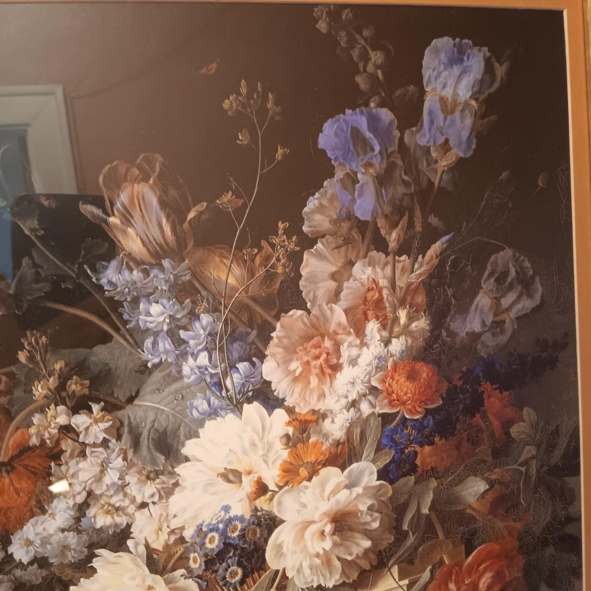 LOT 307: Large Floral Still Life Print in Frame