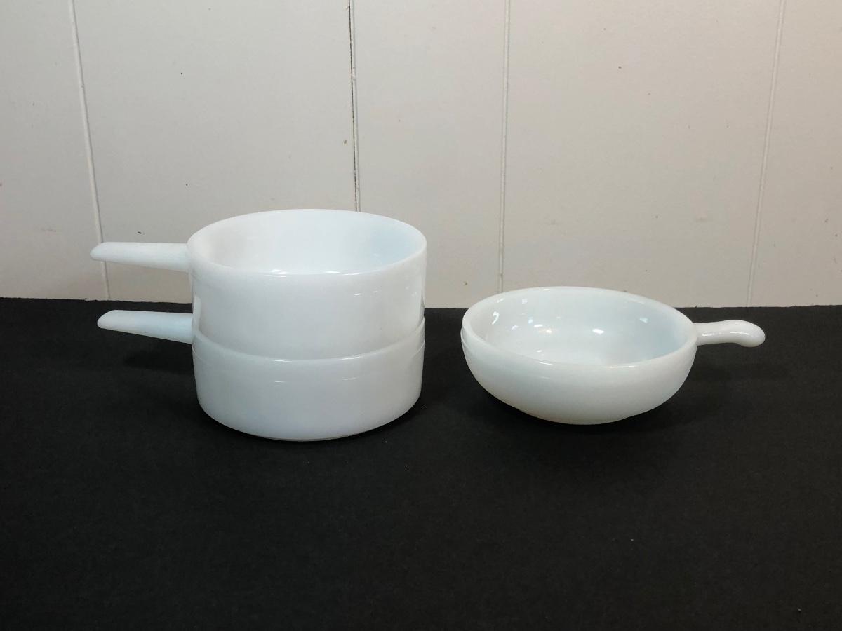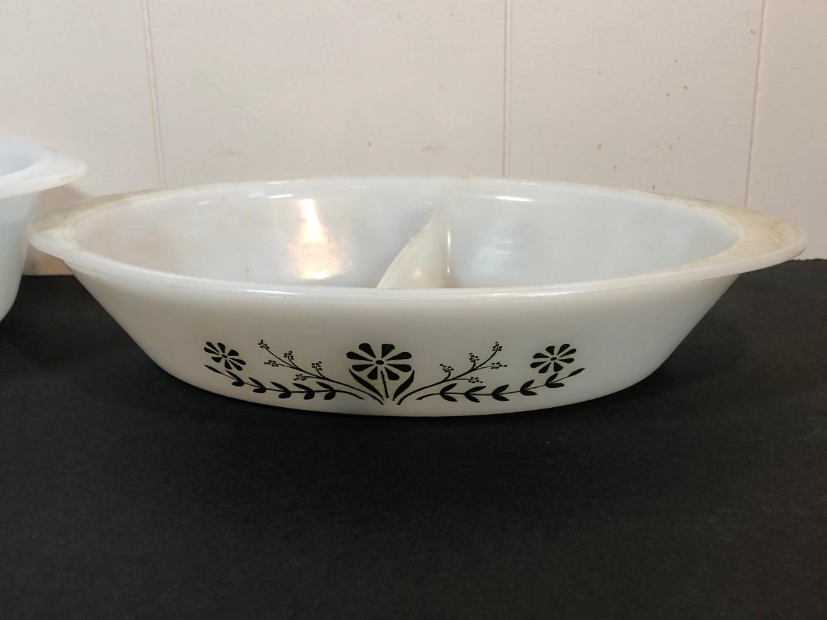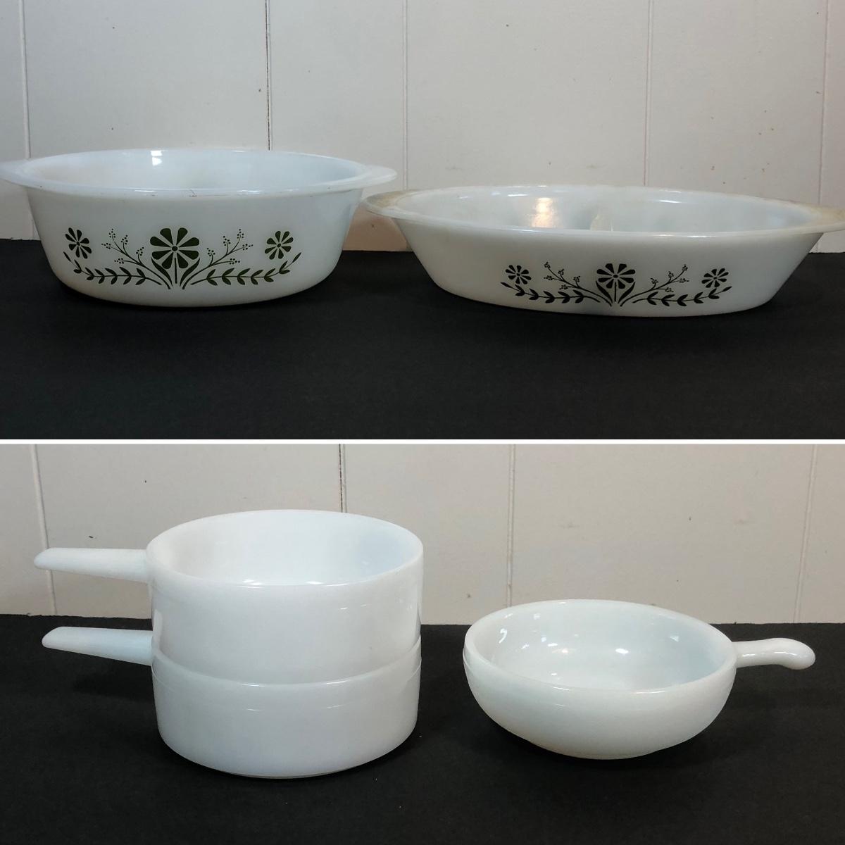 LOT 3K: Vintage Milk Glass Kitchen Dishes - Glasbake & More