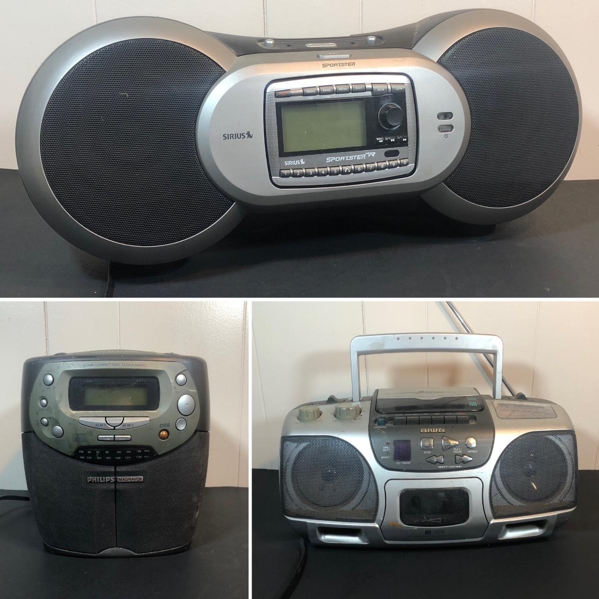 LOT 30K: Sirius Sportster Radio Model SPB1, Aiwa Virtual Stereo CSD-ES227 & Phillips Magnavox 3940 CD Clock Radio