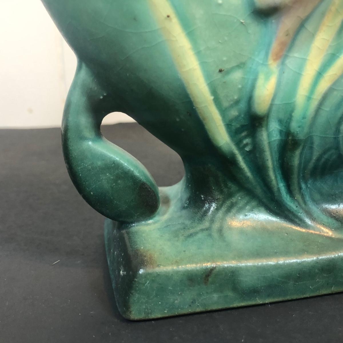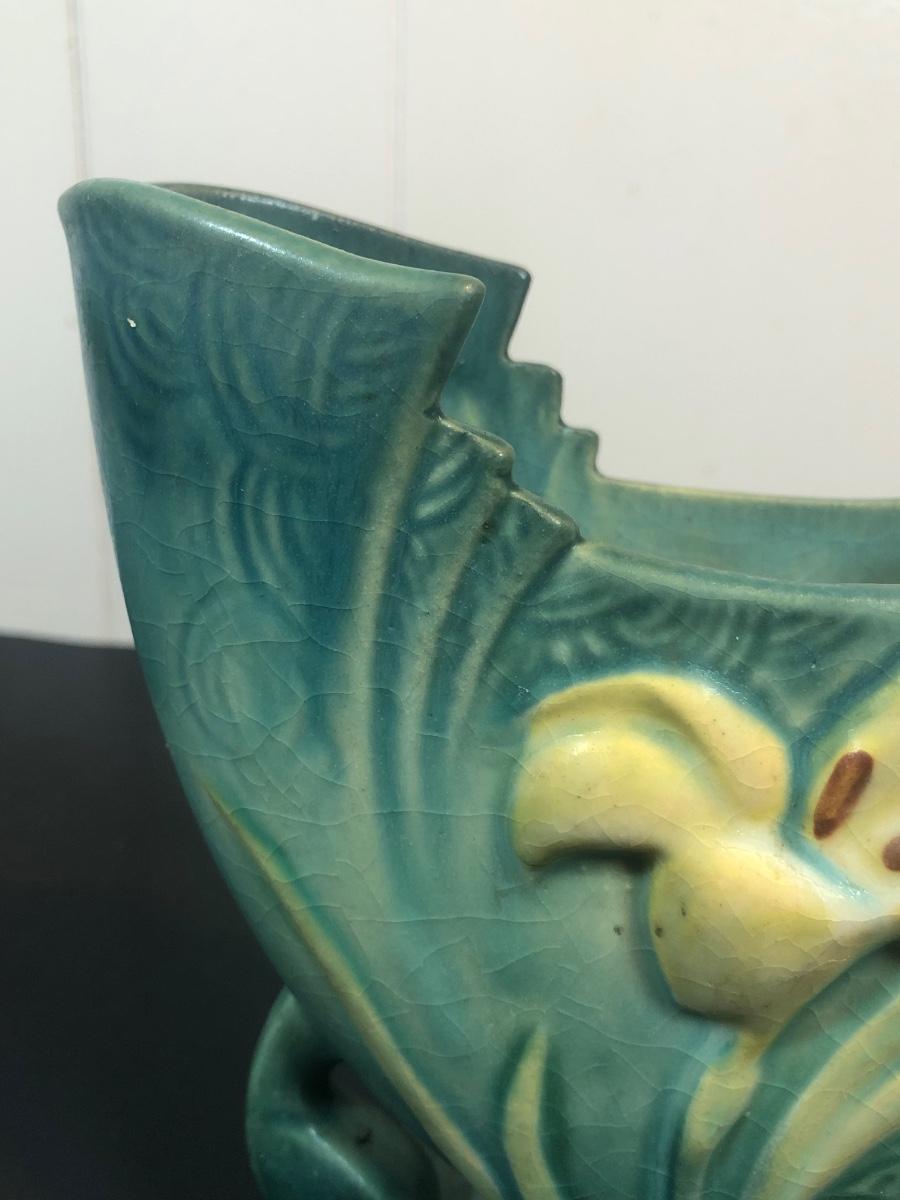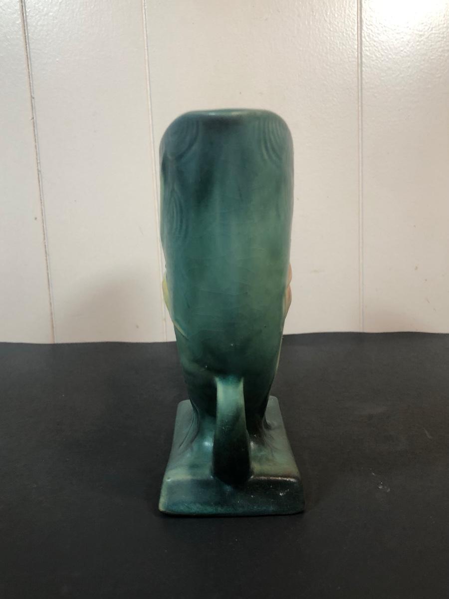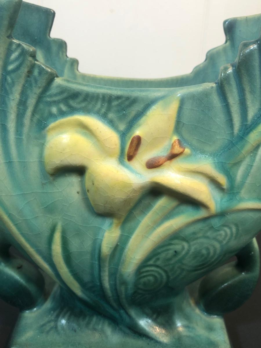 LOT 32L: Vintage Roseville USA Art Pottery Zephyr Lily Blue Fan Vase (205-6")