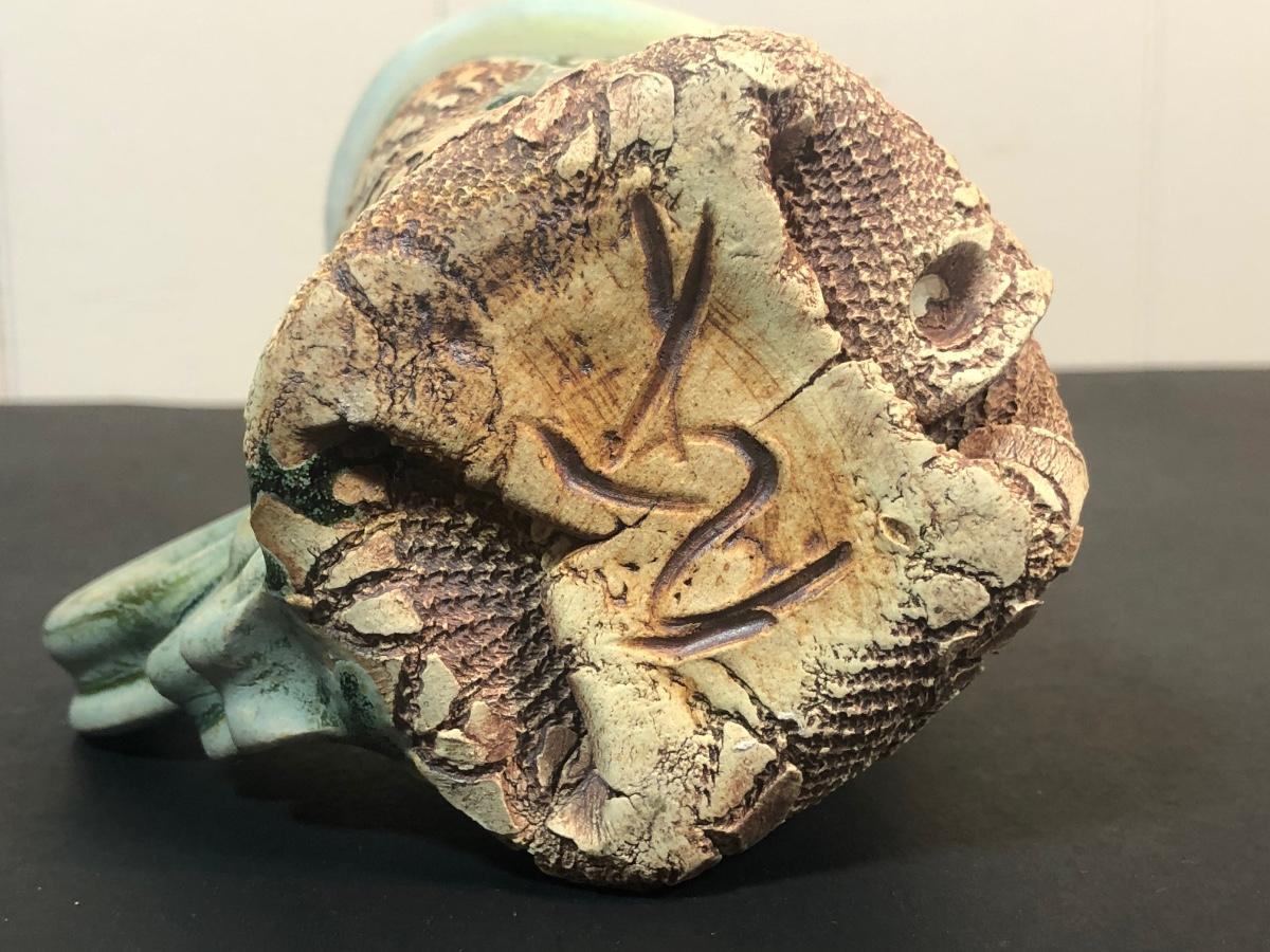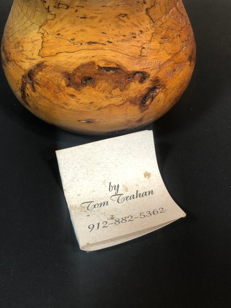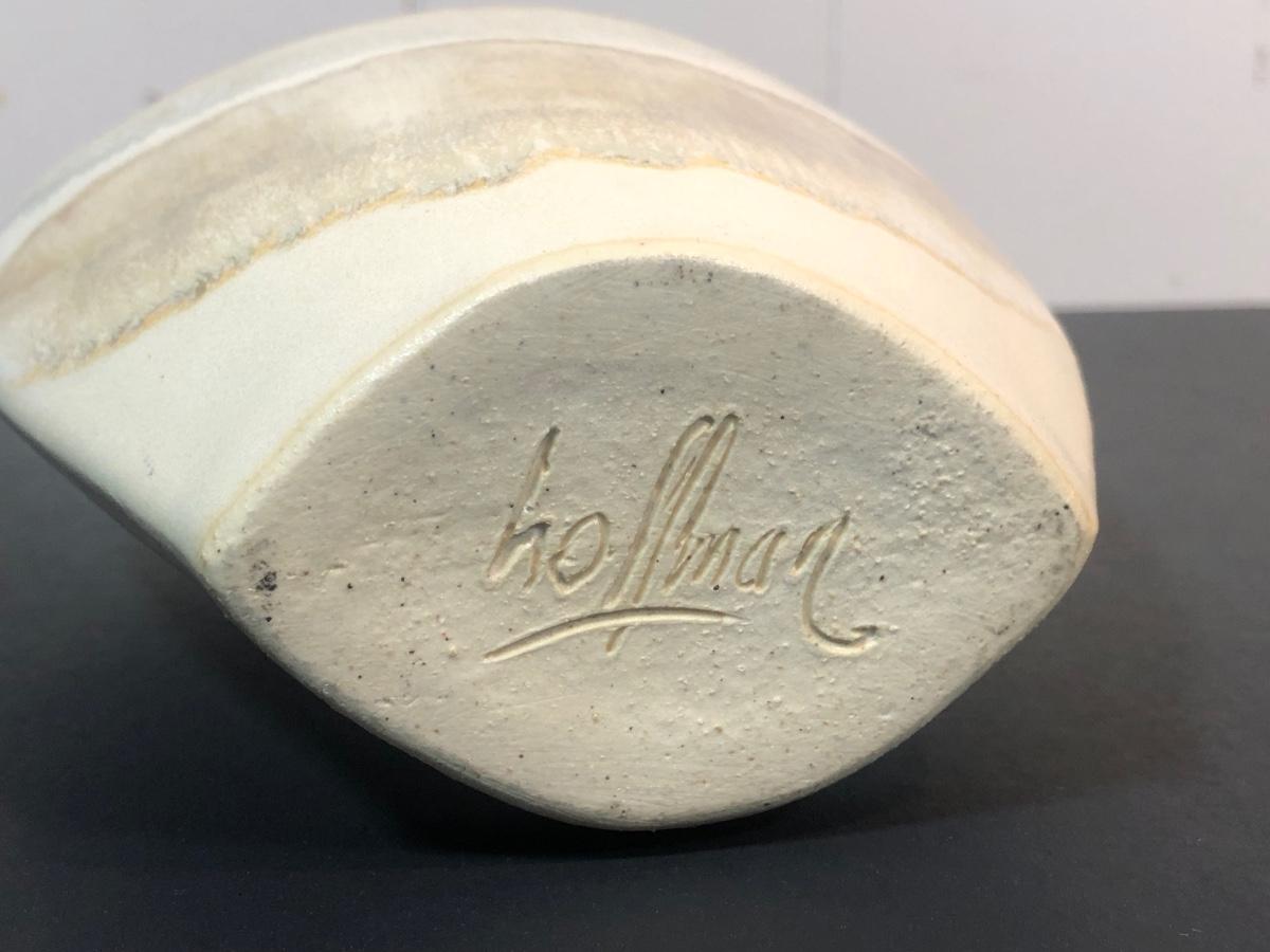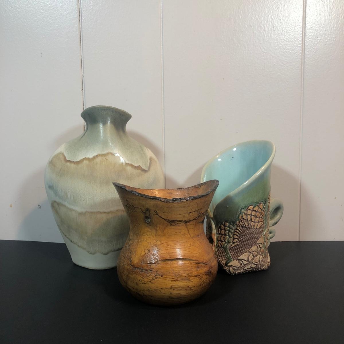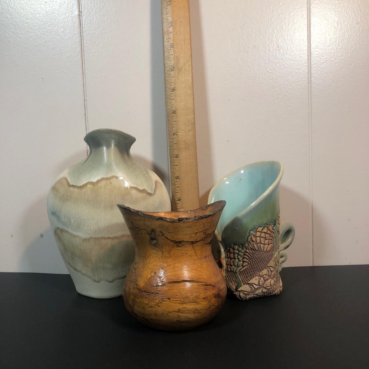 LOT 35L: Signed Hoffman Art Pottery Jug, Tom Trahan Wood Turning Natural Edge Jar & Signed Unique Pottery Candle Holder