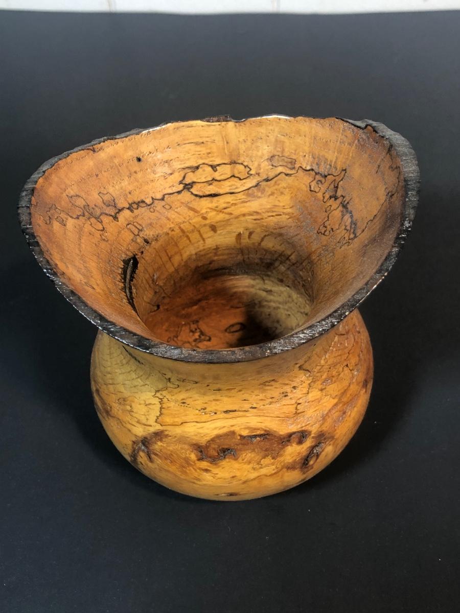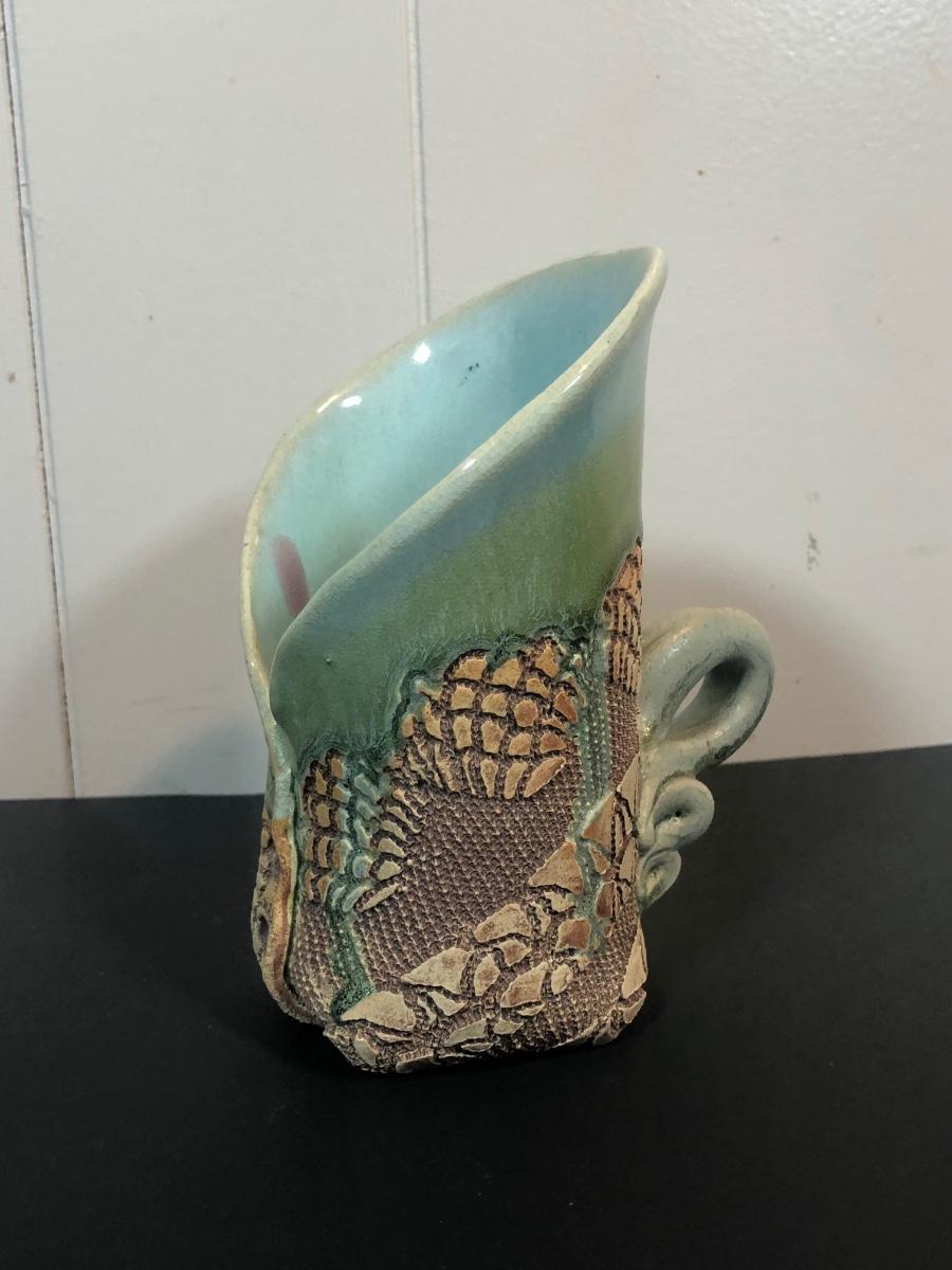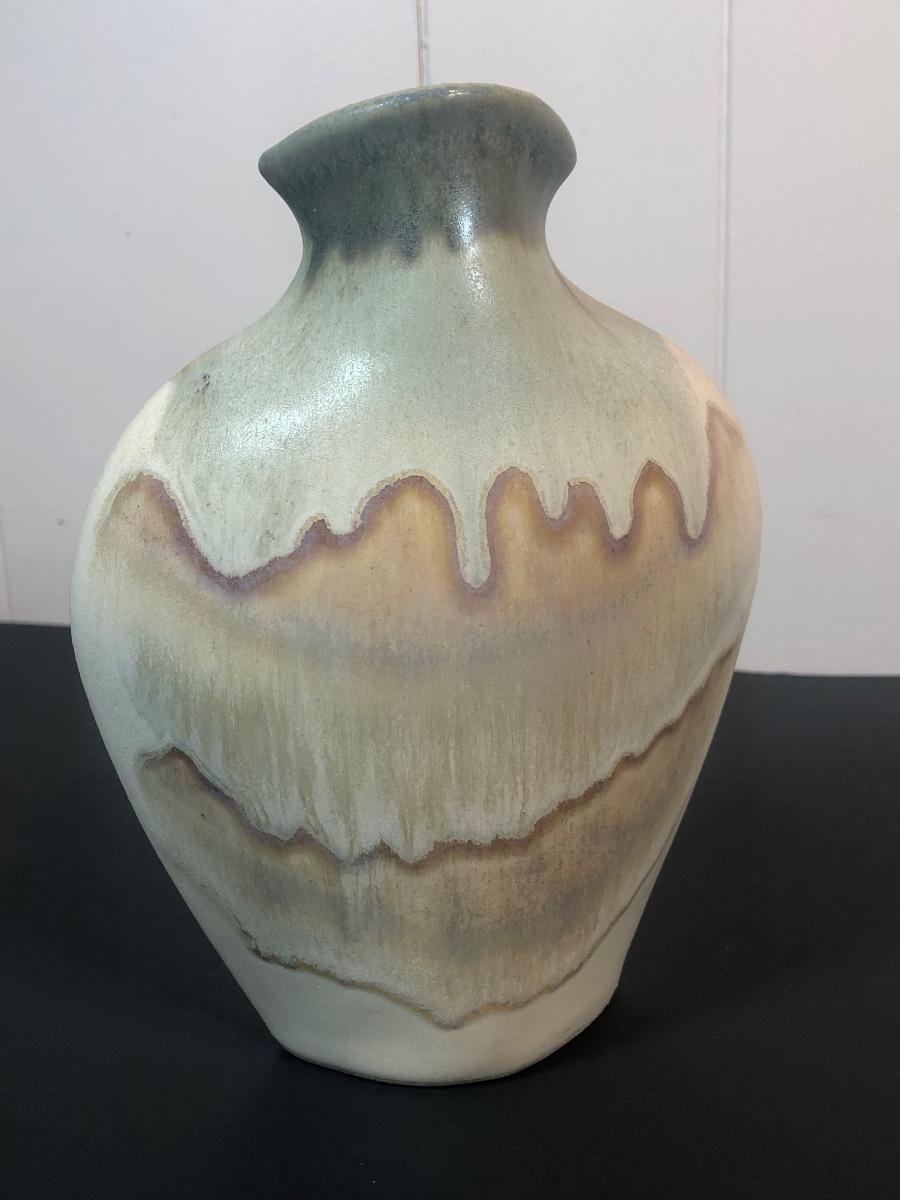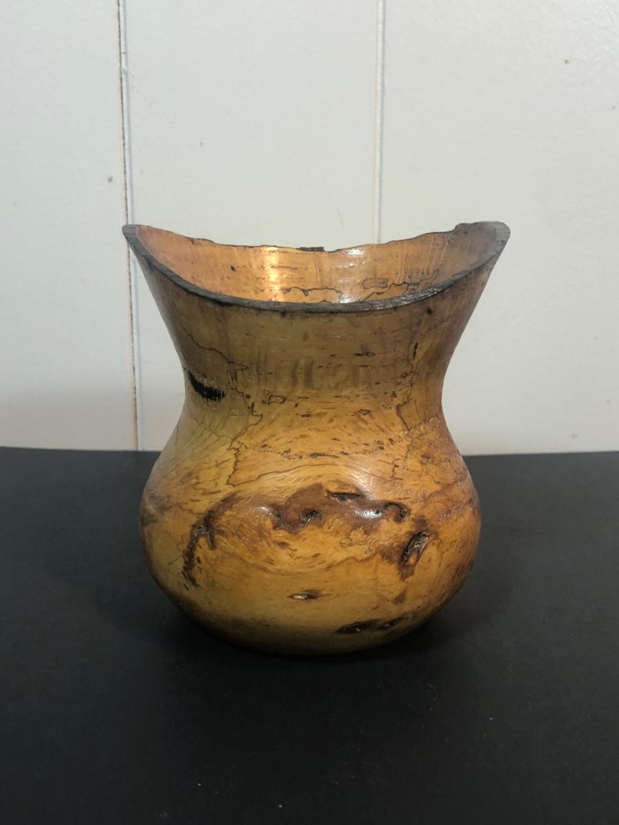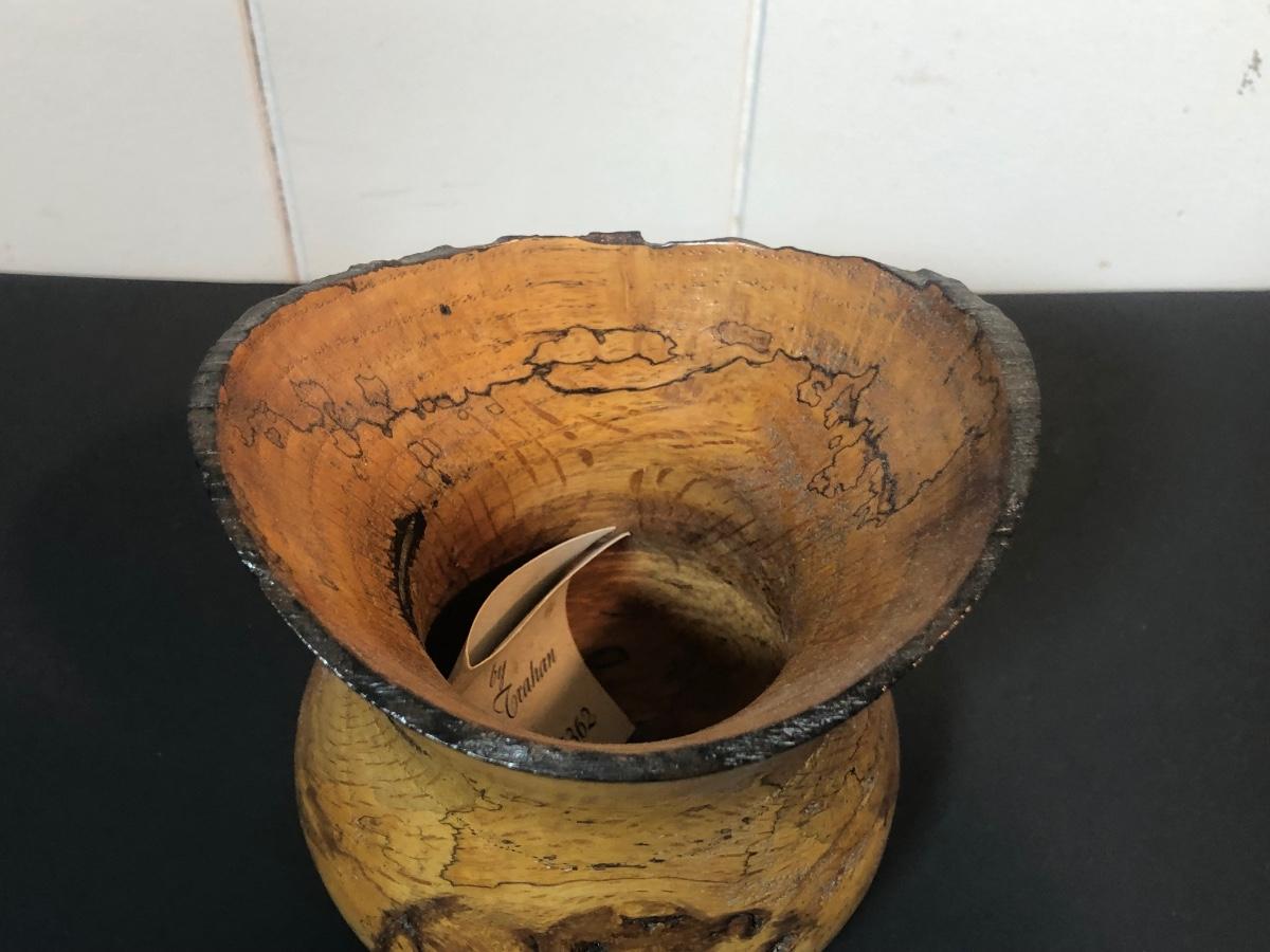 LOT 35L: Signed Hoffman Art Pottery Jug, Tom Trahan Wood Turning Natural Edge Jar & Signed Unique Pottery Candle Holder