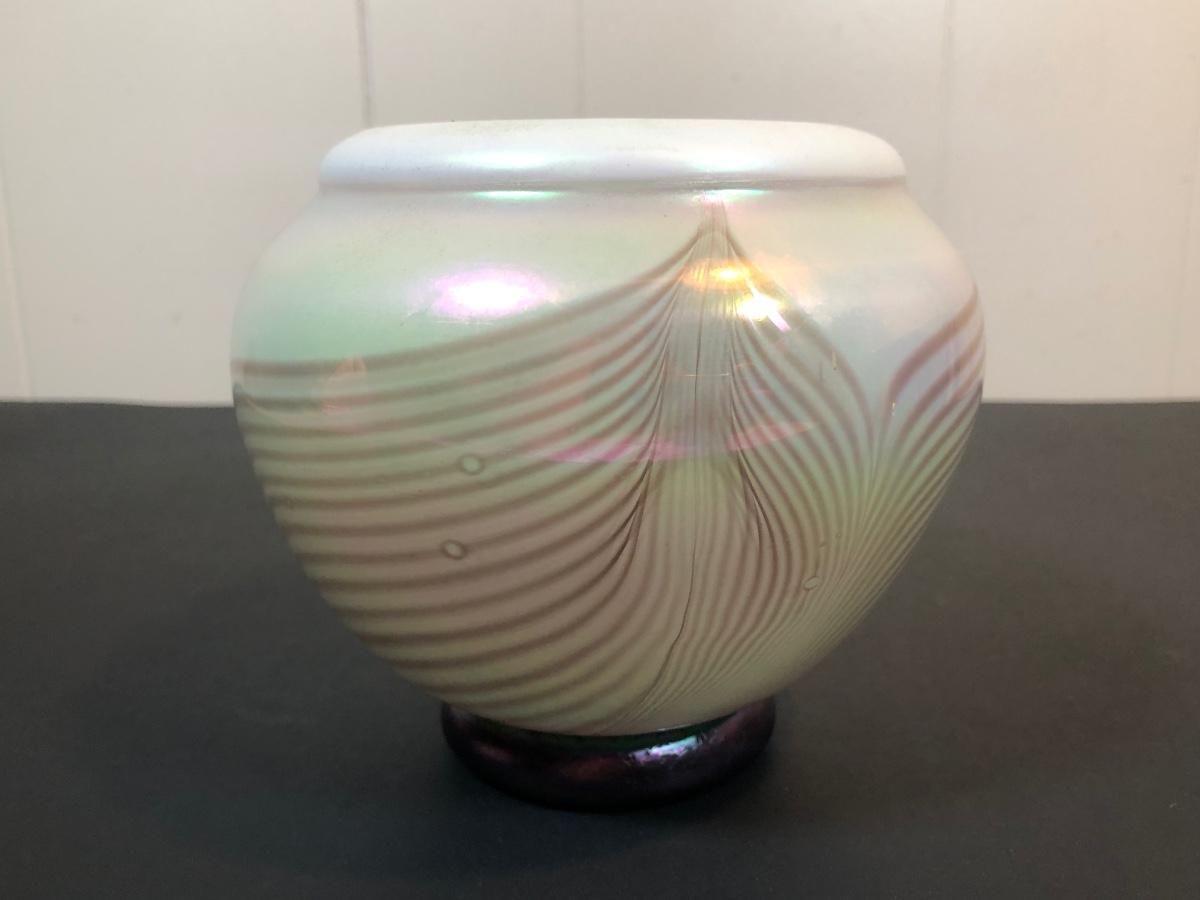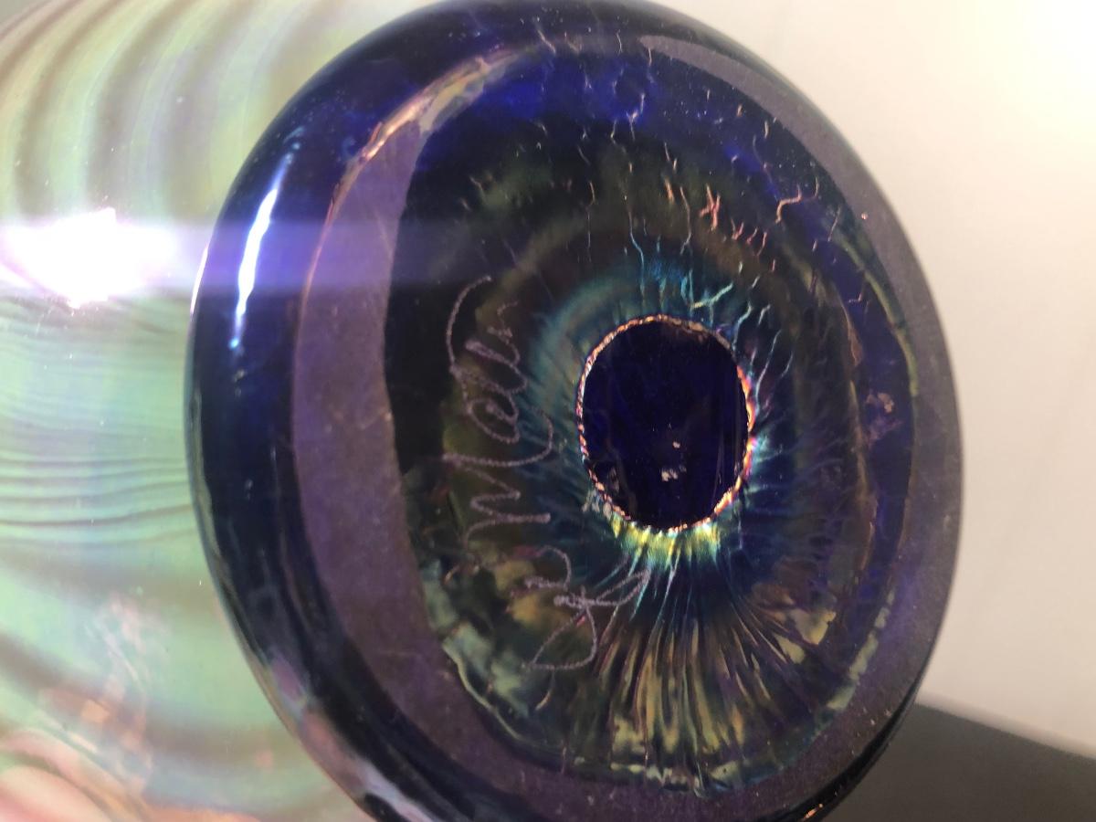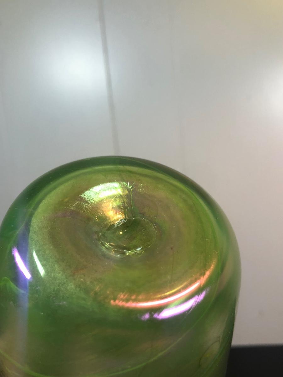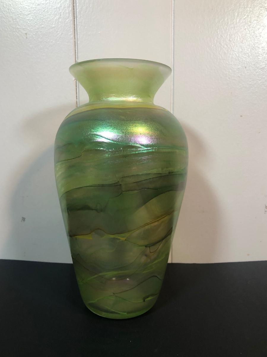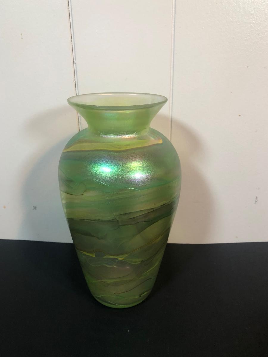 LOT 39L: Signed Handblown Dichroic Glass Jar & Handblown Green Glass Vase