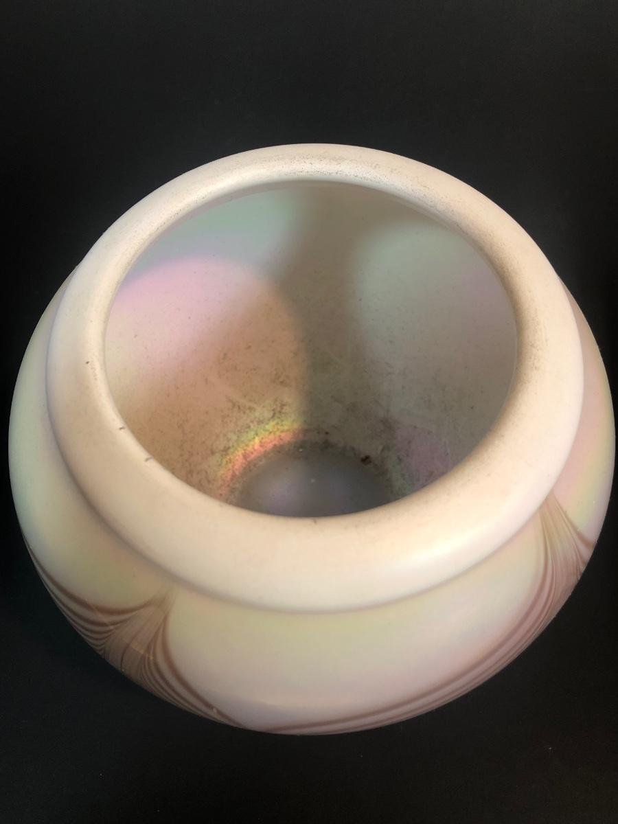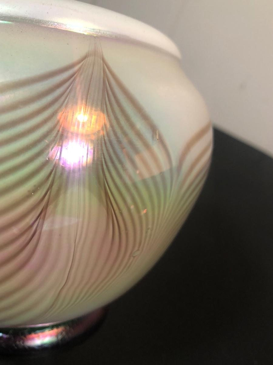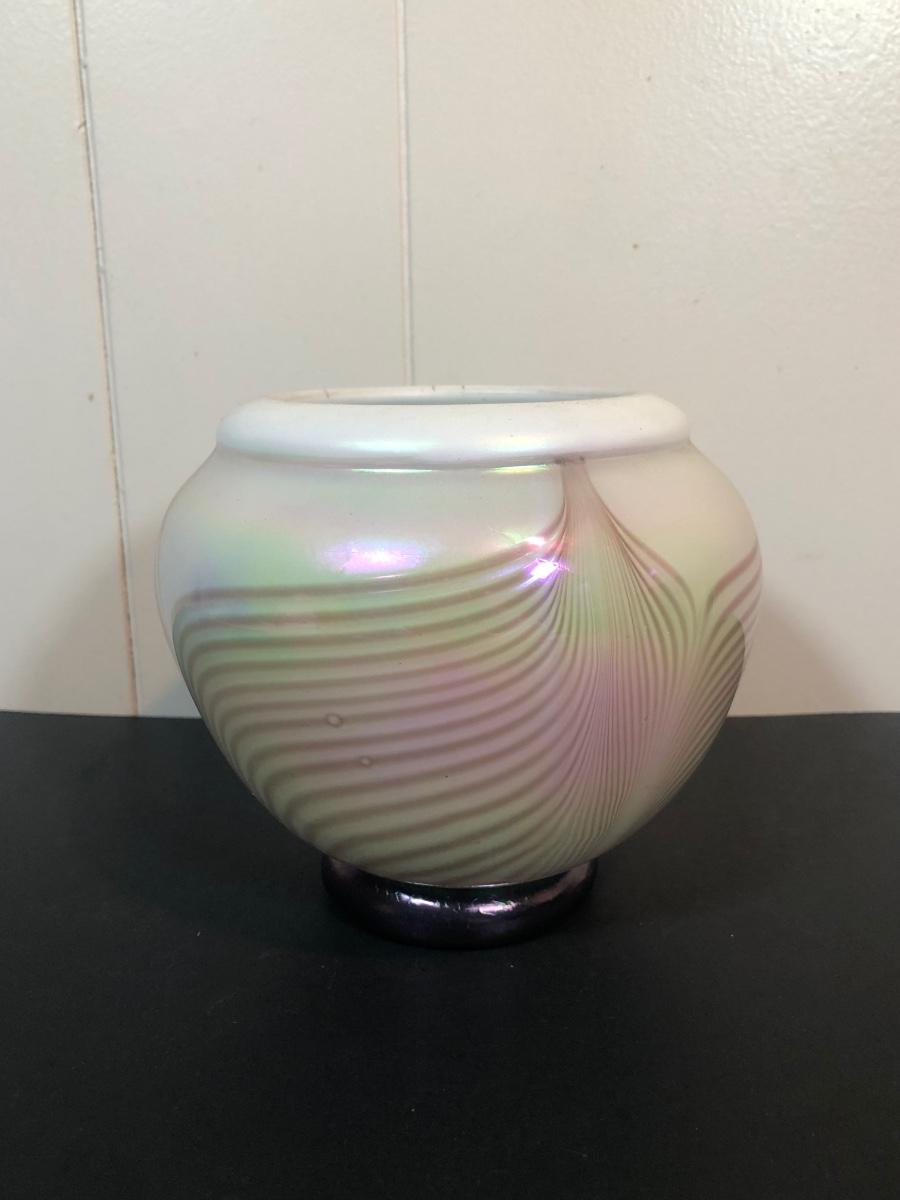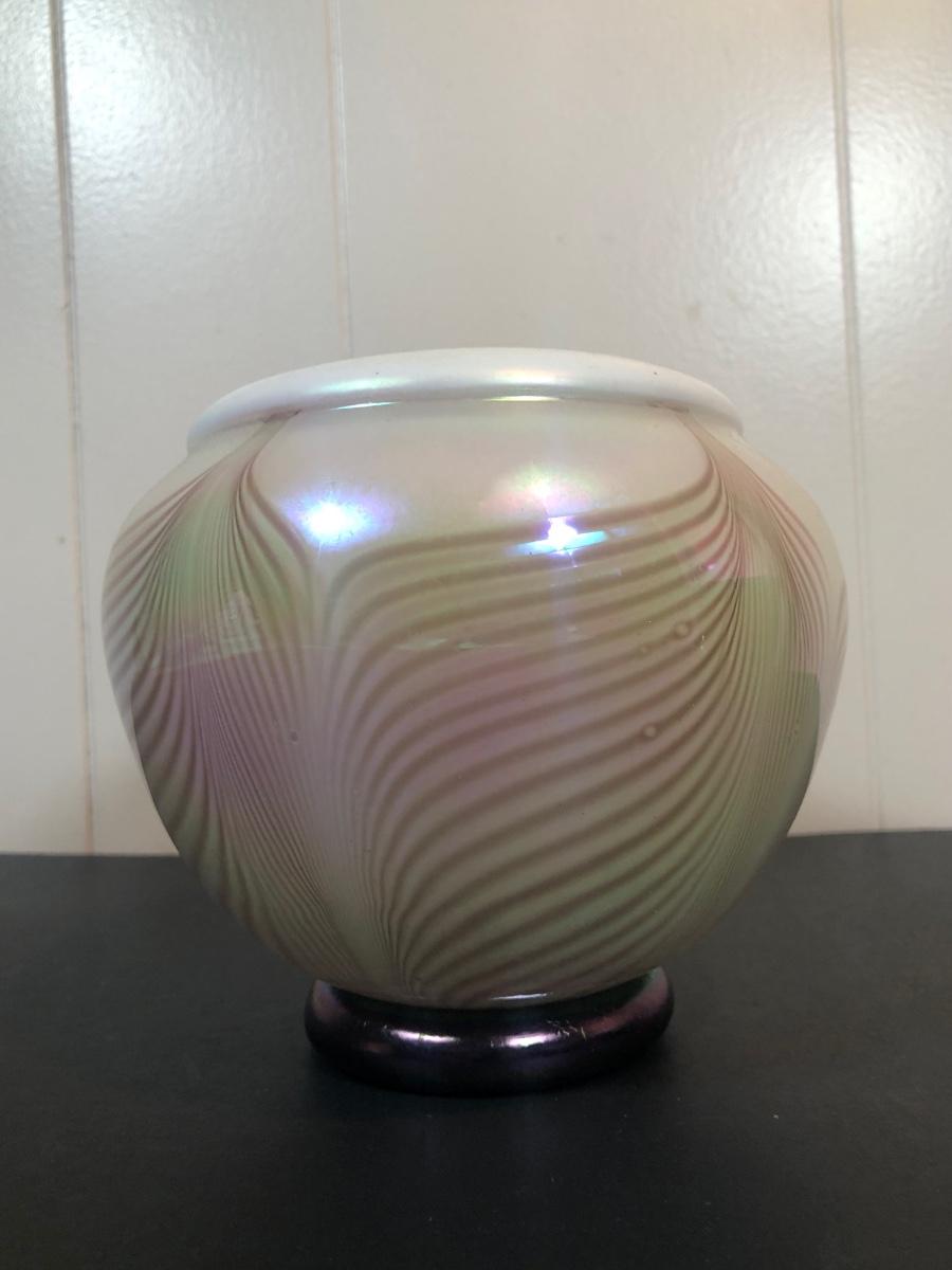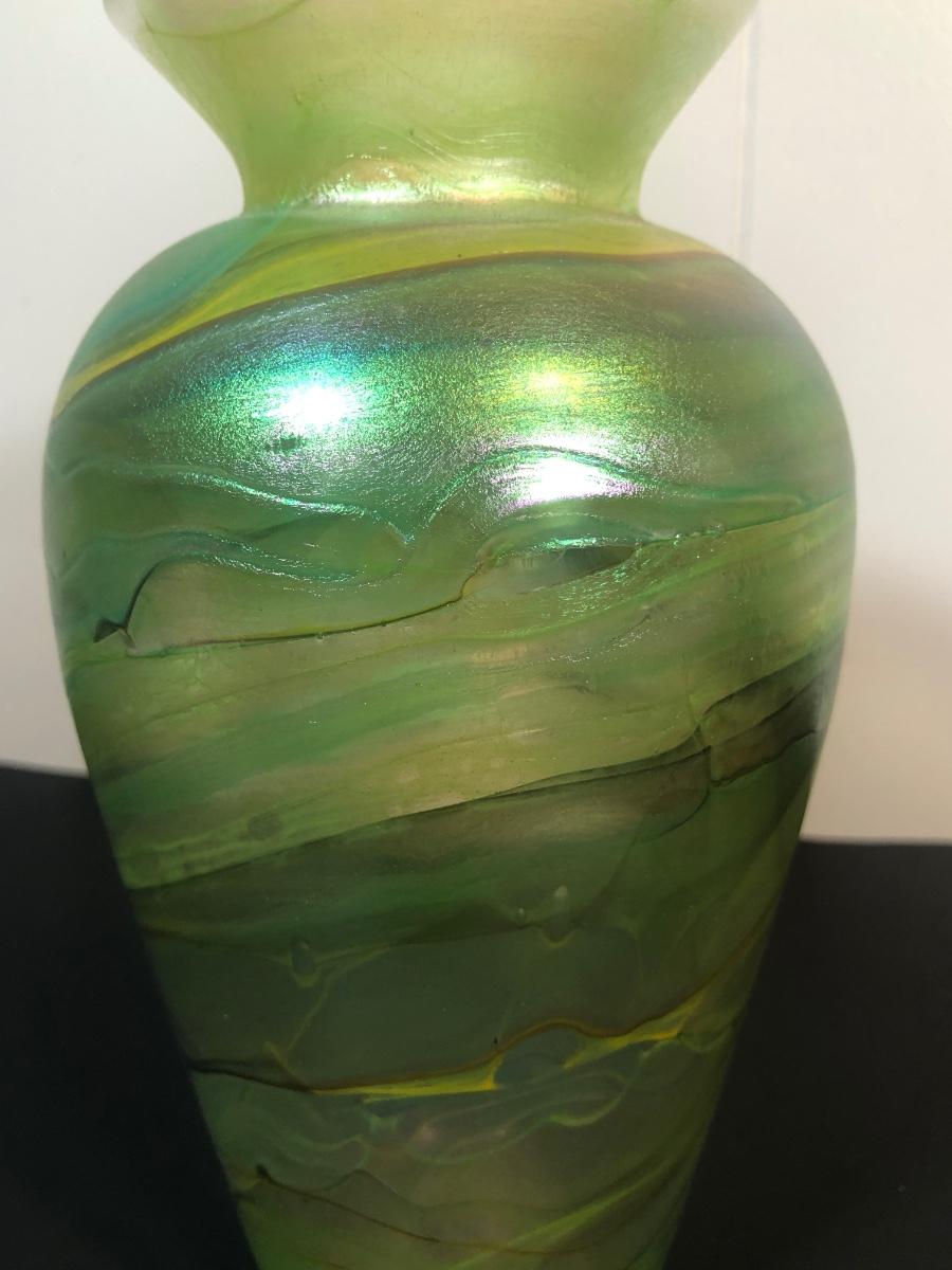 LOT 39L: Signed Handblown Dichroic Glass Jar & Handblown Green Glass Vase