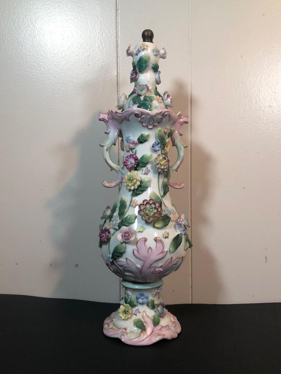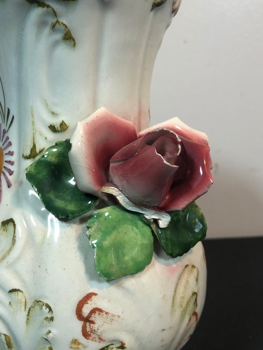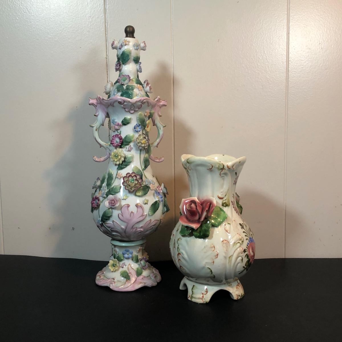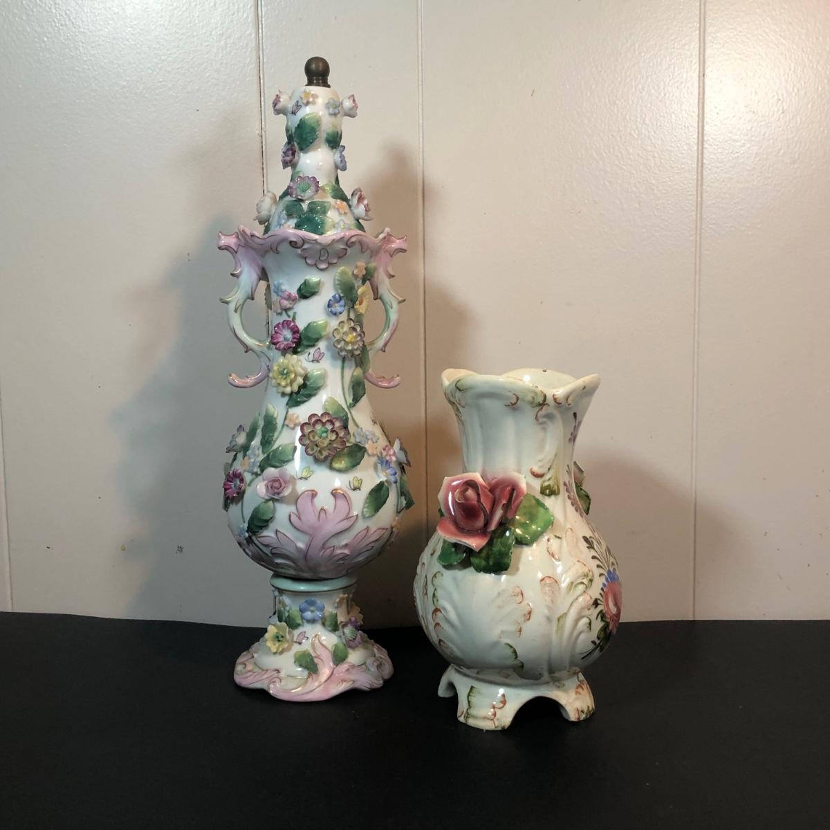 LOT 41L: Vintage Floral Pottery - Tall Lidded Vase & Hand Painted Italian Vase