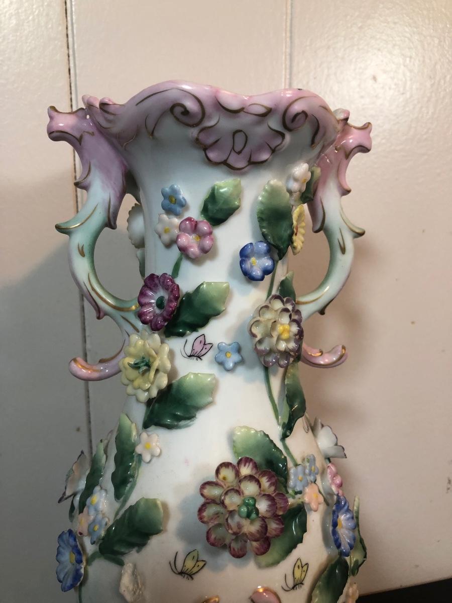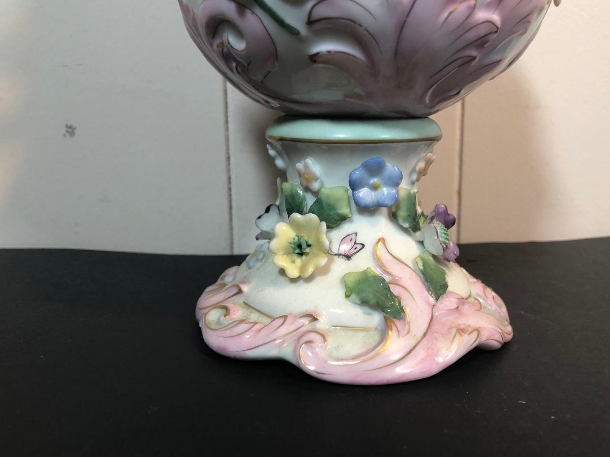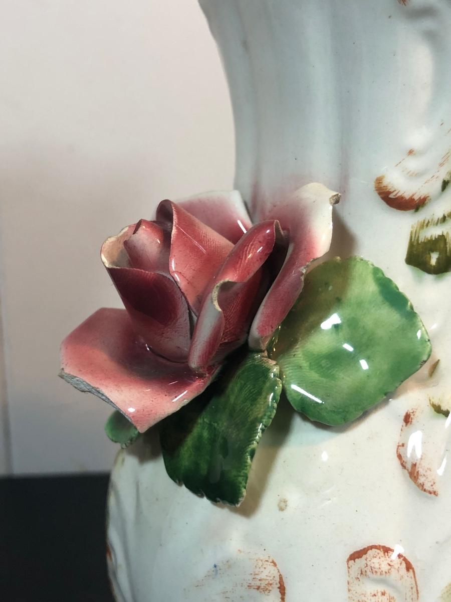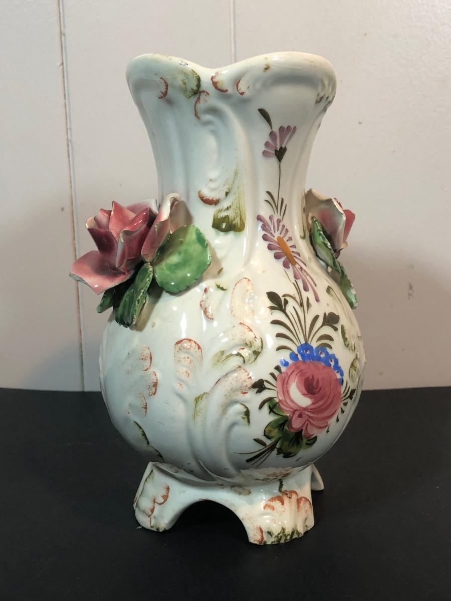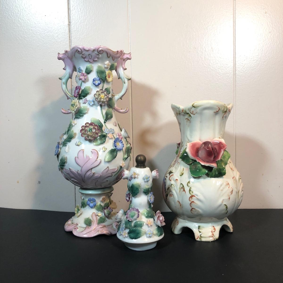 LOT 41L: Vintage Floral Pottery - Tall Lidded Vase & Hand Painted Italian Vase