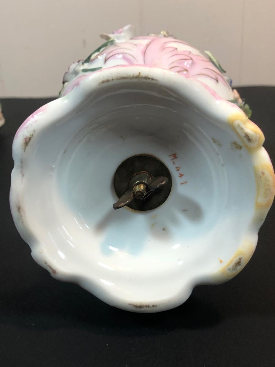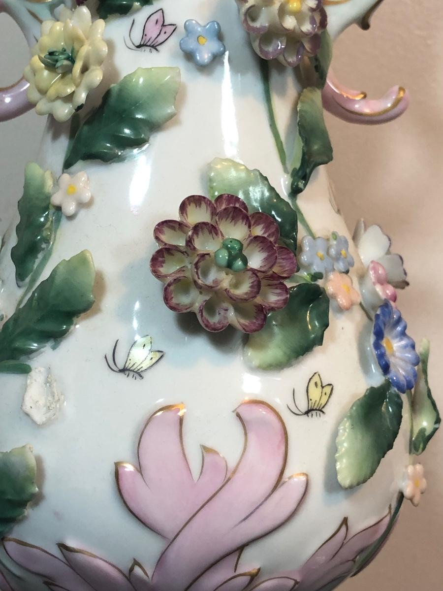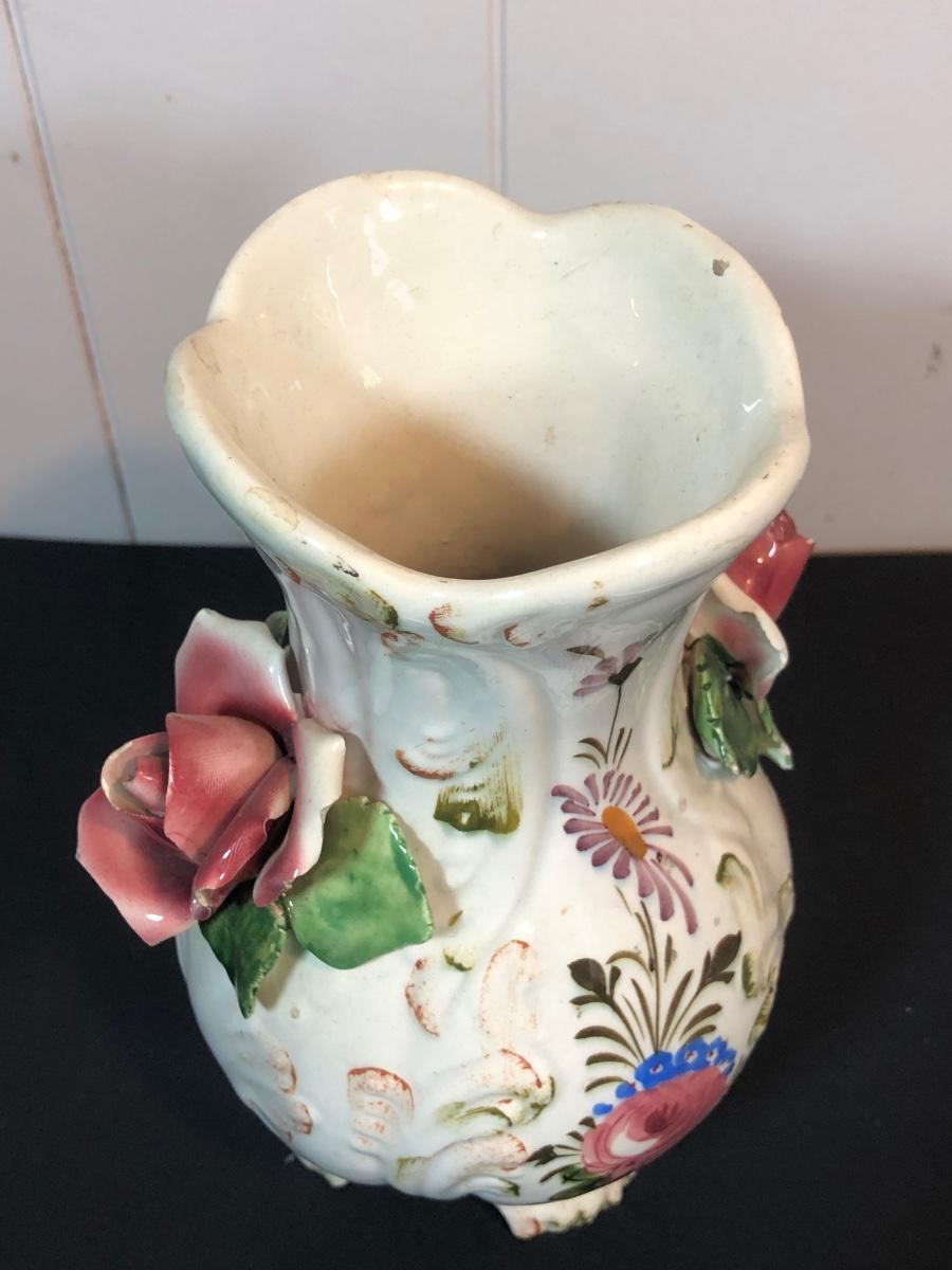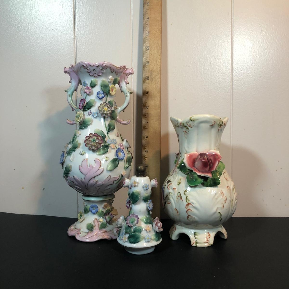 LOT 41L: Vintage Floral Pottery - Tall Lidded Vase & Hand Painted Italian Vase