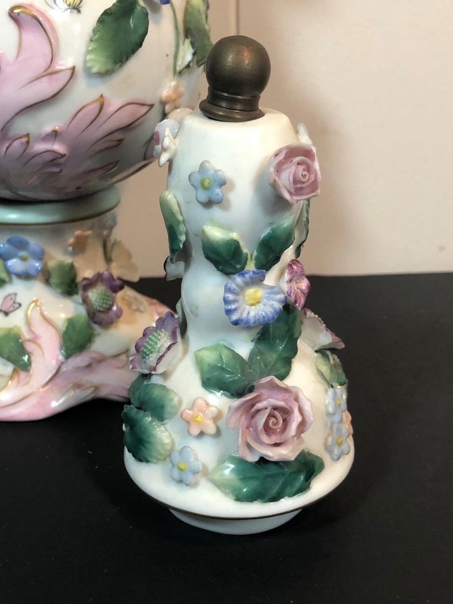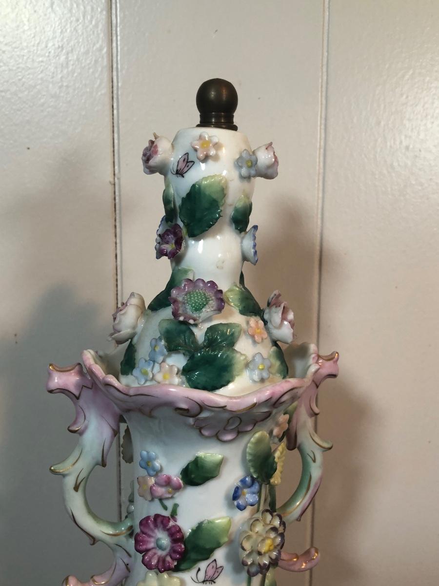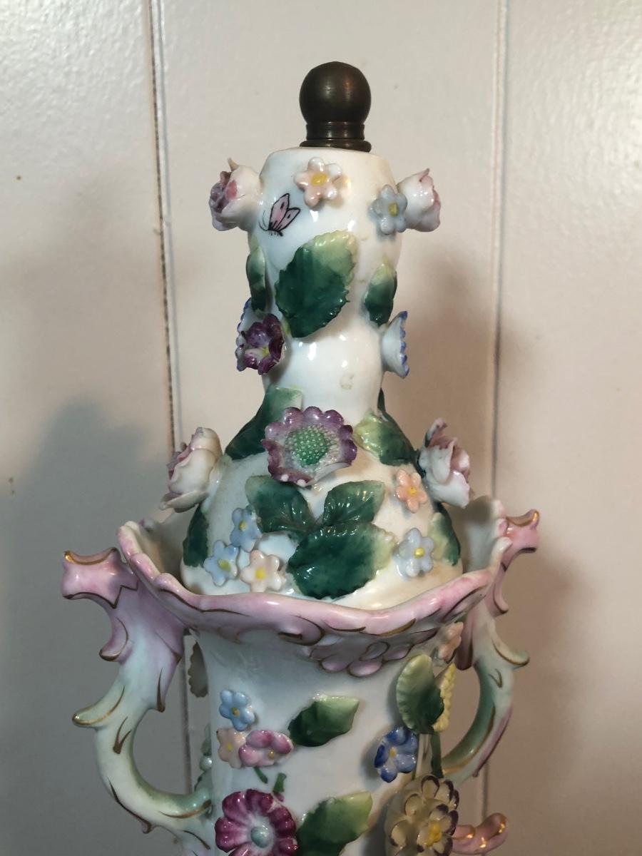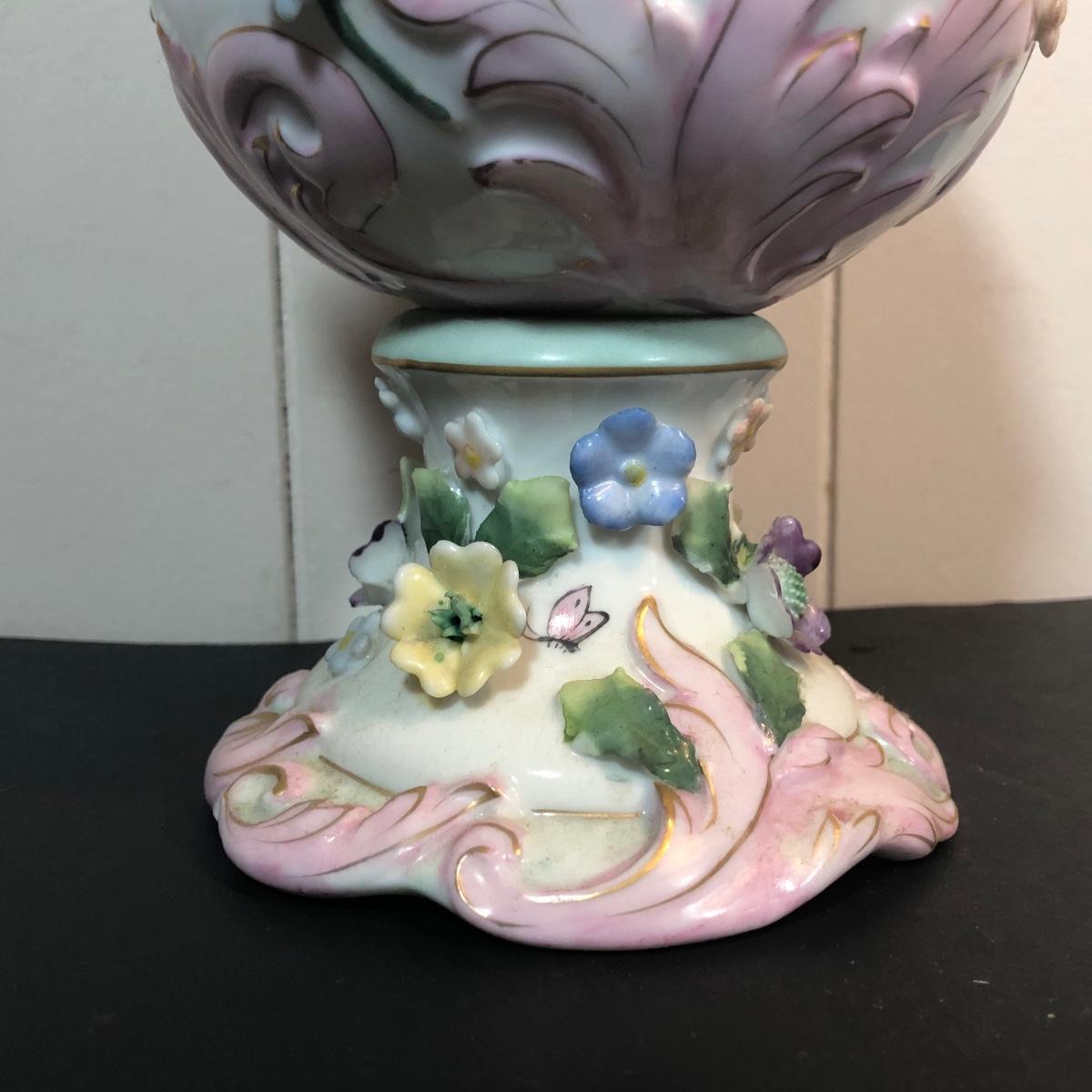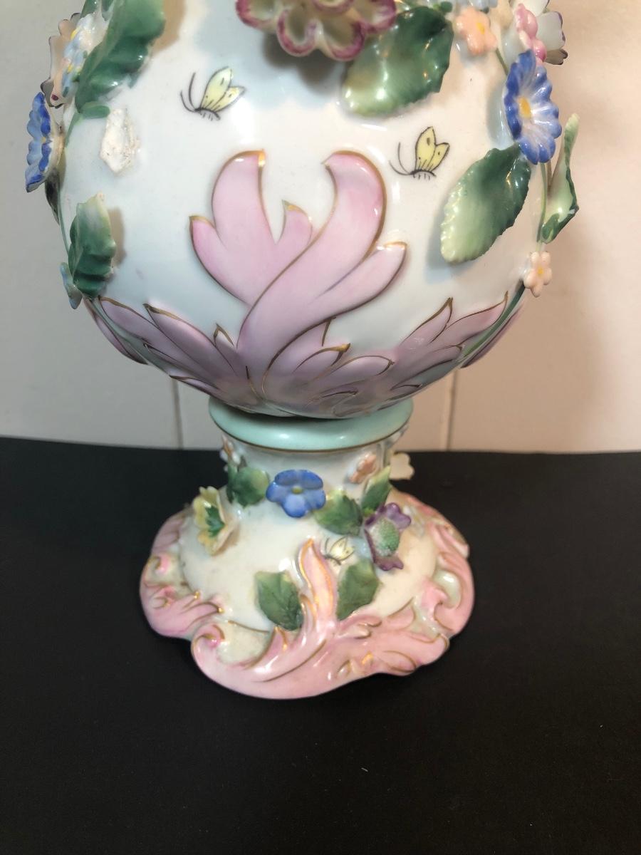LOT 41L: Vintage Floral Pottery - Tall Lidded Vase & Hand Painted Italian Vase