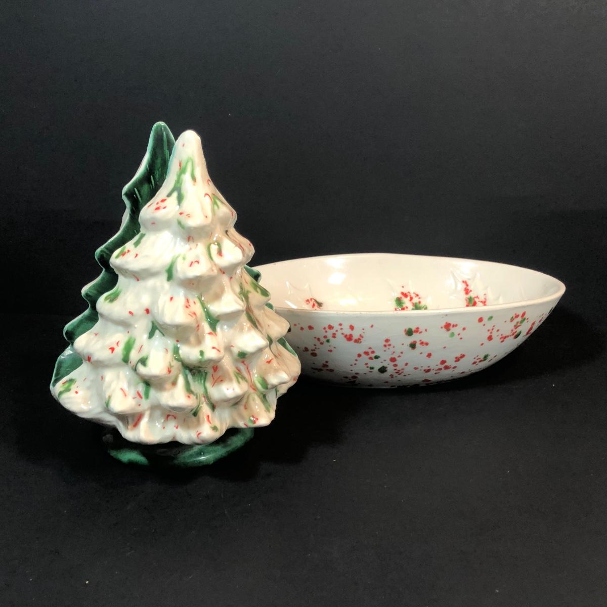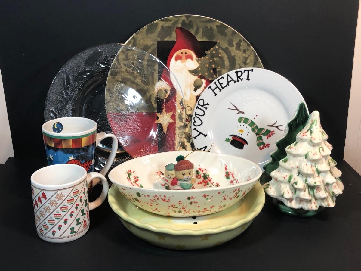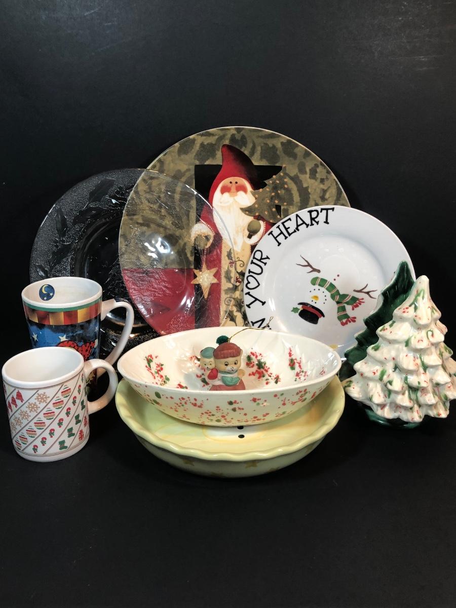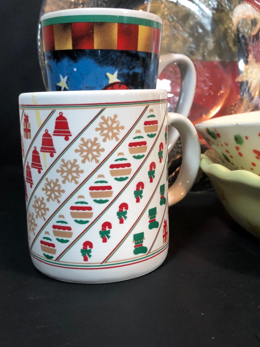 LOT 56K: Christmas Kitchen Collection - Vintage Speckled Pottery, Mugs, Plates, Glasses & More