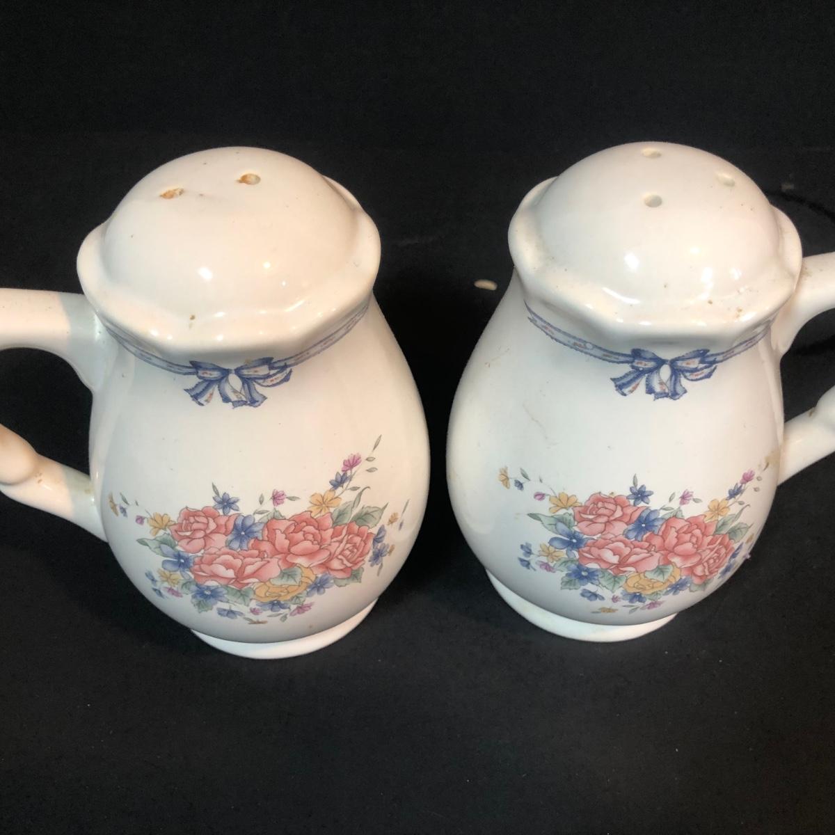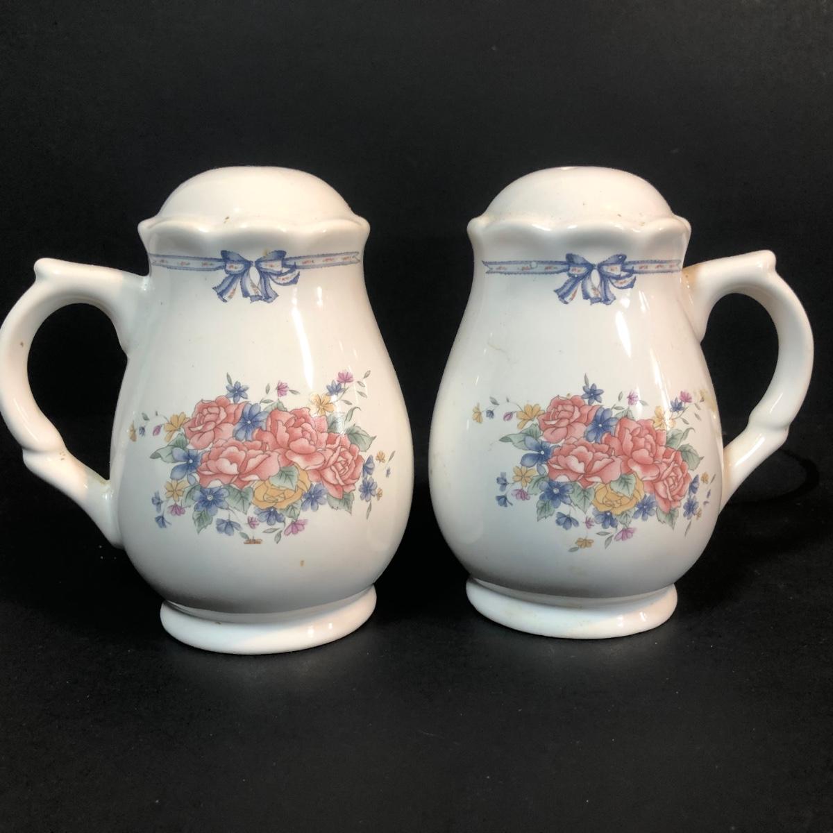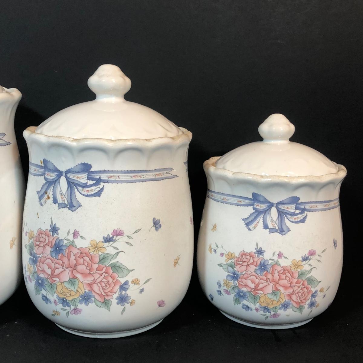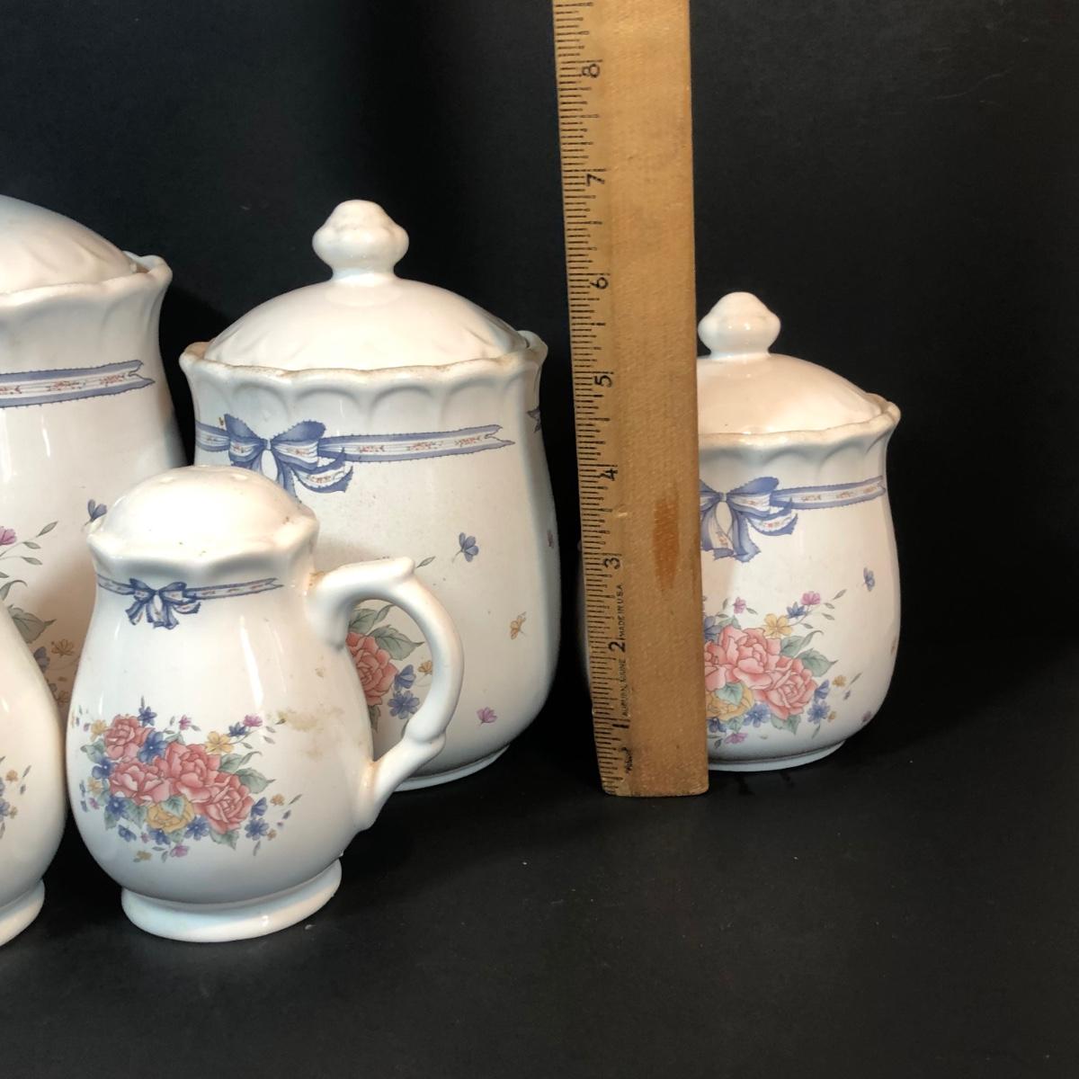 LOT 59K: Vintage Floral Ceramic Kitchen Canisters w/ Matching Salt & Pepper Shakers