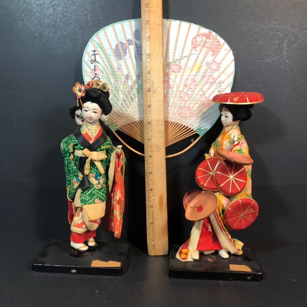 LOT 60L: Vintage Japanese Nishi Dolls w/ Fan