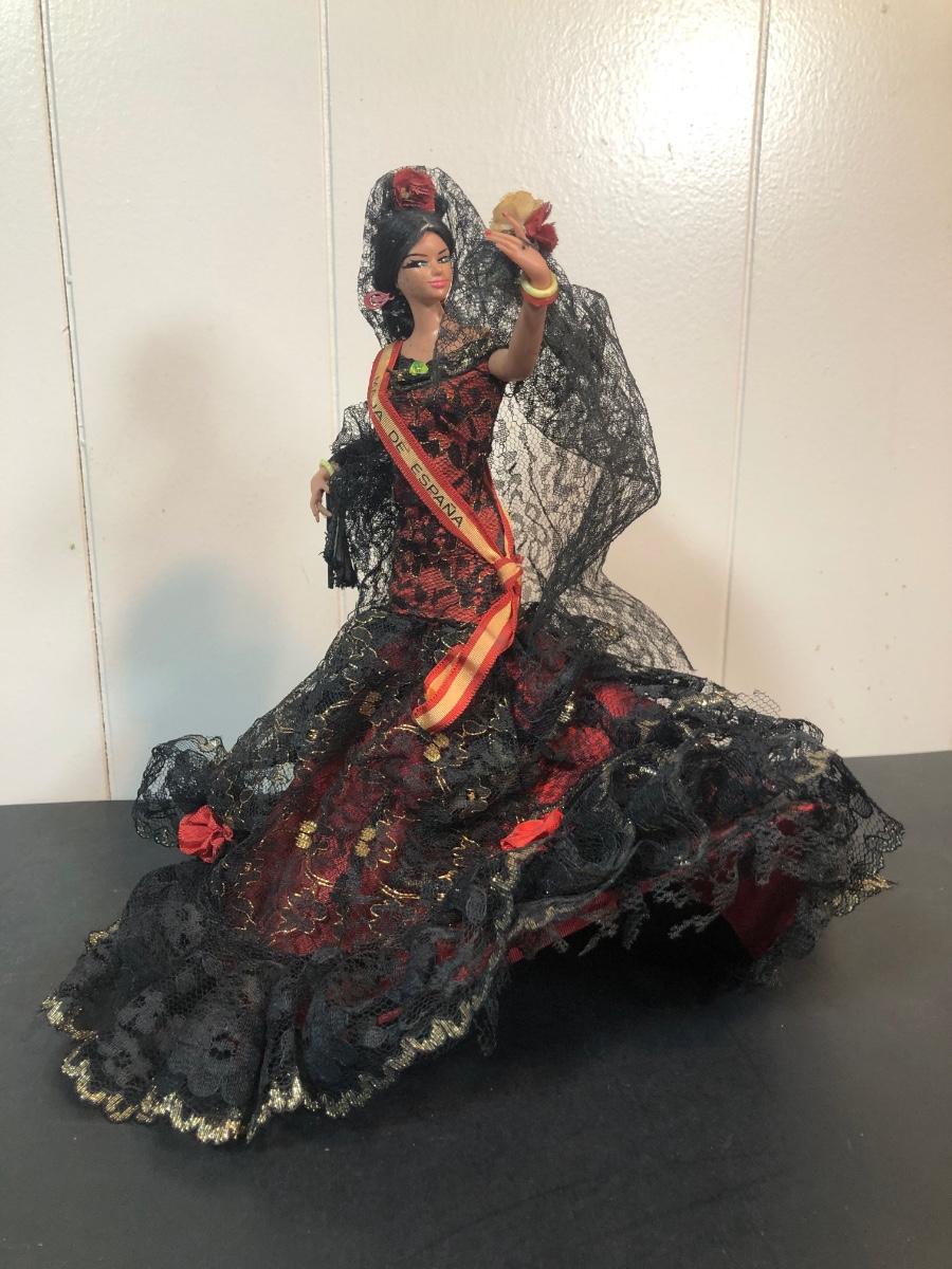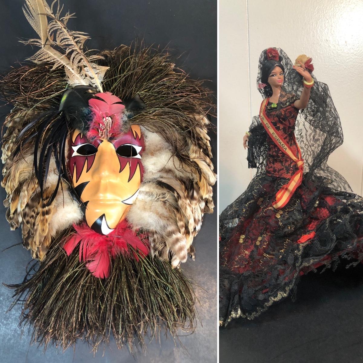 LOT 64L: Vintage 1990 Signed Mardi Gras Mask & Spanish Flamenco Dancer Doll