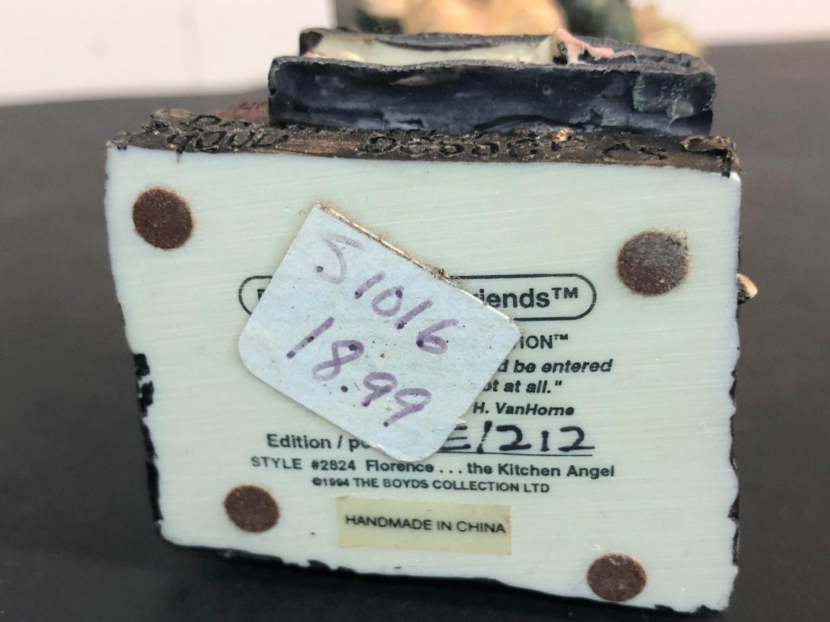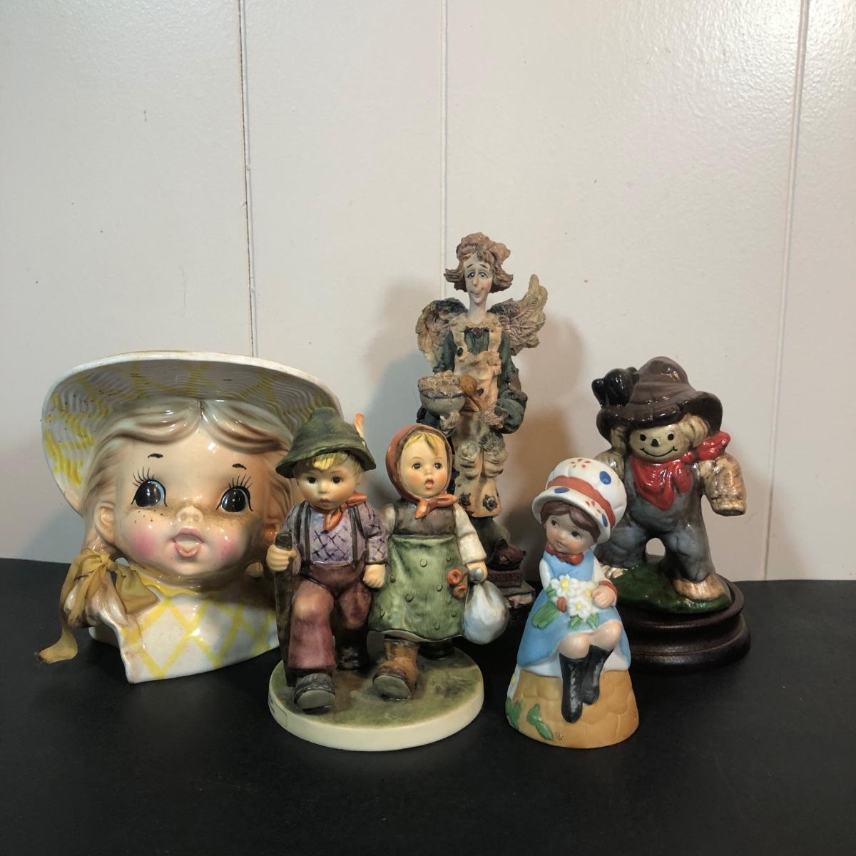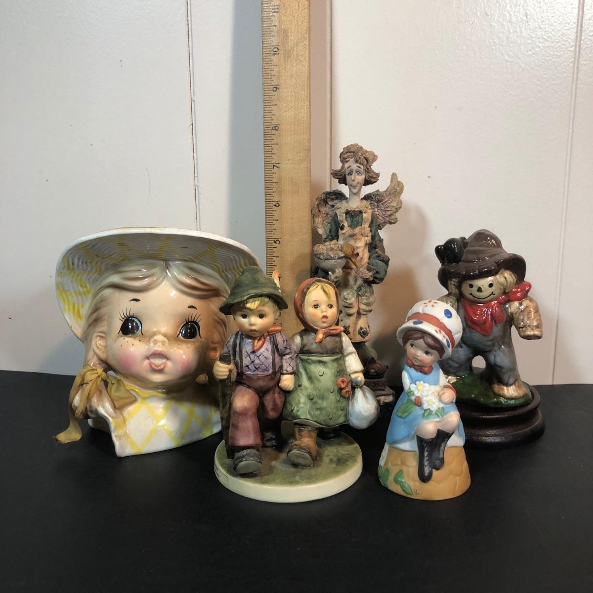 LOT 65L: Boyds Bears and Friends Florence the Kitchen Angel Figurine (E1212), Samson Import Co Girl Head Planter w/ Cloth Bows, Goebel Hummel Going Home Figurine & More