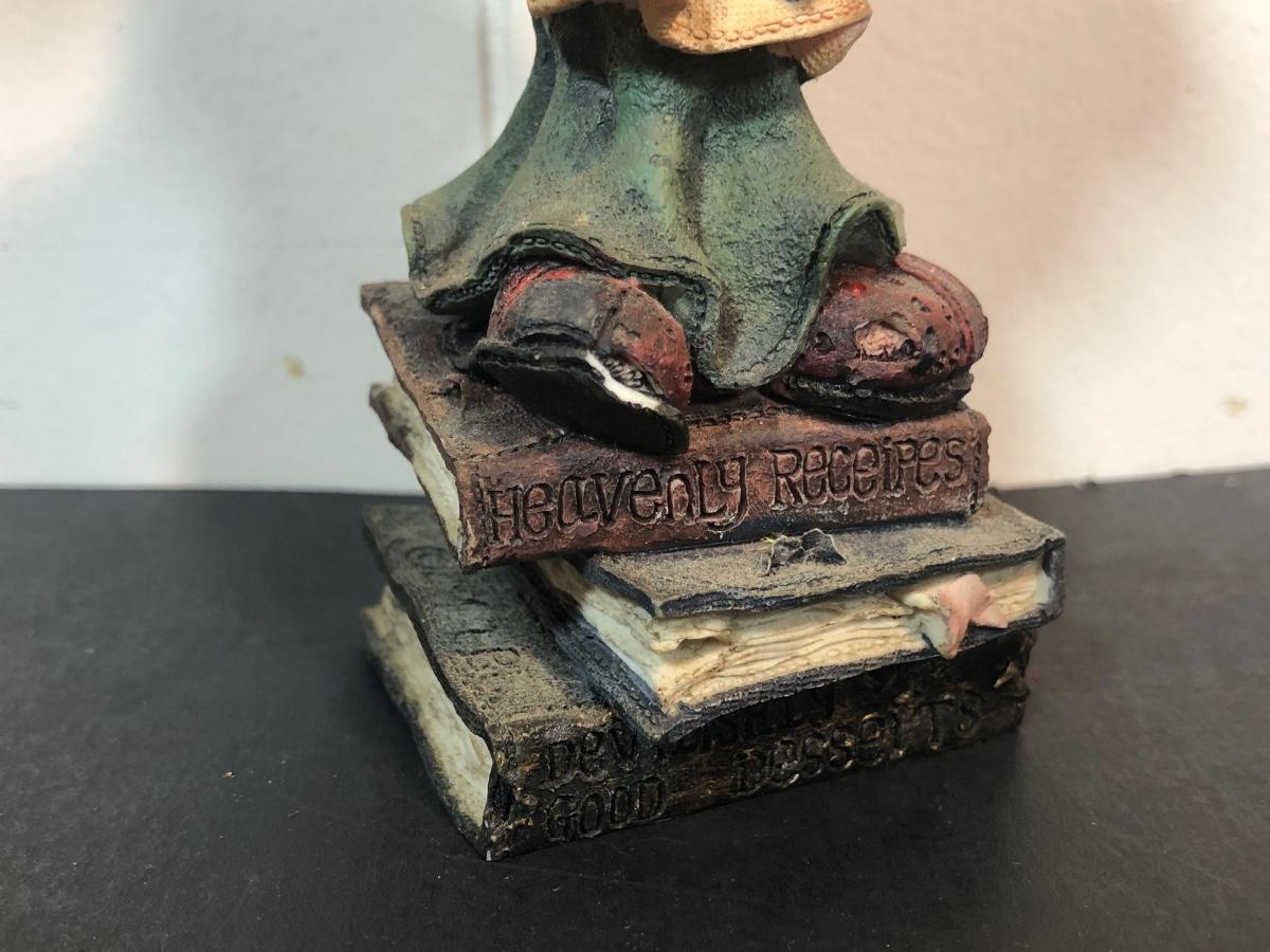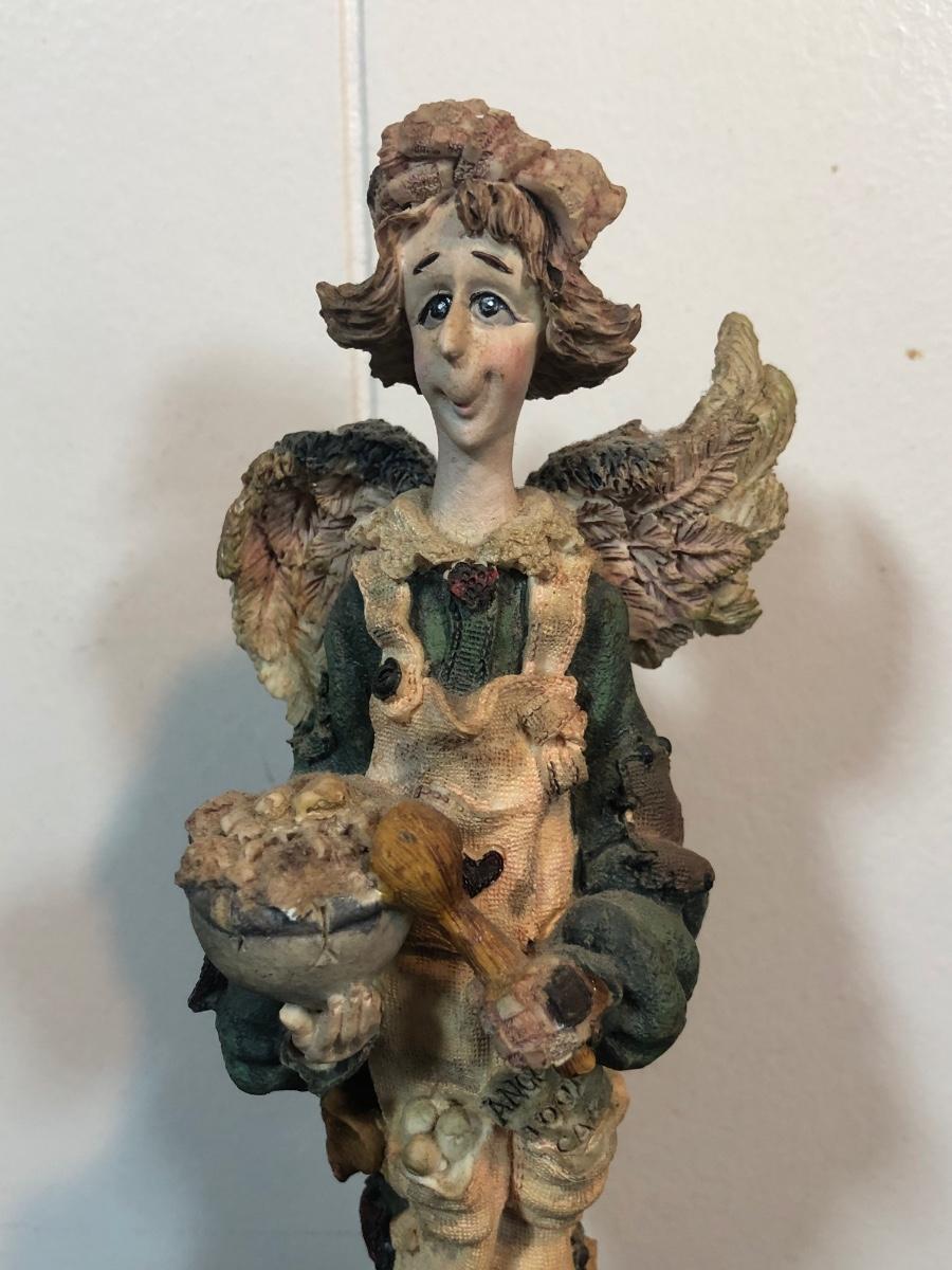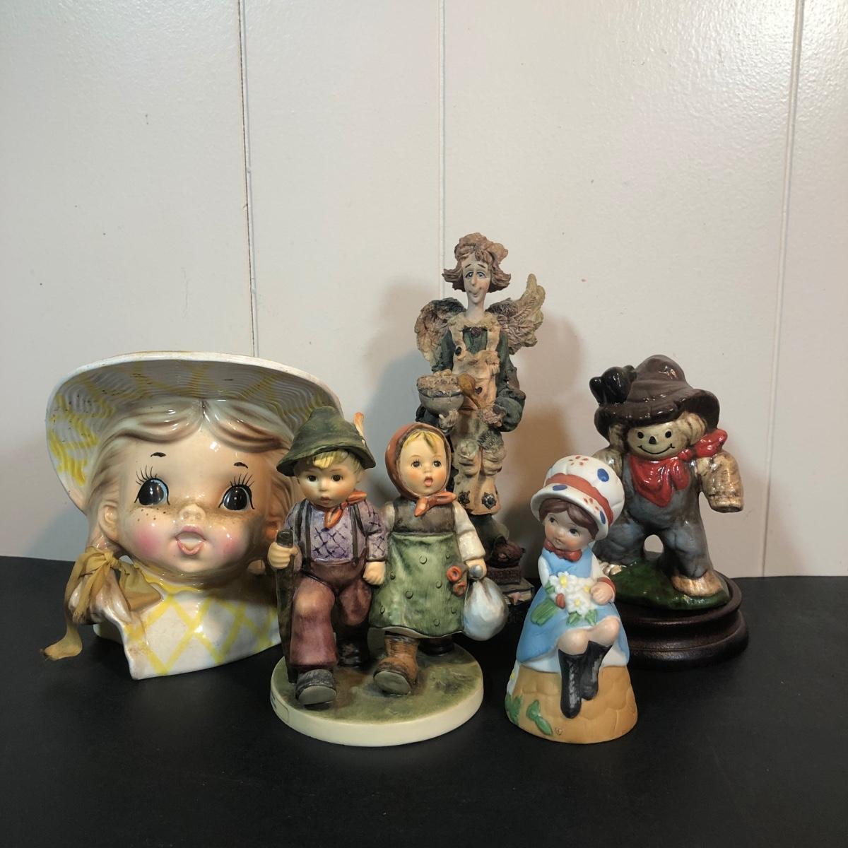 LOT 65L: Boyds Bears and Friends Florence the Kitchen Angel Figurine (E1212), Samson Import Co Girl Head Planter w/ Cloth Bows, Goebel Hummel Going Home Figurine & More