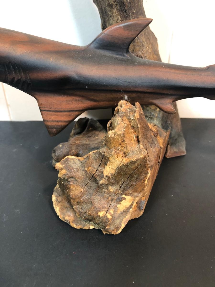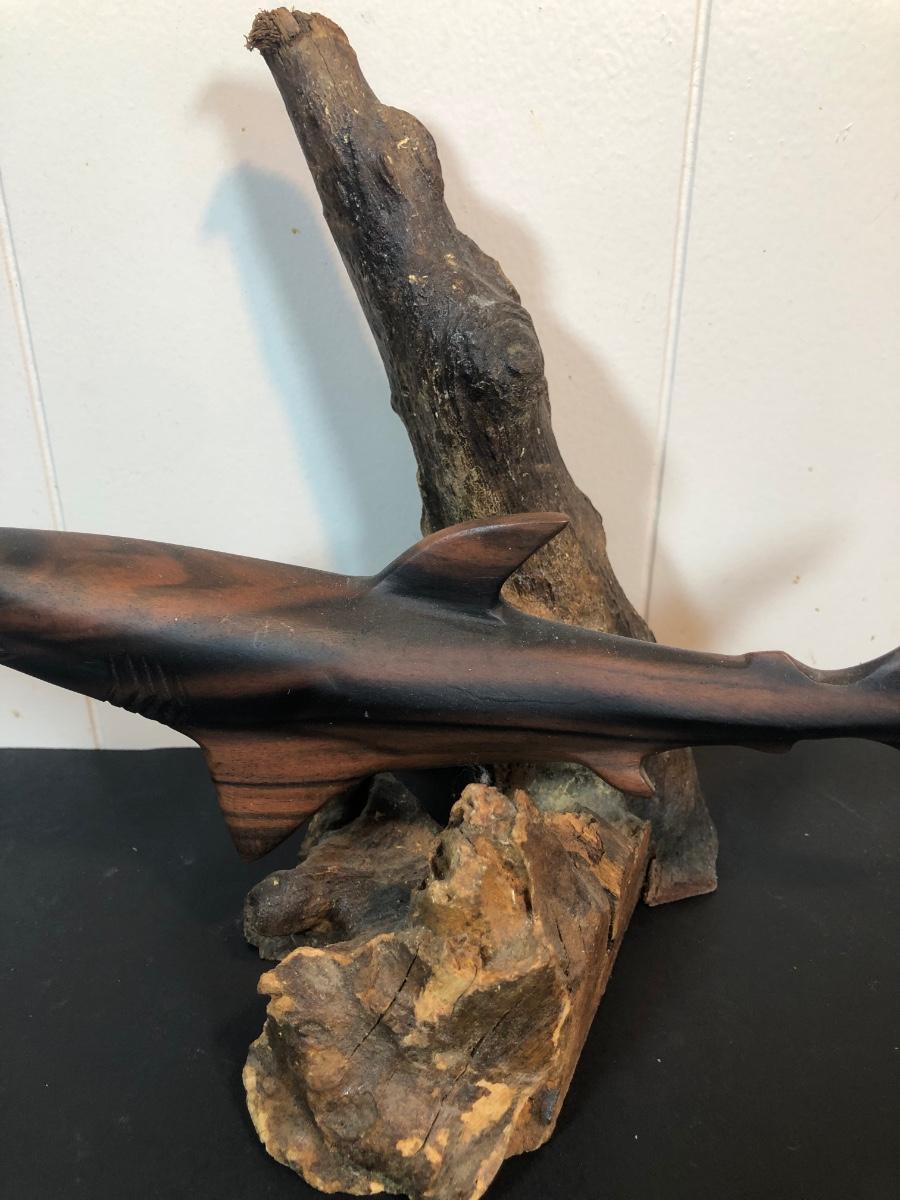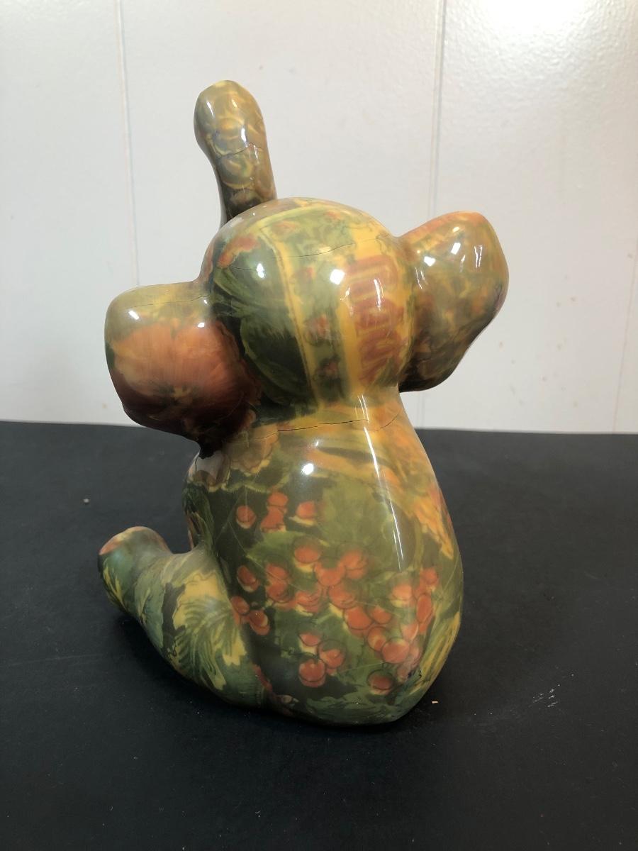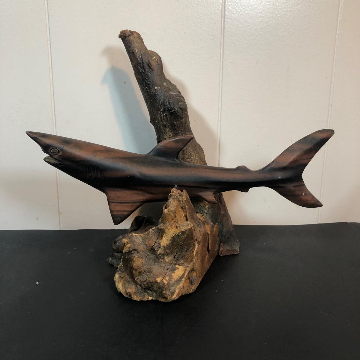LOT 66L: Wood Shark Sculpture, 2002 Cow Parade #2255 A Starry Night in Texas & Patchwork Ceramic Elephant