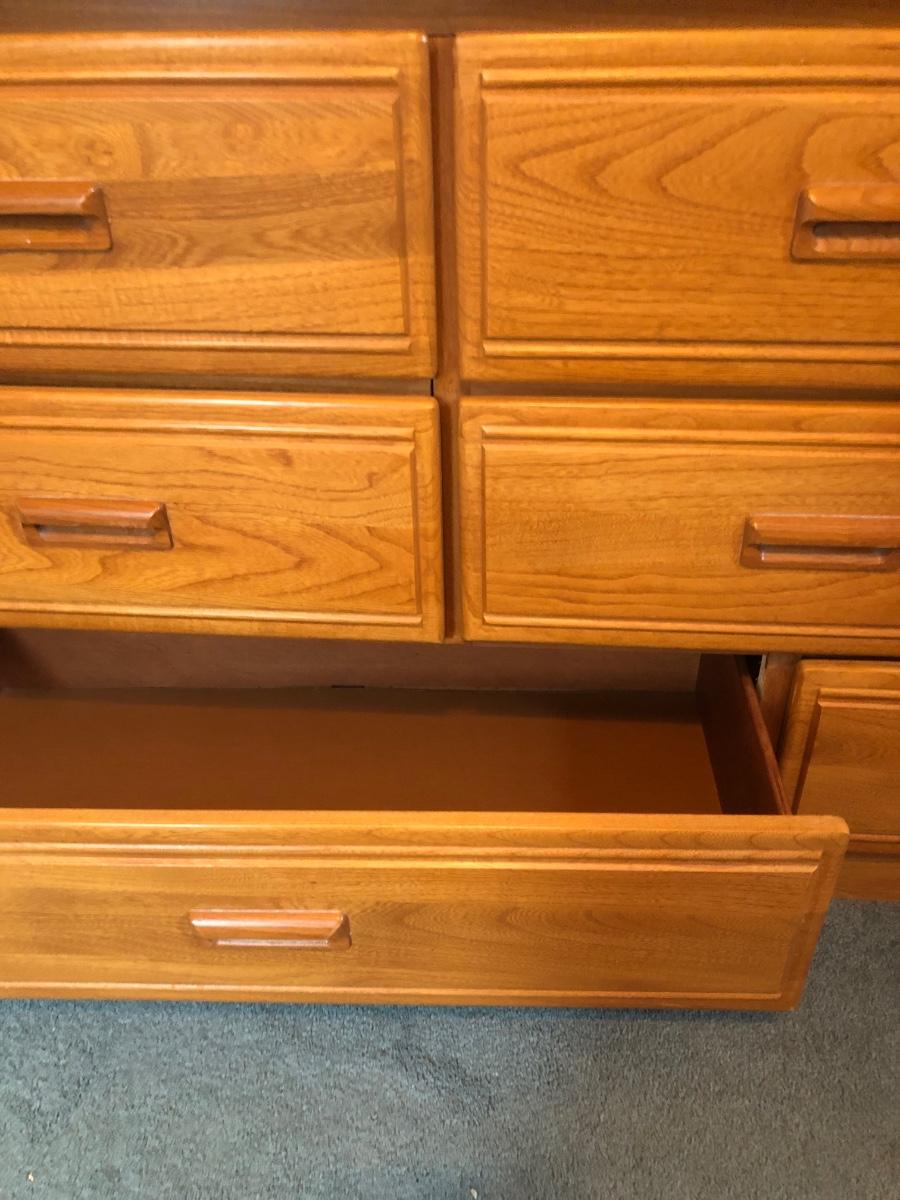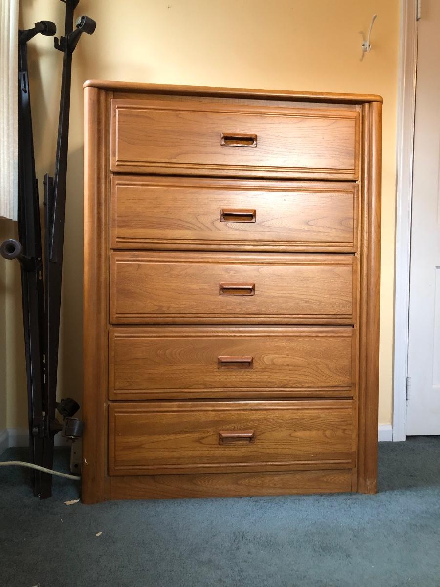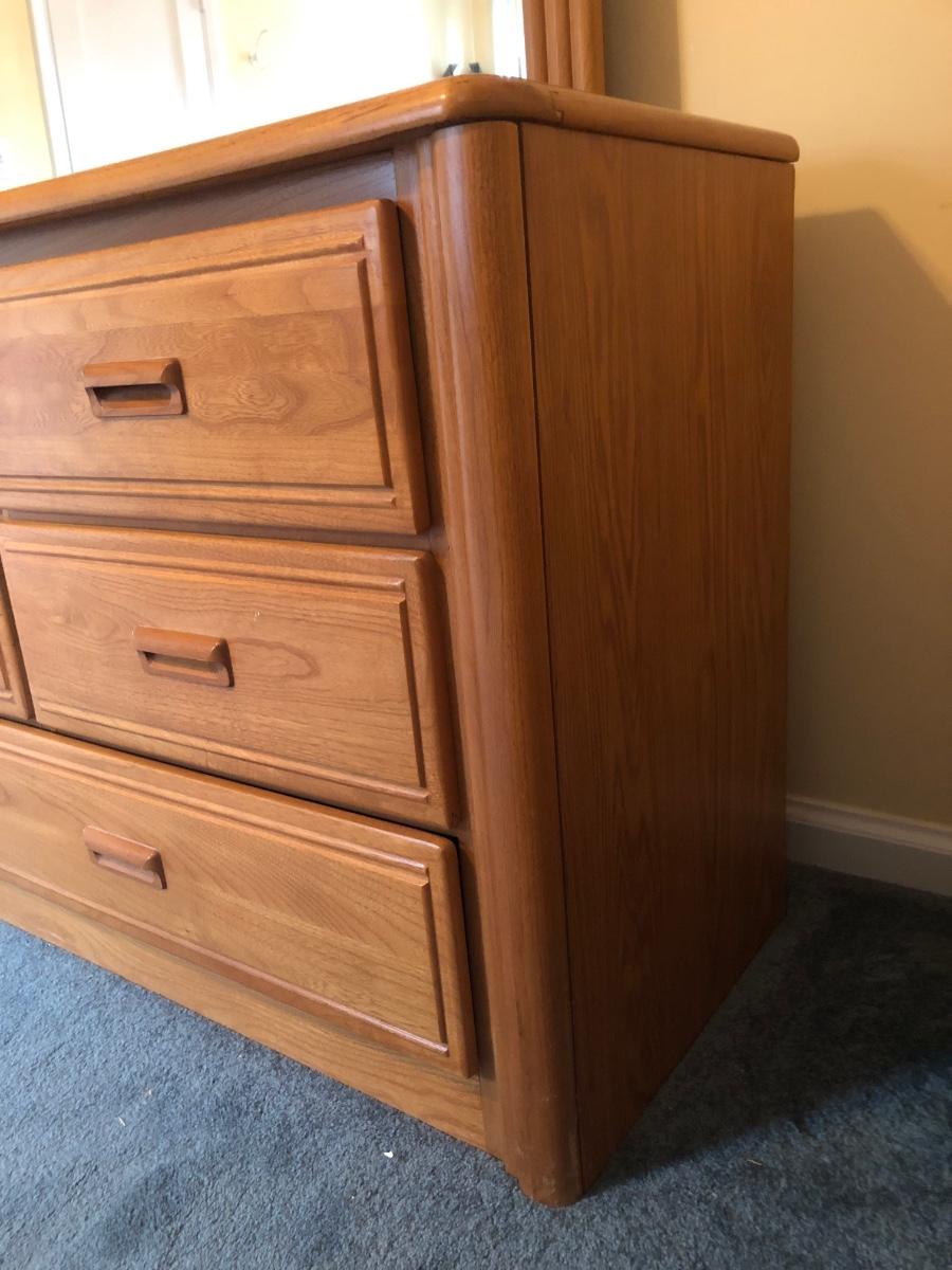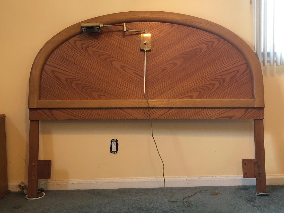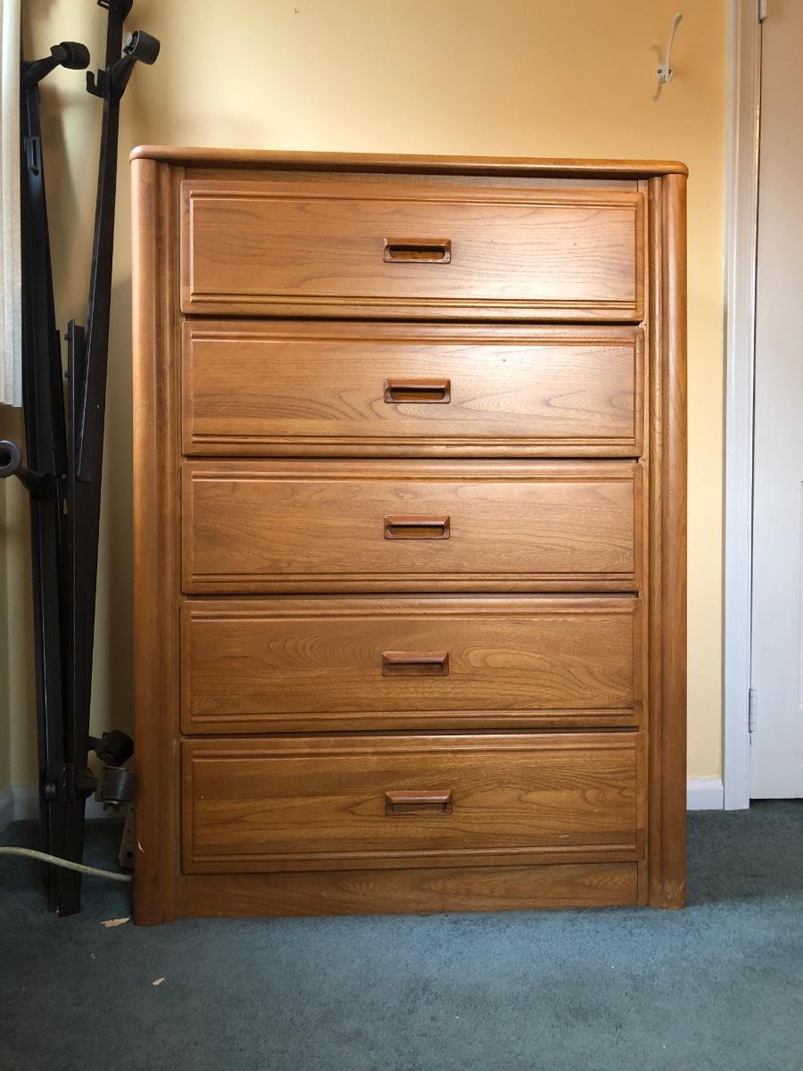 LOT 72C: Vintage Lea Bedroom Set - Headboard, Dresser w/ Mirror, 5 Drawer Dresser & End Table