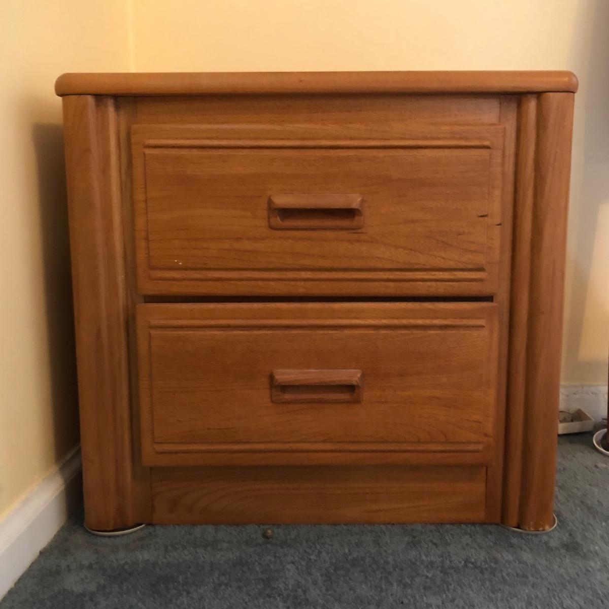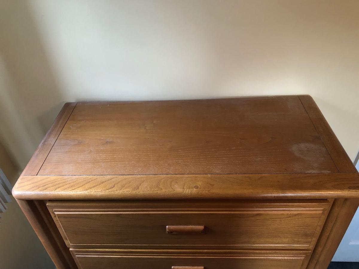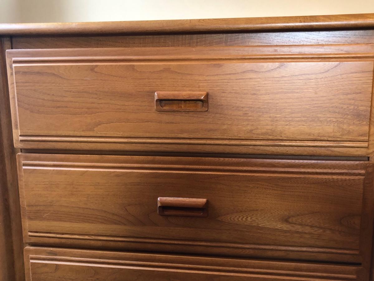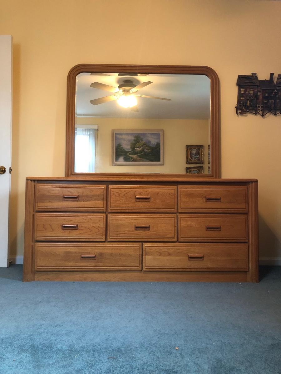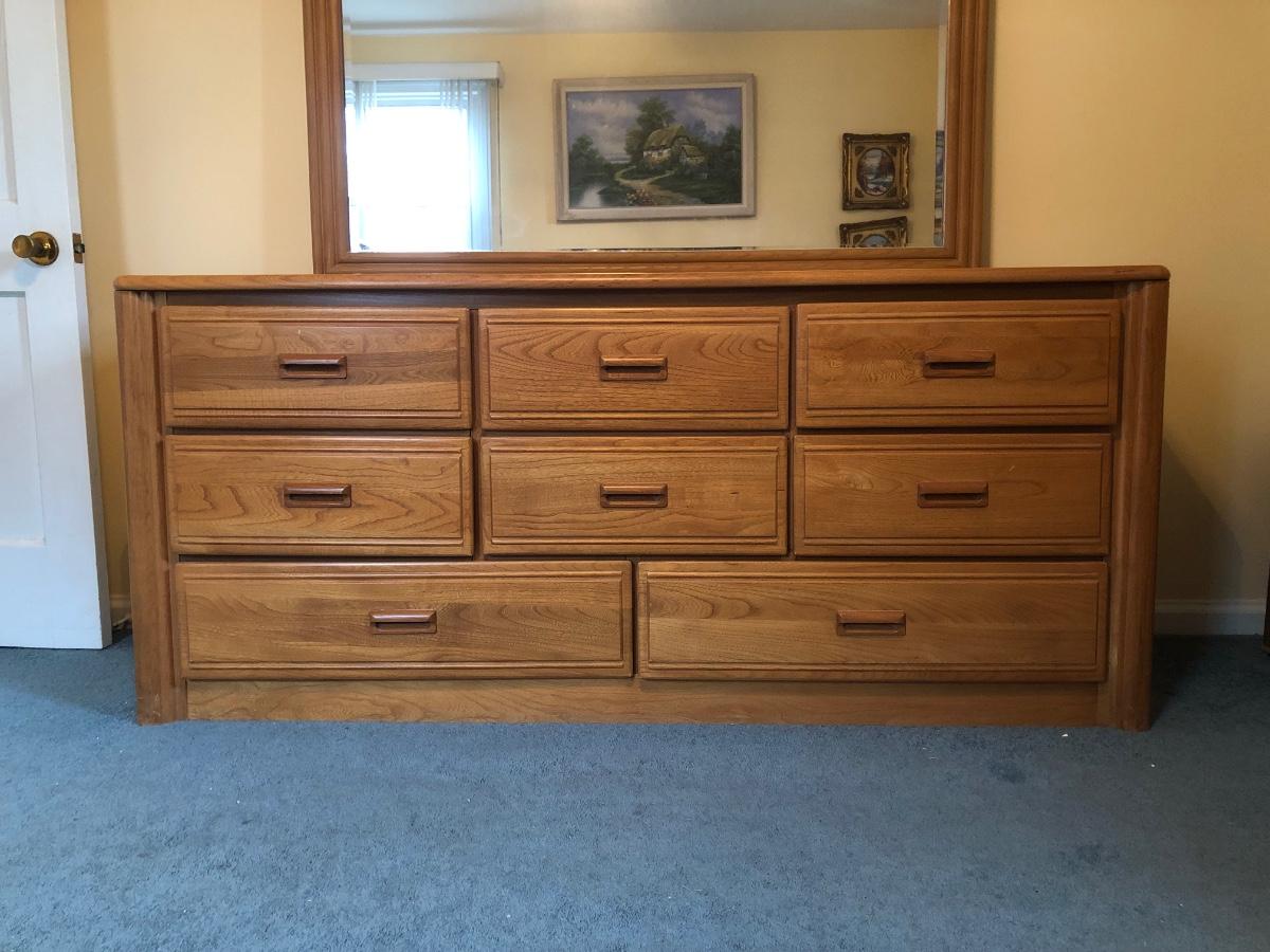 LOT 72C: Vintage Lea Bedroom Set - Headboard, Dresser w/ Mirror, 5 Drawer Dresser & End Table