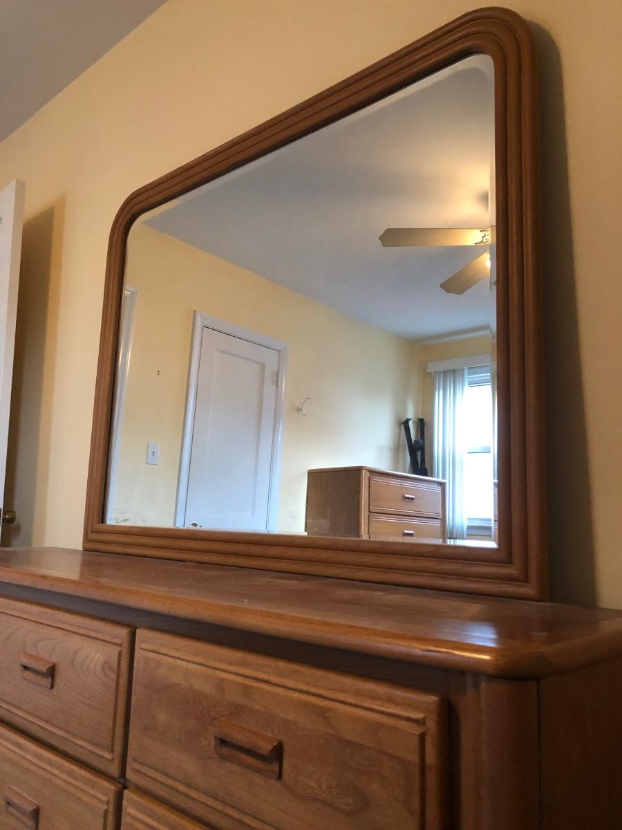 Dresser w/ mirror measures 68W x 18D x 30H and mirror is 53 x 41 inches.