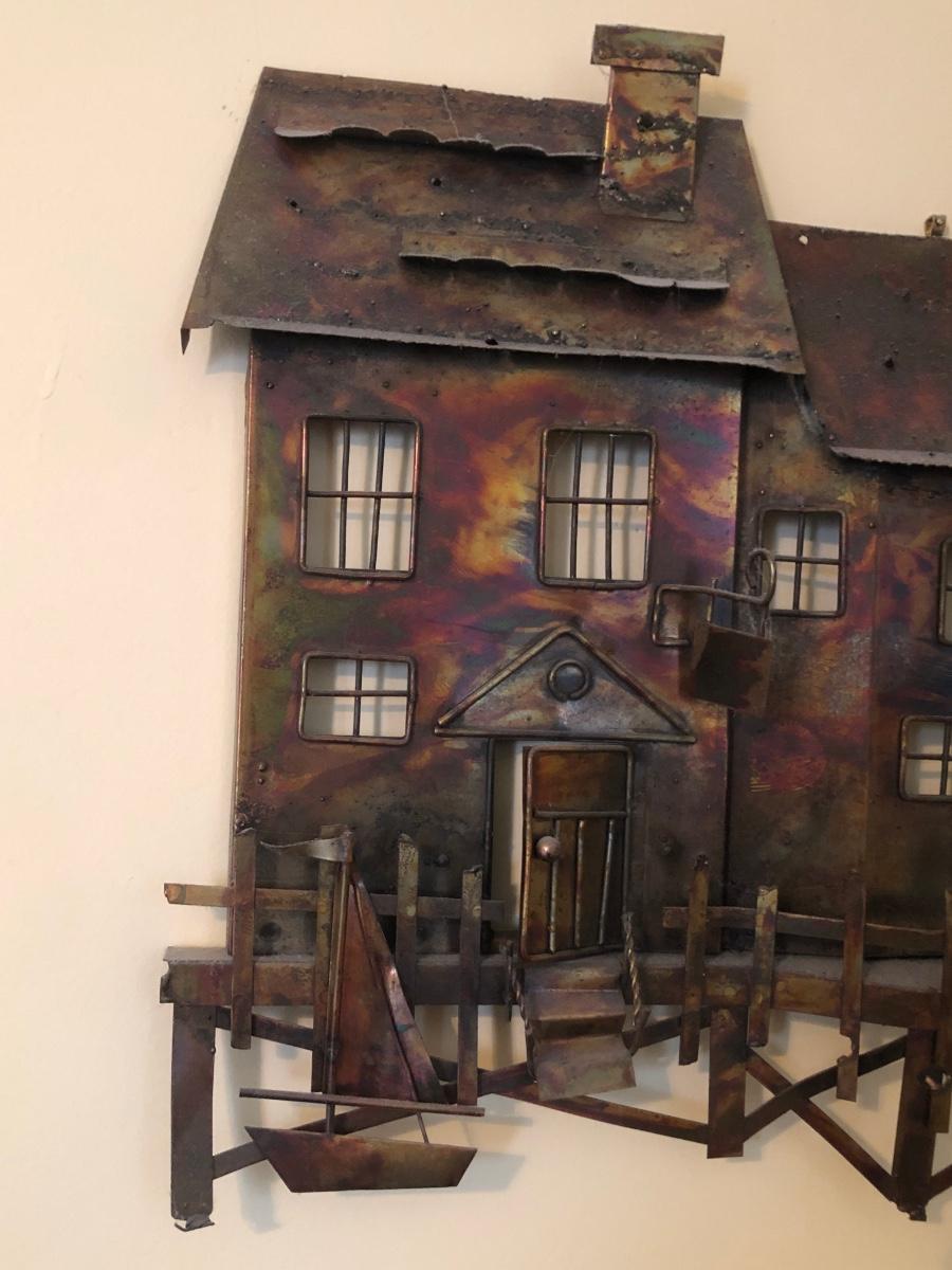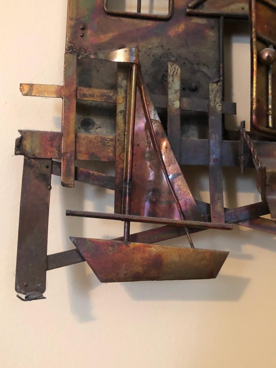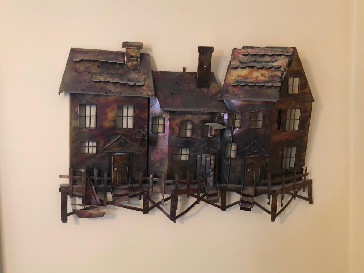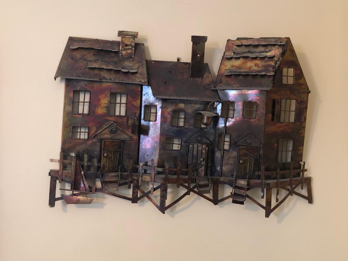LOT 75C: Mid-Century Modern Copper Houses Wall Art & Framed Dock Photograph