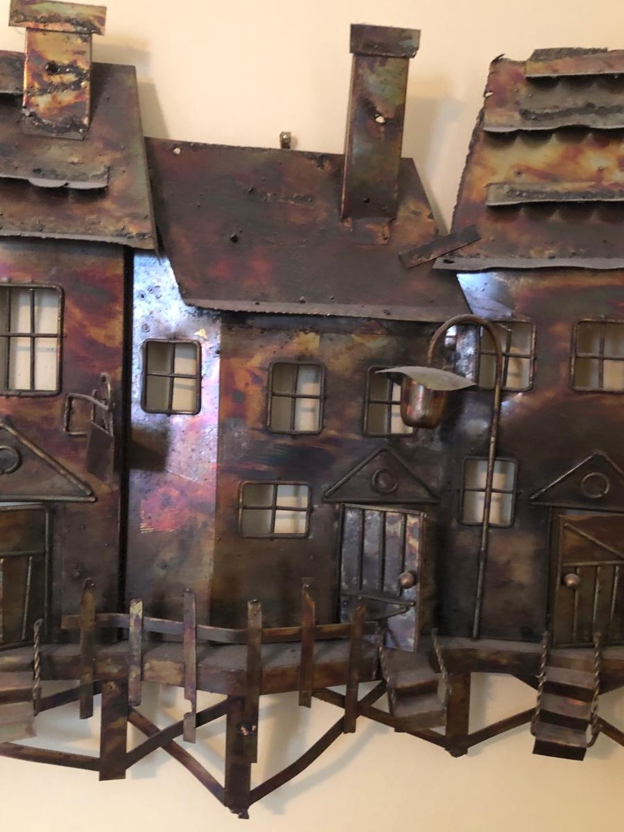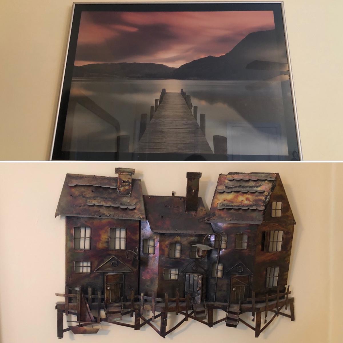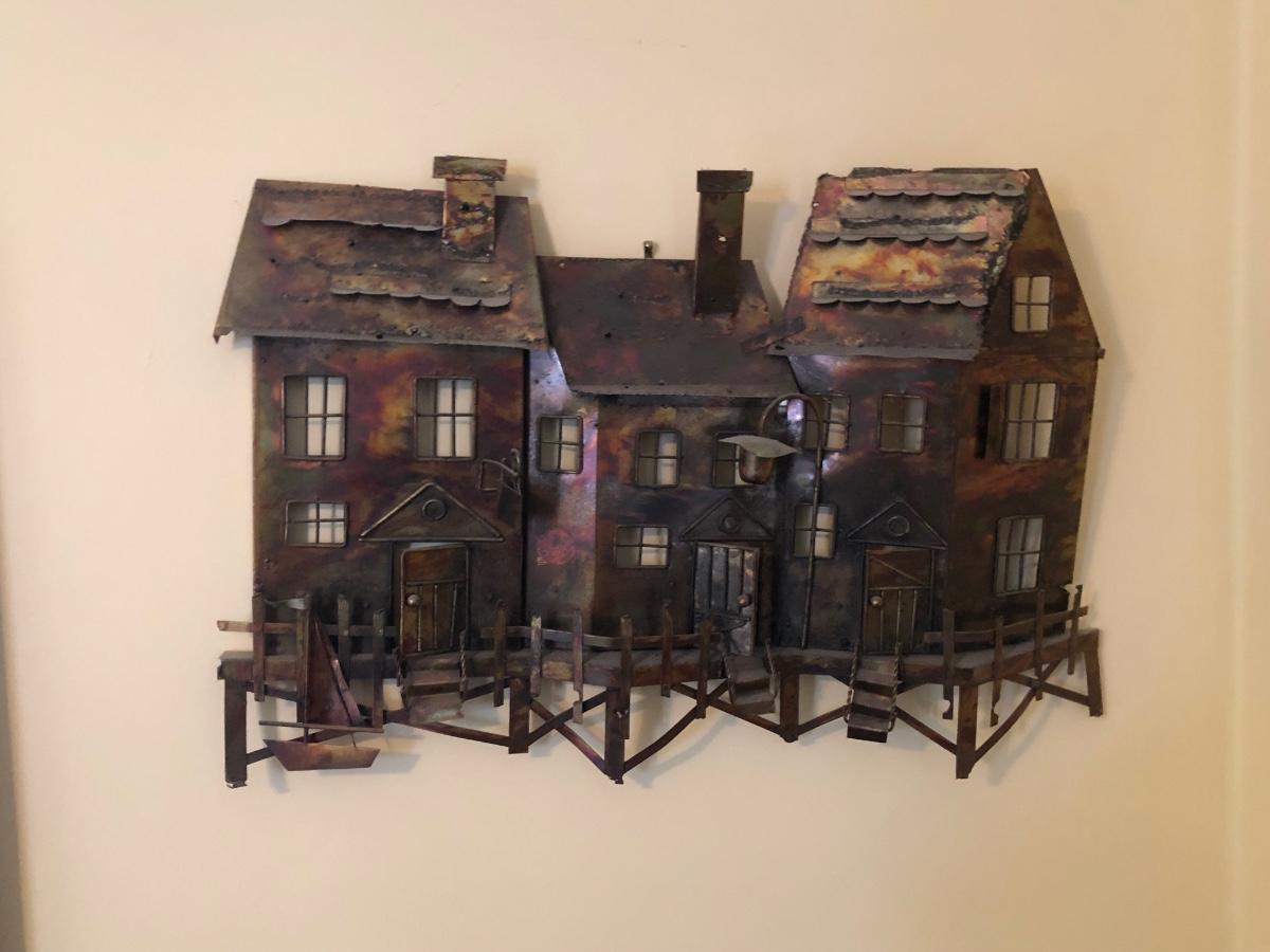 LOT 75C: Mid-Century Modern Copper Houses Wall Art & Framed Dock Photograph