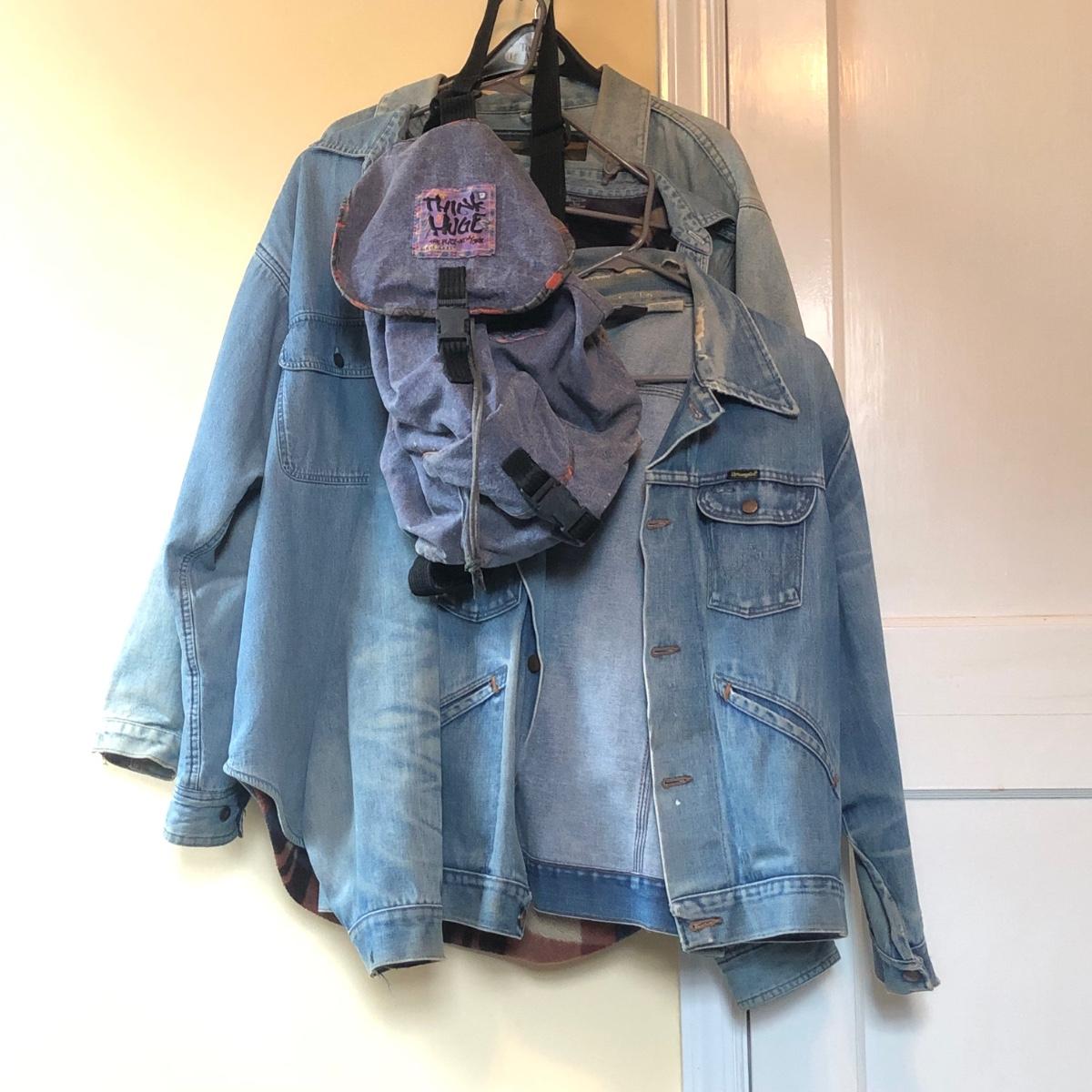 LOT 76C: Denim Jackets & Backpack - Arizona Jean Co (Large), Wrangler (Size 48), Northeast Outfitters (Large) & Think Huge Bag