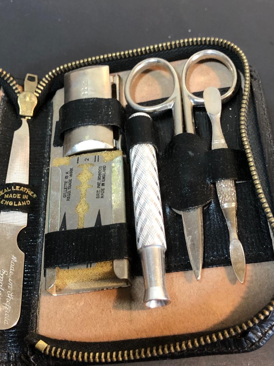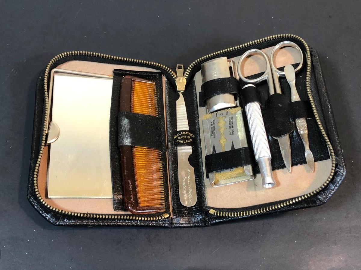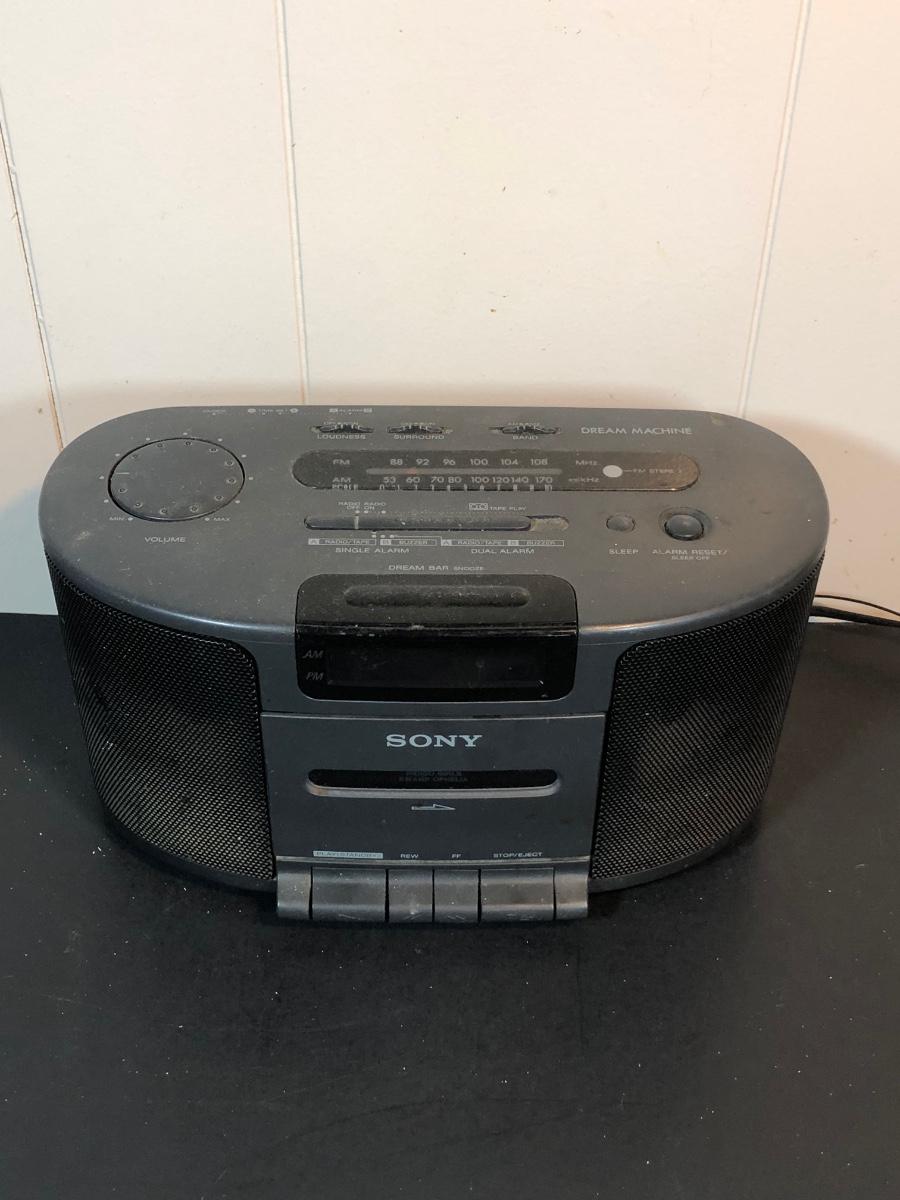 LOT 92K: Men's Dresser Collection - Vintage Grooming Kit, Sony Clock Radio Model ICF-CS650, Glasses & Cases