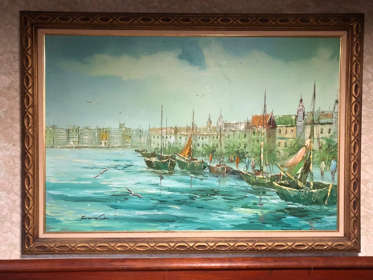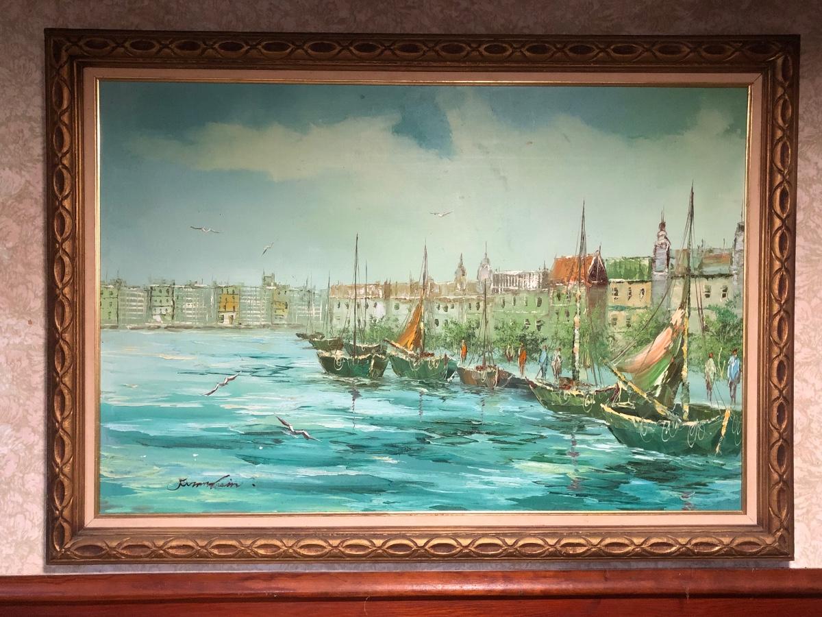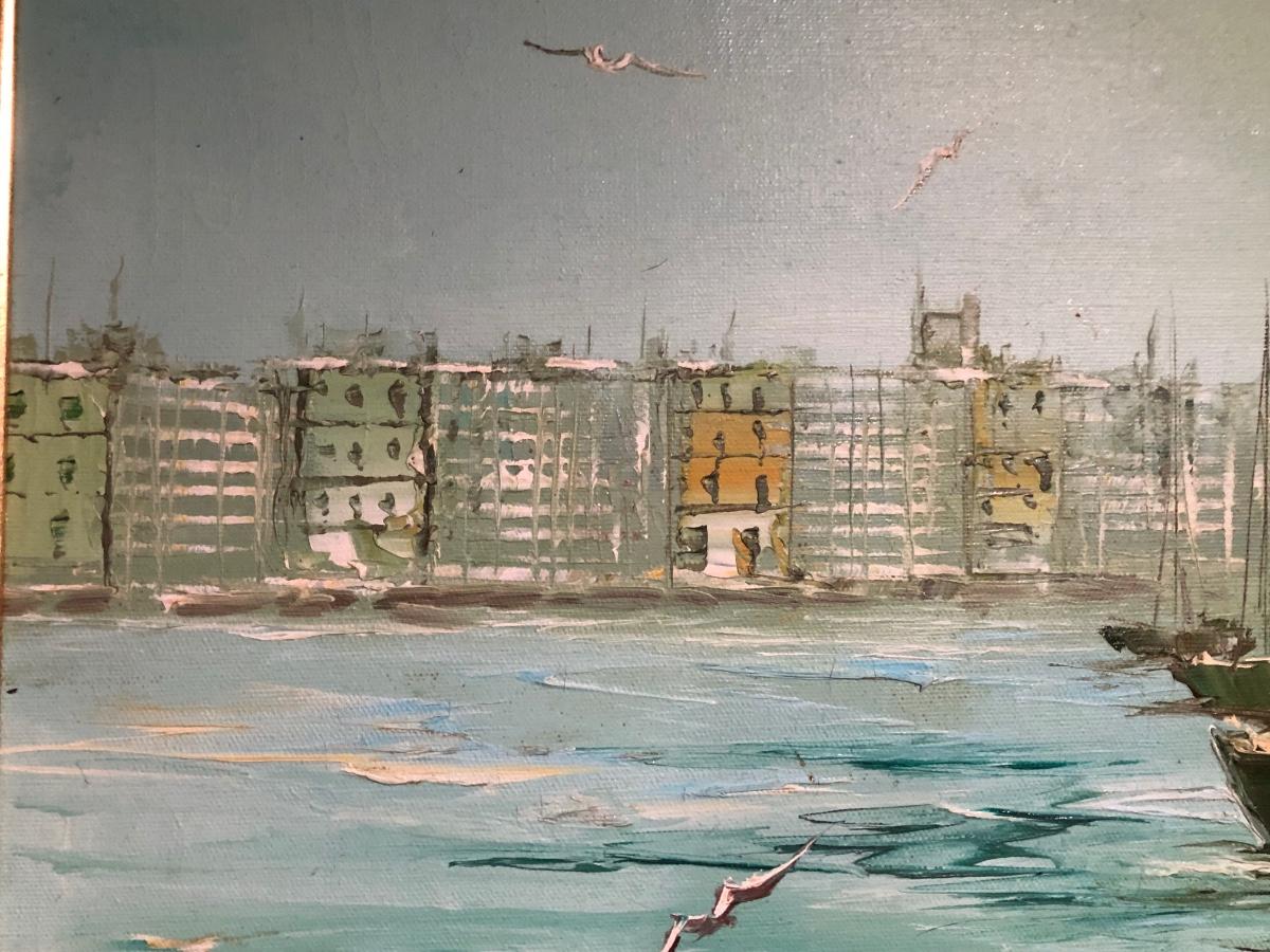 LOT 100B: Signed & Framed Harbor Seascape Painting