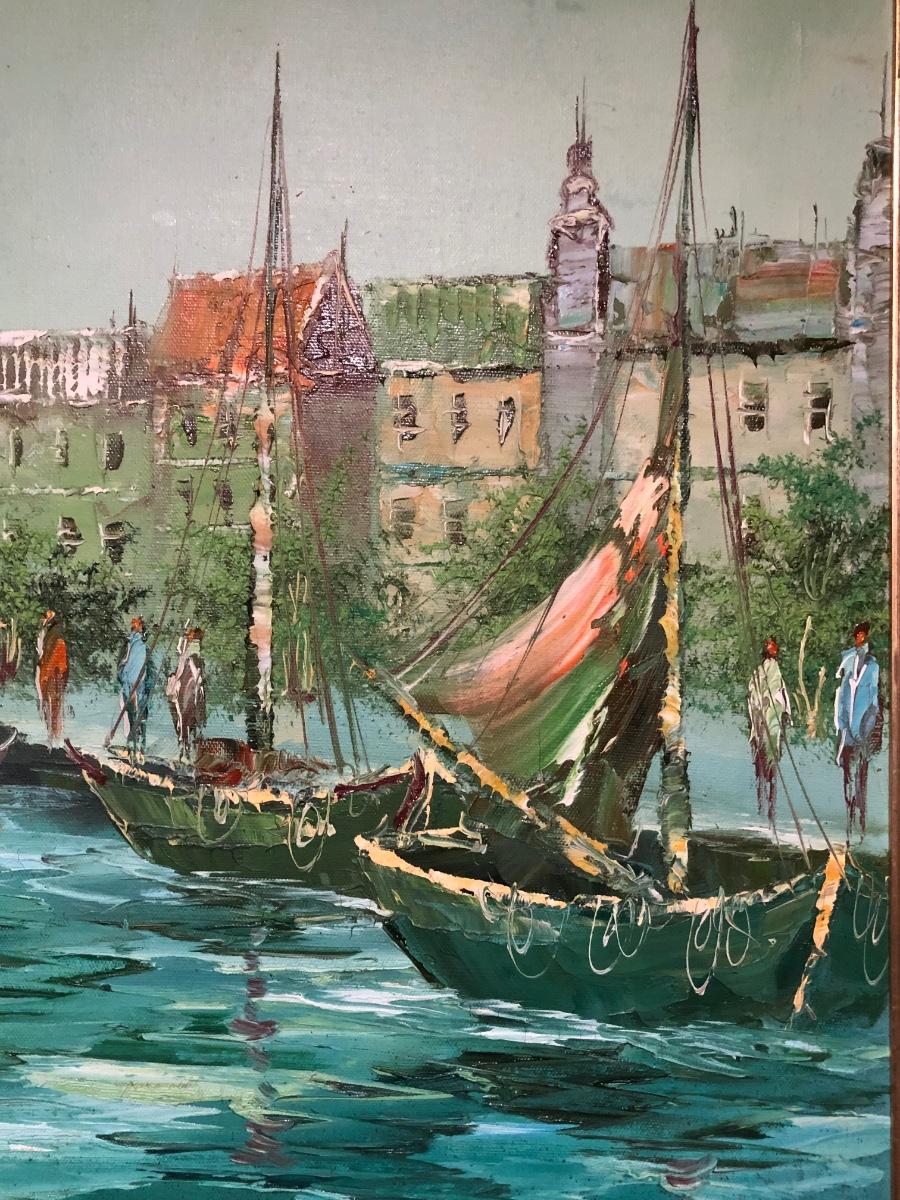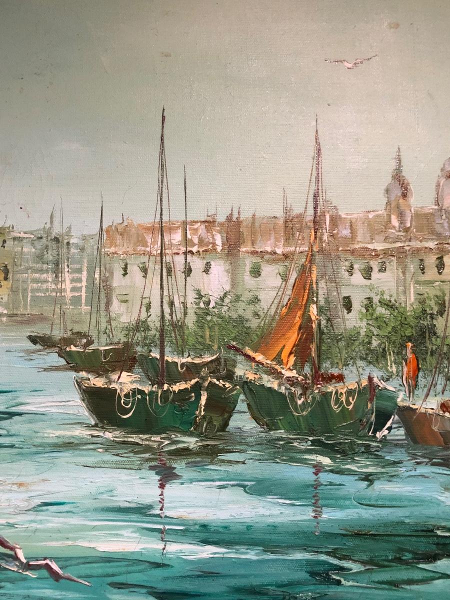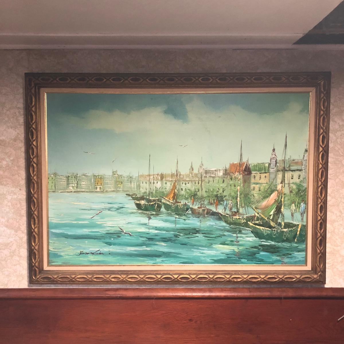 LOT 100B: Signed & Framed Harbor Seascape Painting
