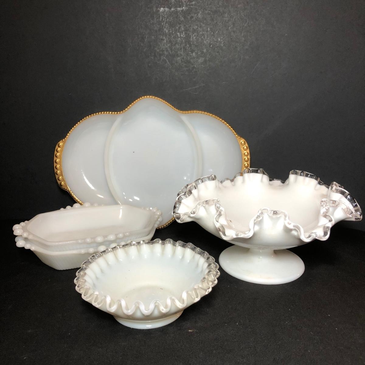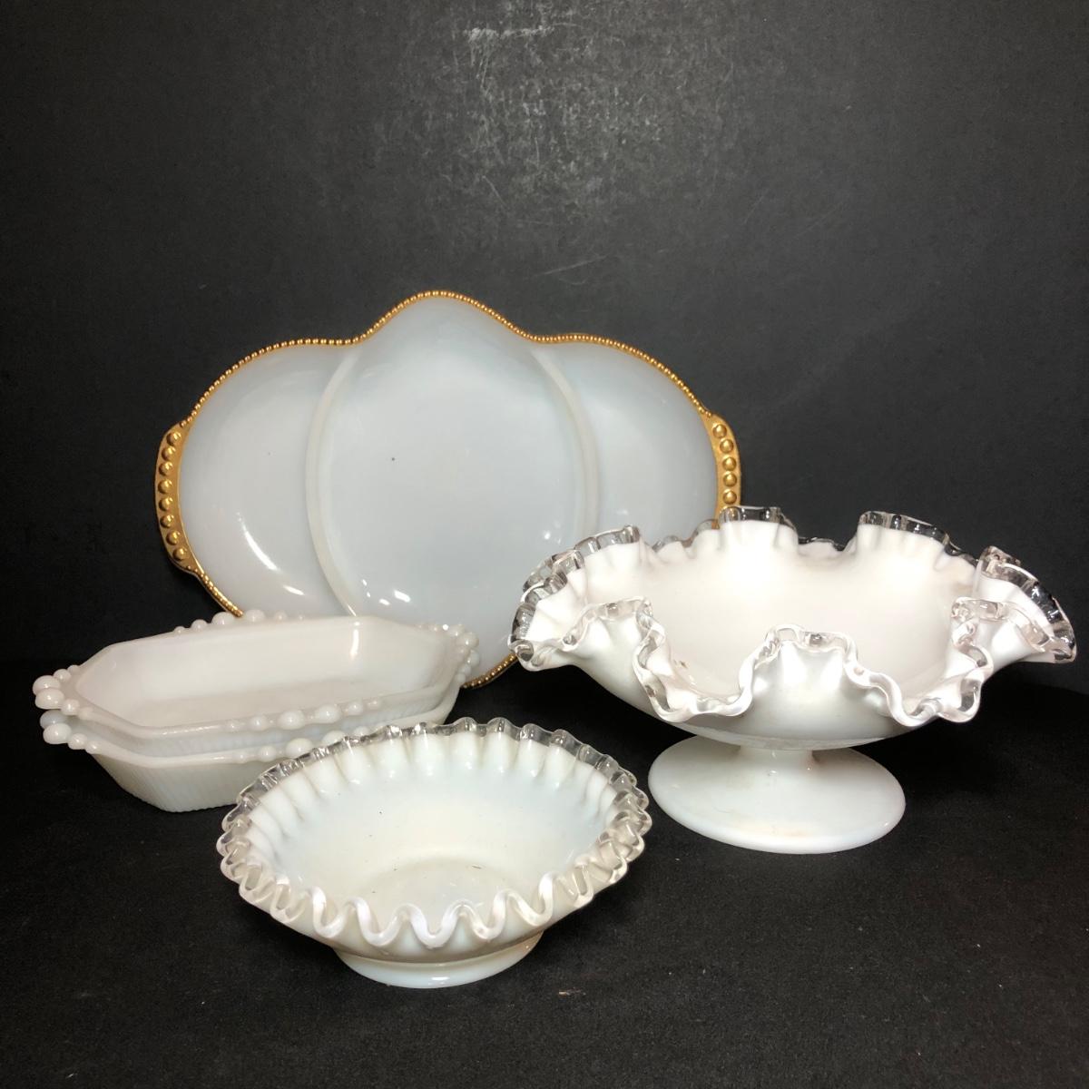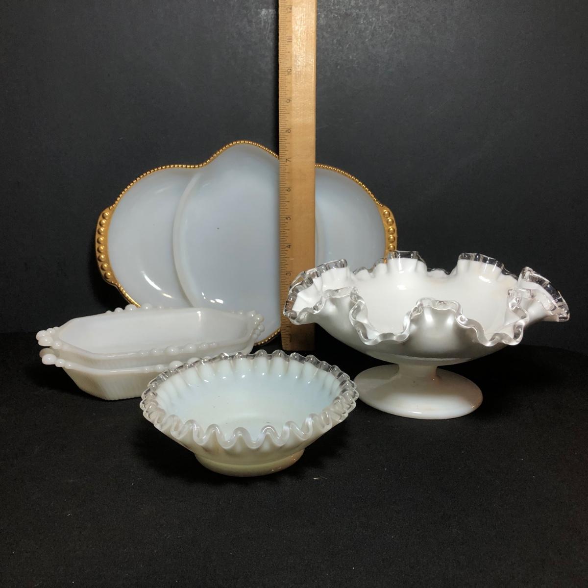 LOT 107B: Vintage Milk Glass - Fireking, Fenton Style Ruffled Edge & More