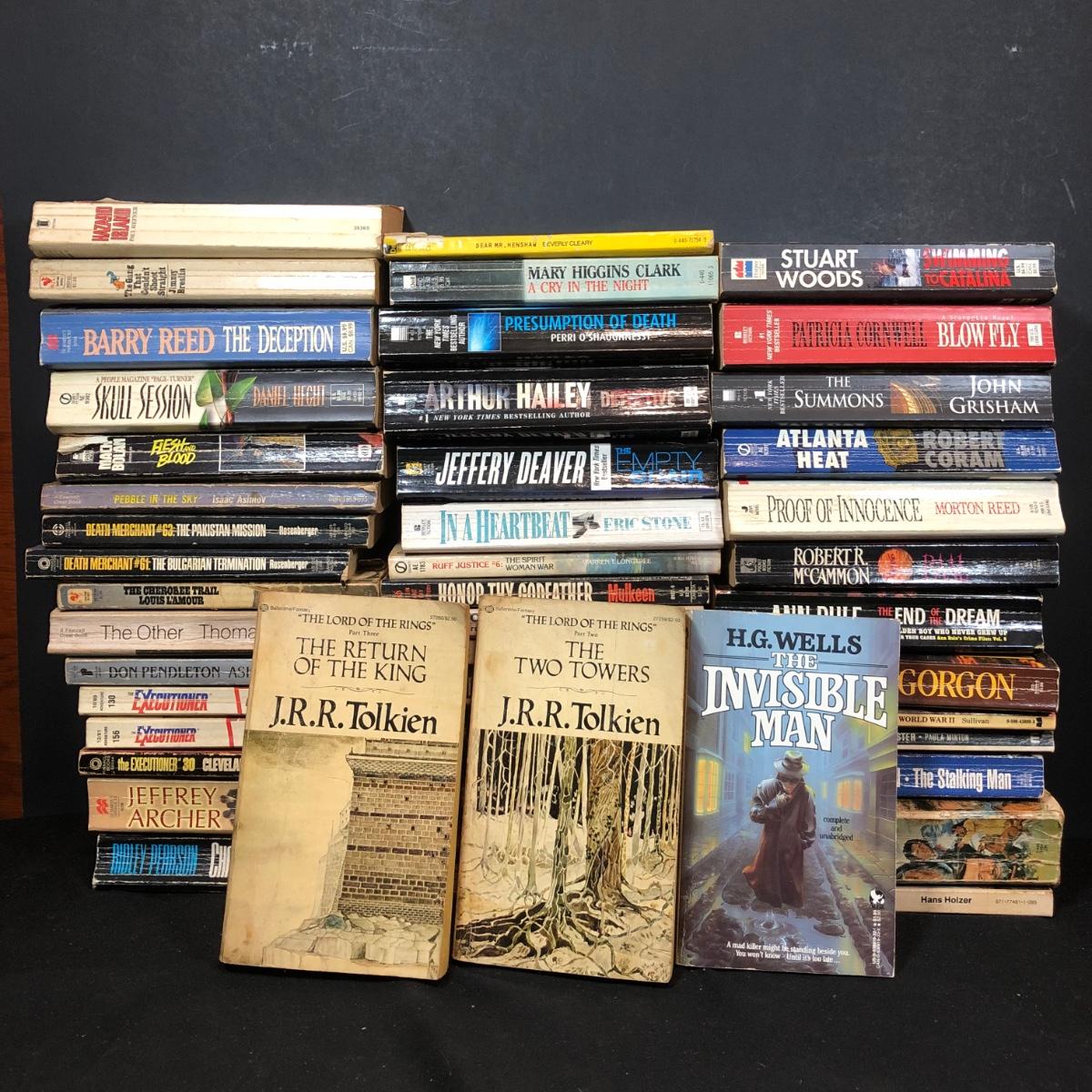 LOT 117B: Paperback Novel Collection - J.R.R. Tolkien, H.G. Wells, John Grisham & More