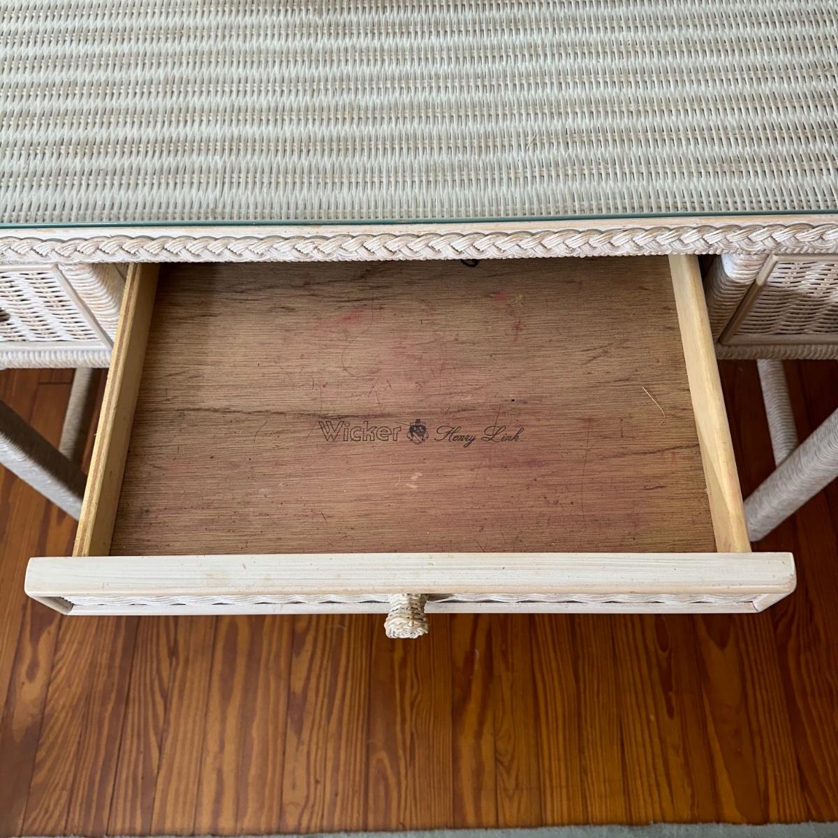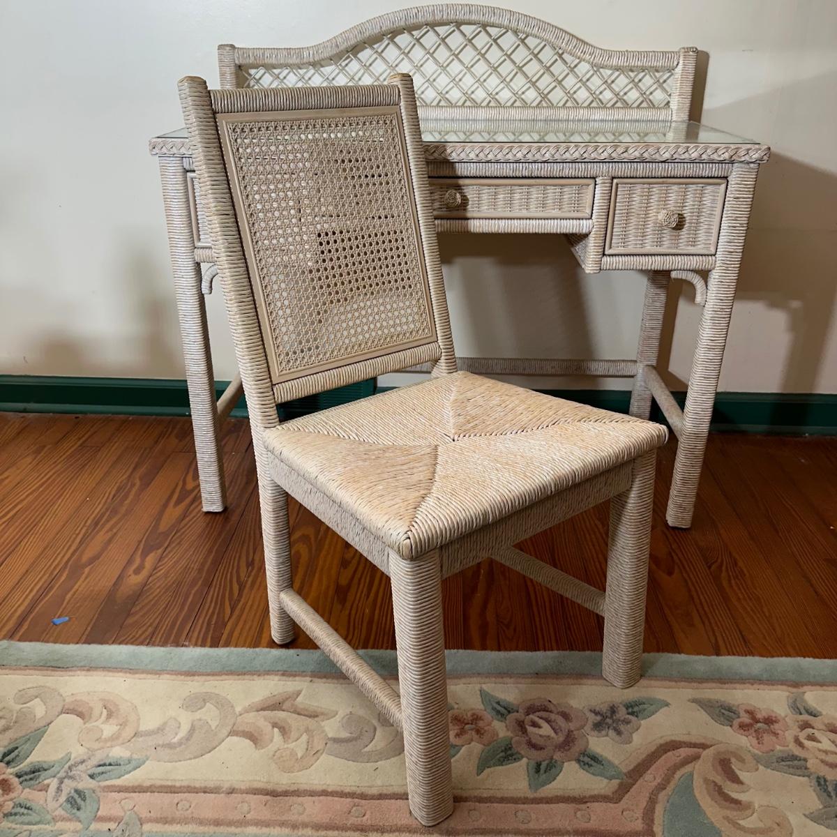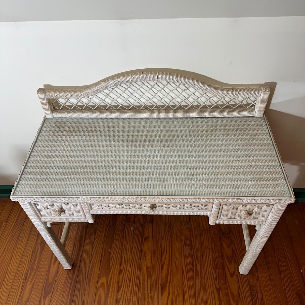 LOT 129X: Henry Link White Wicker Glass Top Writing Desk W/ Chair