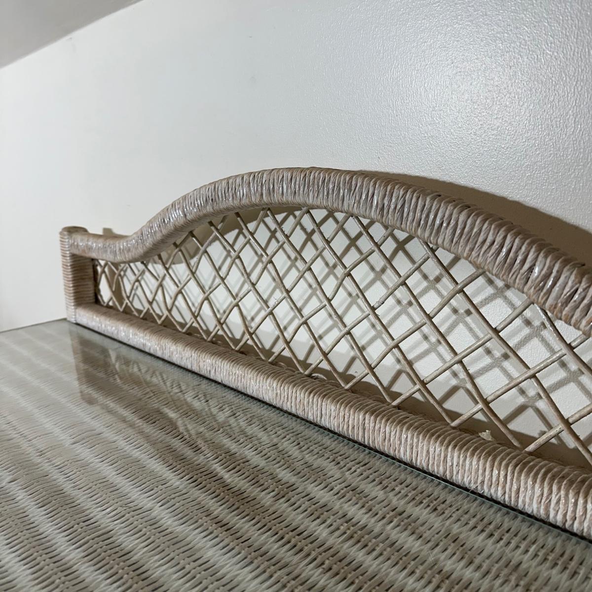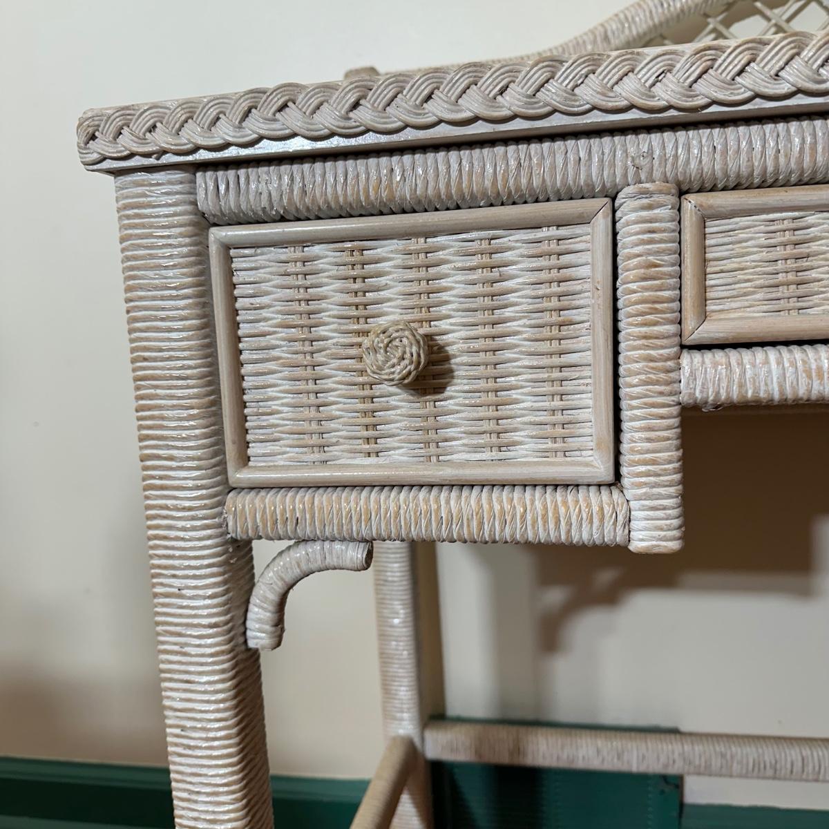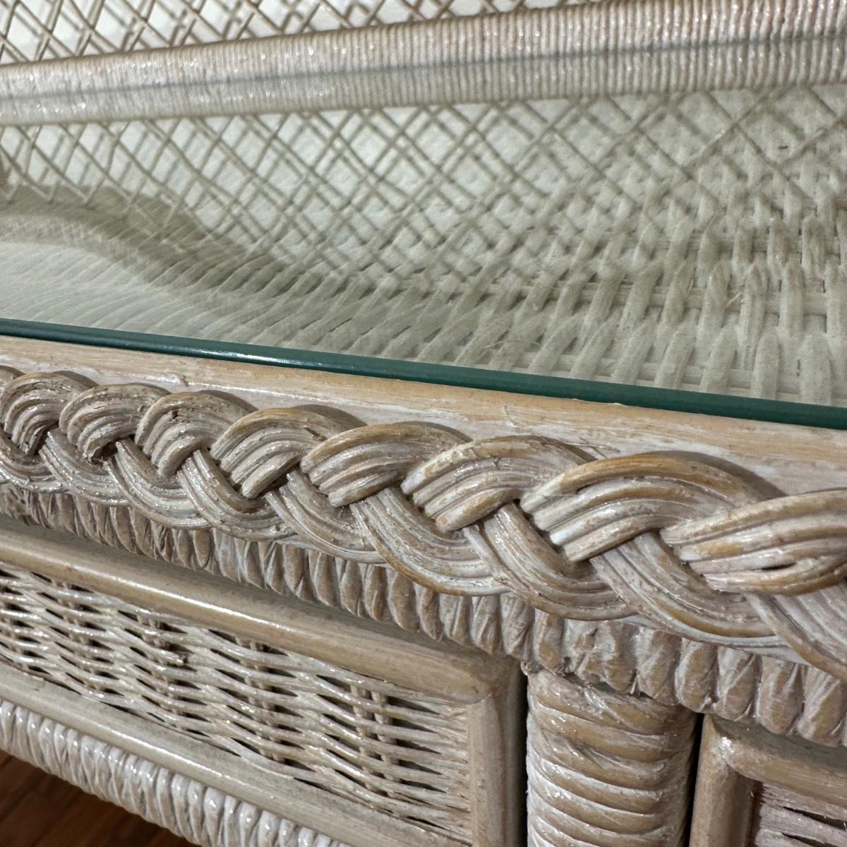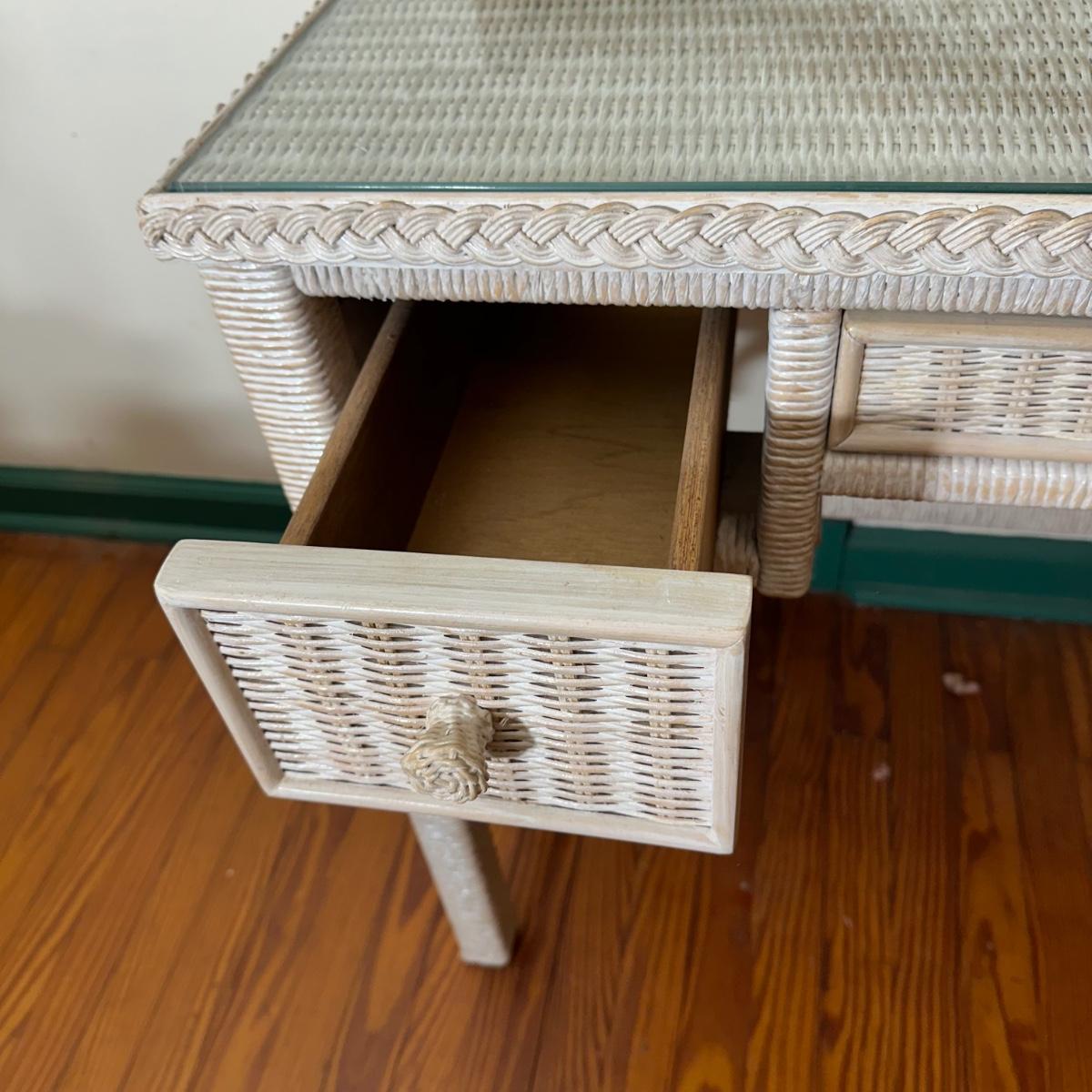 LOT 129X: Henry Link White Wicker Glass Top Writing Desk W/ Chair