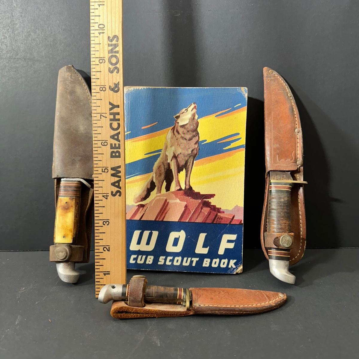 LOT 143X: Vintage Boy Scouts Of America Knifes & Wolf Cub Scout Book