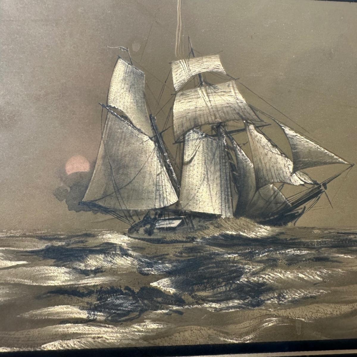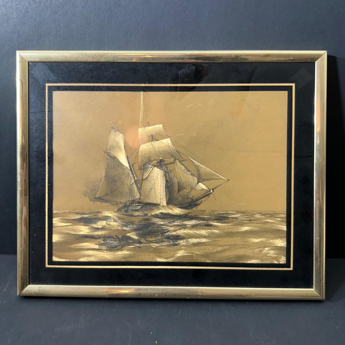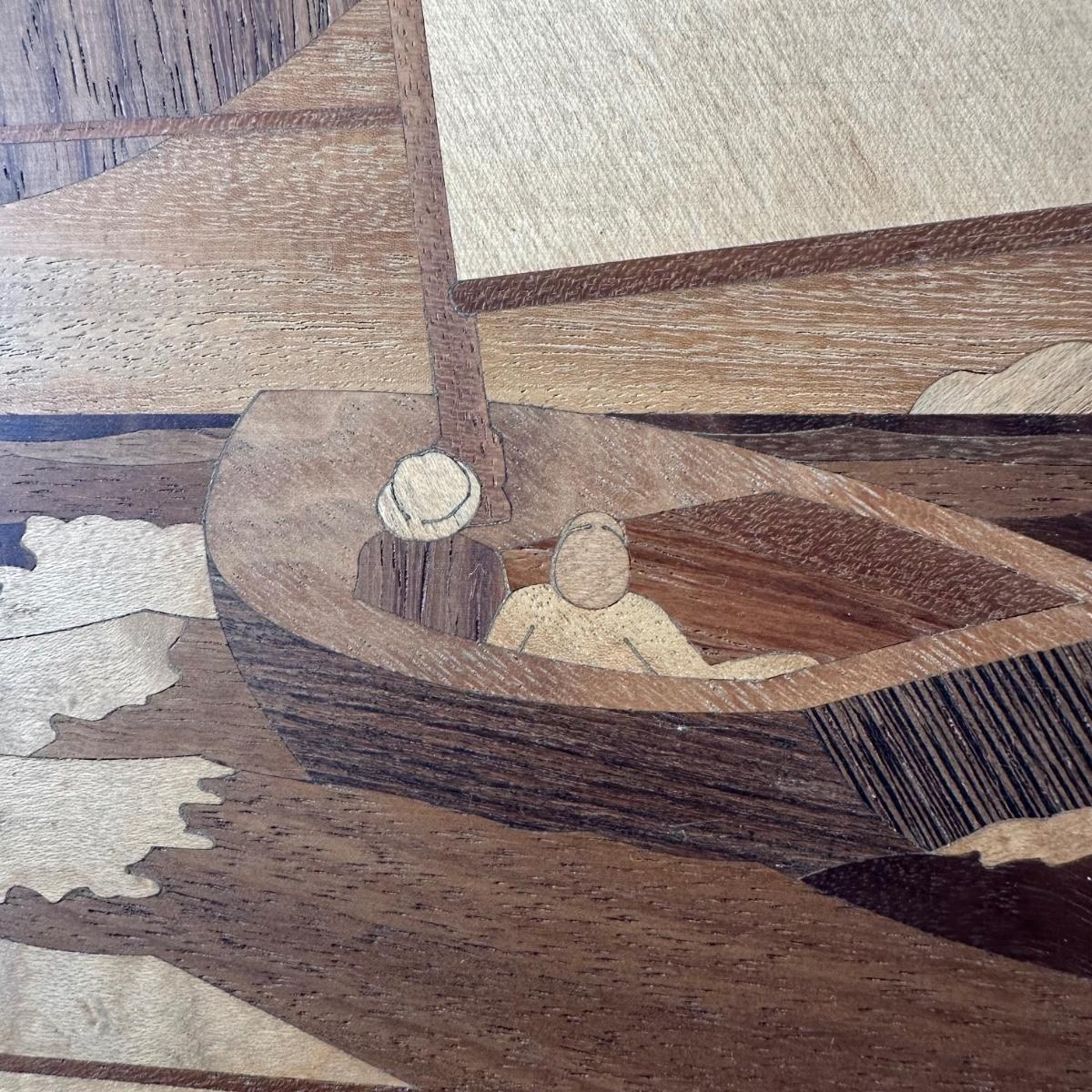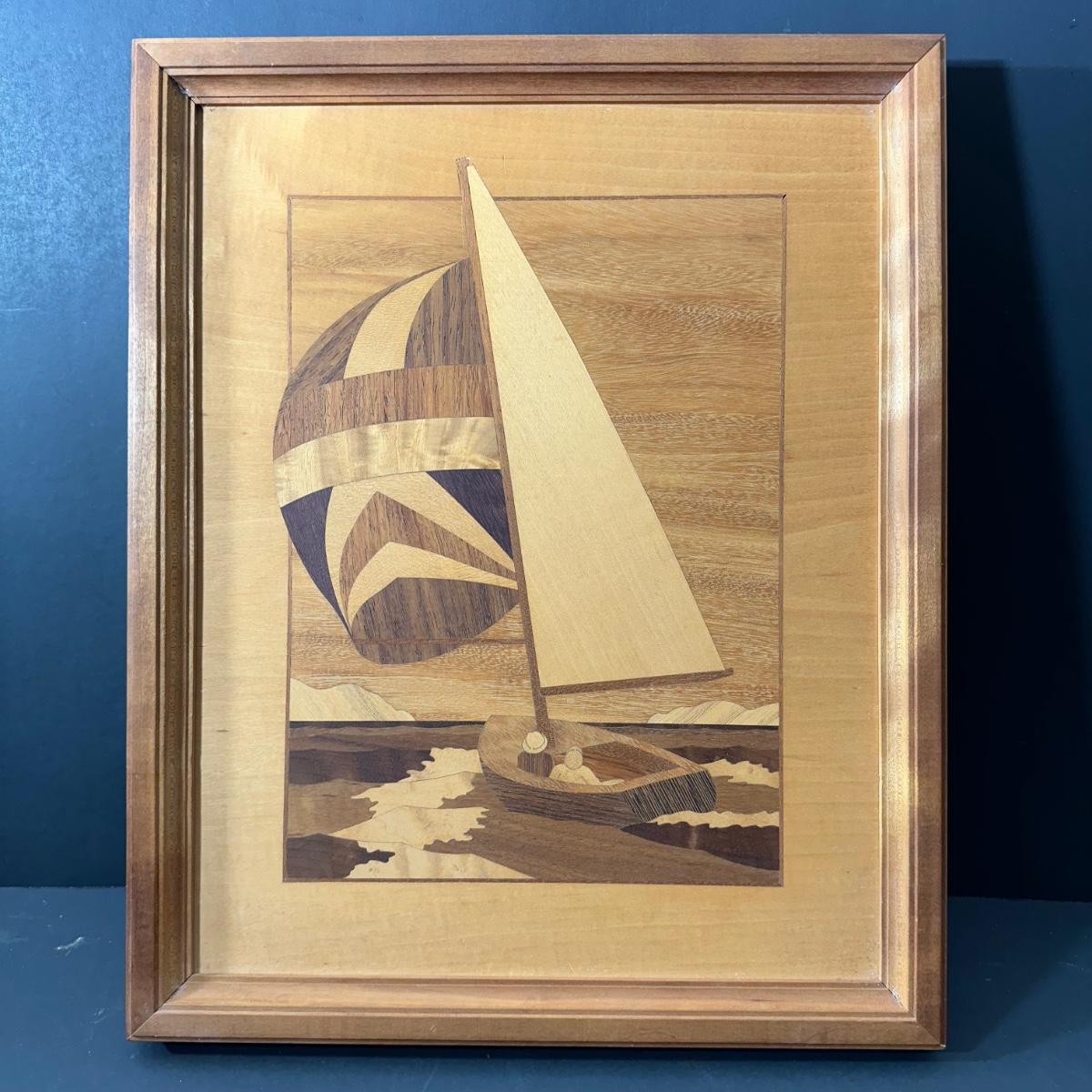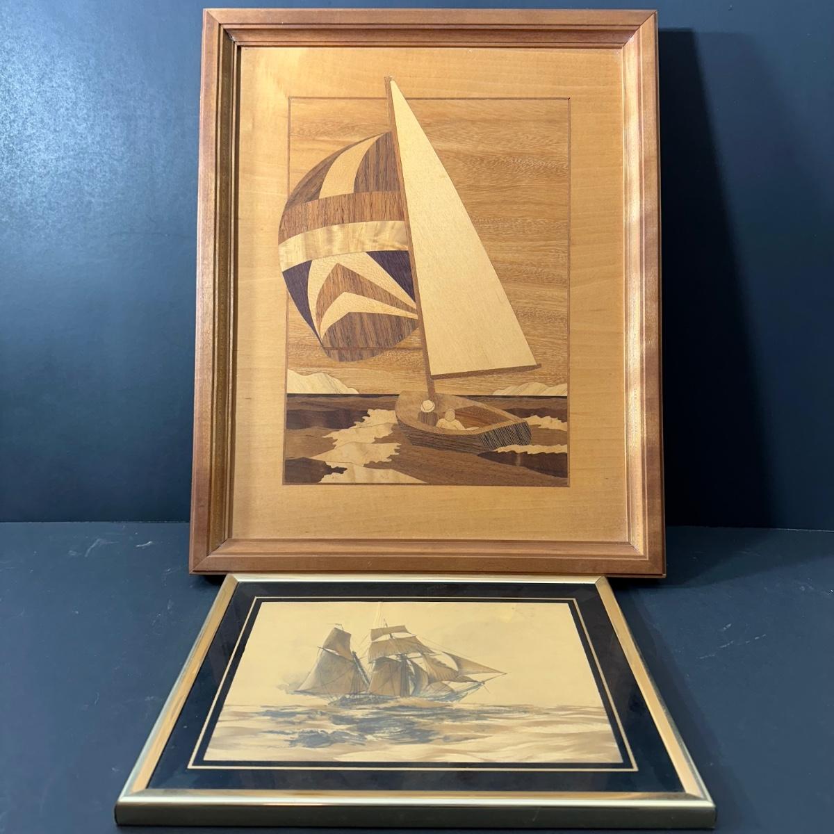 LOT 145X: Nautical Wall Art - MCM Inlaid Wood & Gold Foil Art