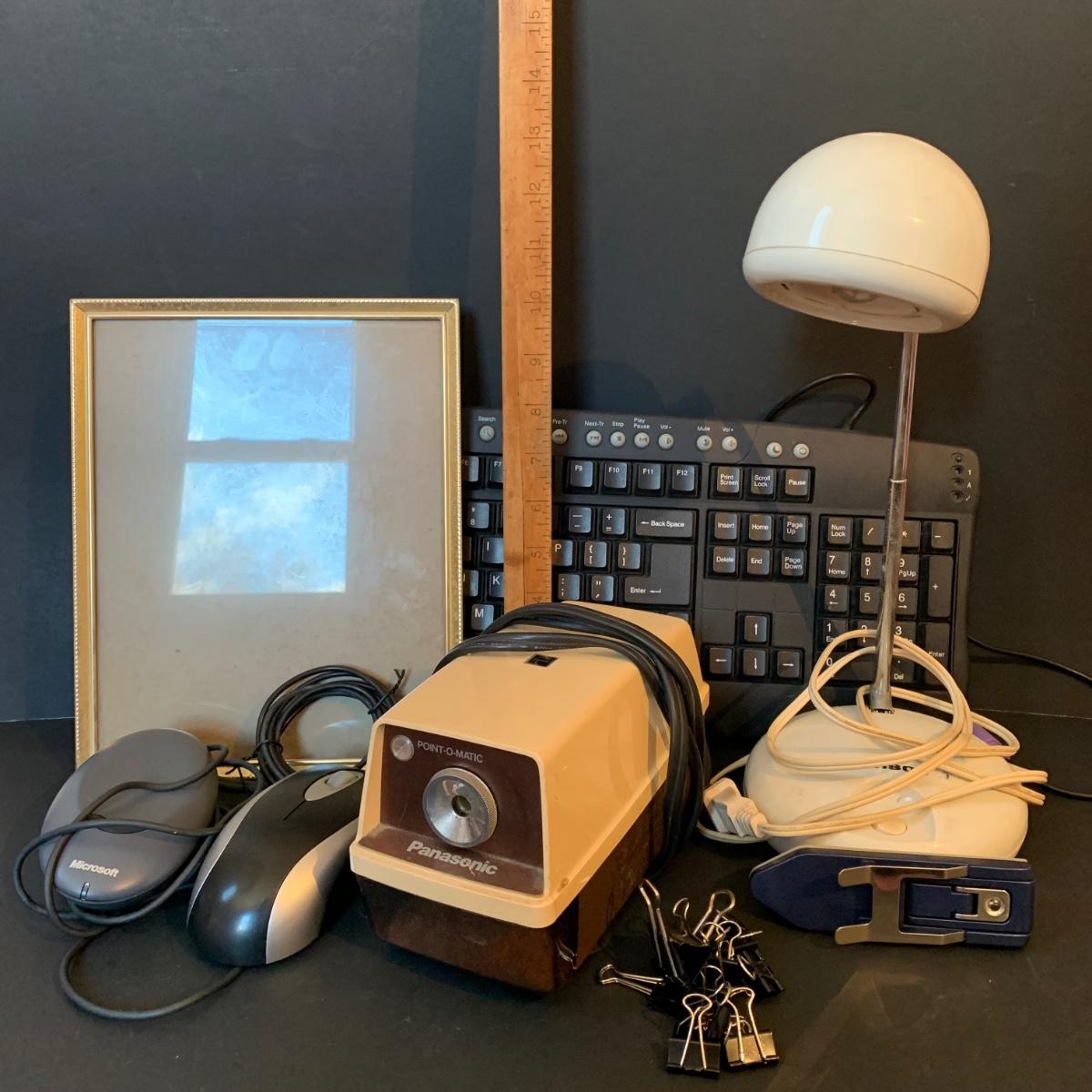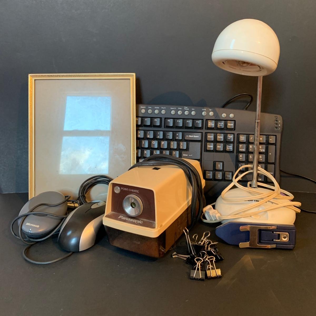 LOT 147 Y: Office Collection: Vintage Panasonic Electric Pencil Sharpener, Tenson Portable Desk Lamp, Book Light & More