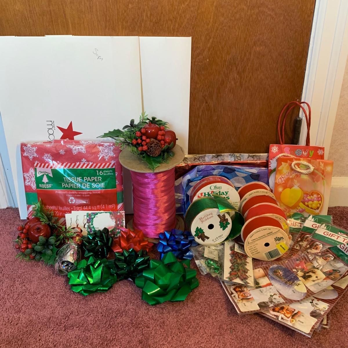 LOT 149 Y: Christmas Wrapping Collection: Wrapping Paper, Bows, Boxes, Tissue Paper, Ribbons, & More