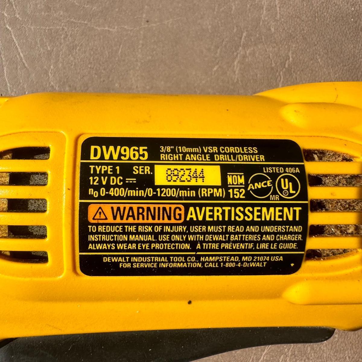 LOT 167S: 3/8" Cordless Right Angle Drill/Driver DW965 w/ Charger & Case