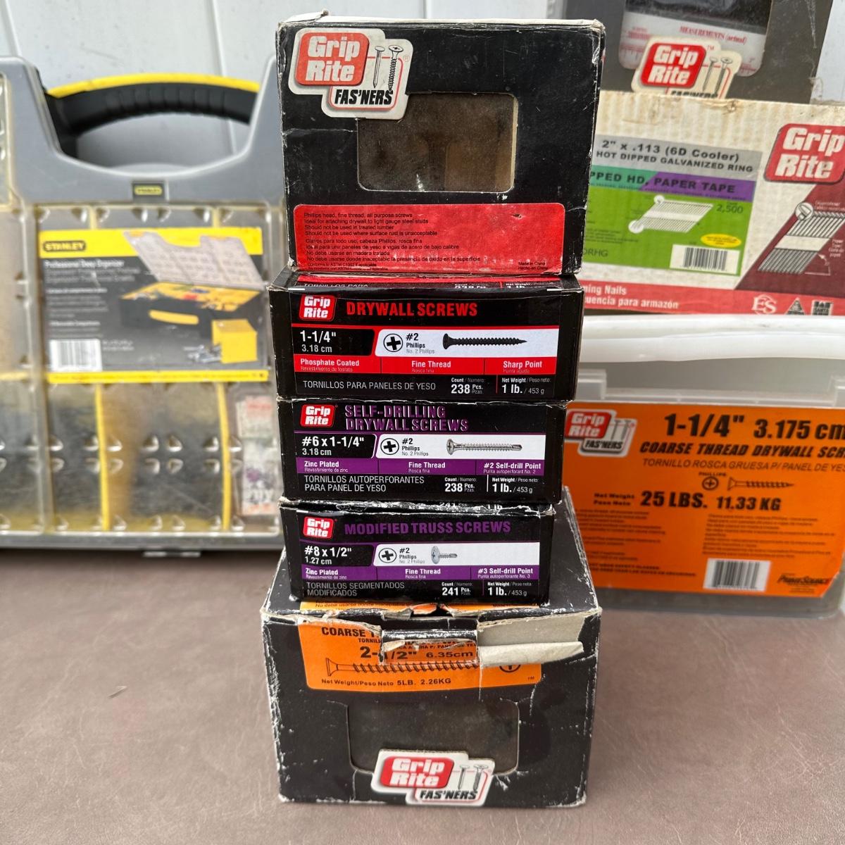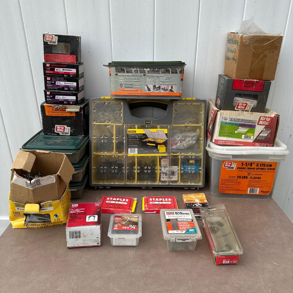 LOT 174S: Stanley Professional Deep Organizer w/ Assorted Hardware - Drywall Screws, Nails & More