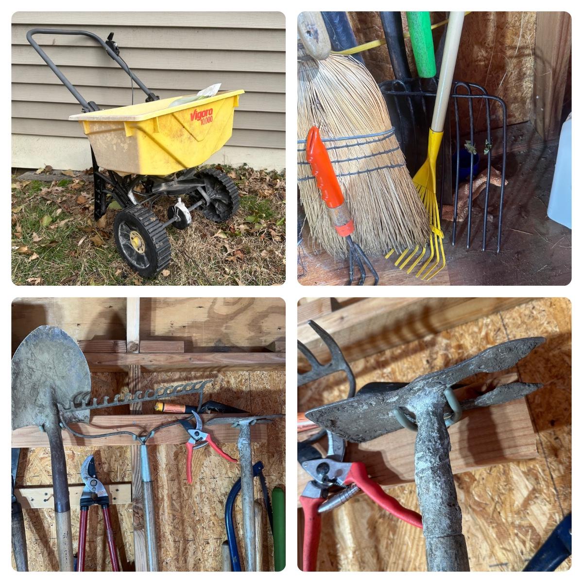 LOT 178S: Gardening Tools w/ Vigoro 10,000 Lawn Spreader & Sprinkler