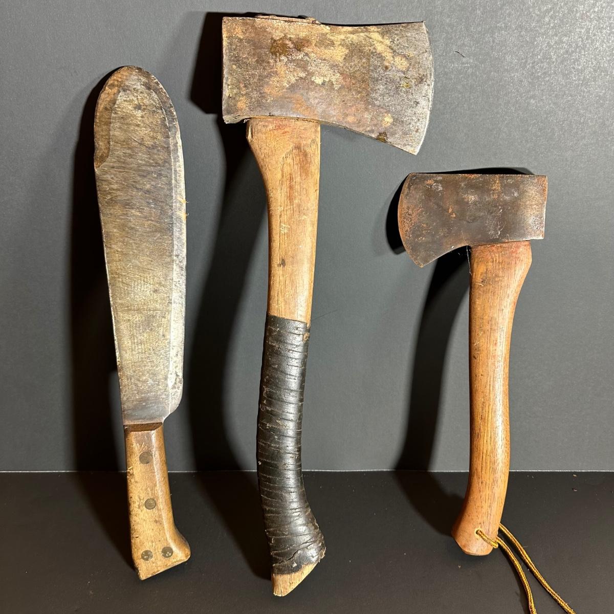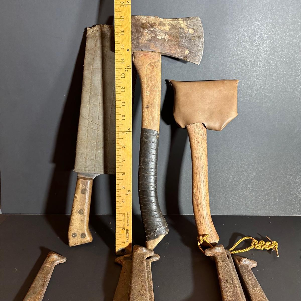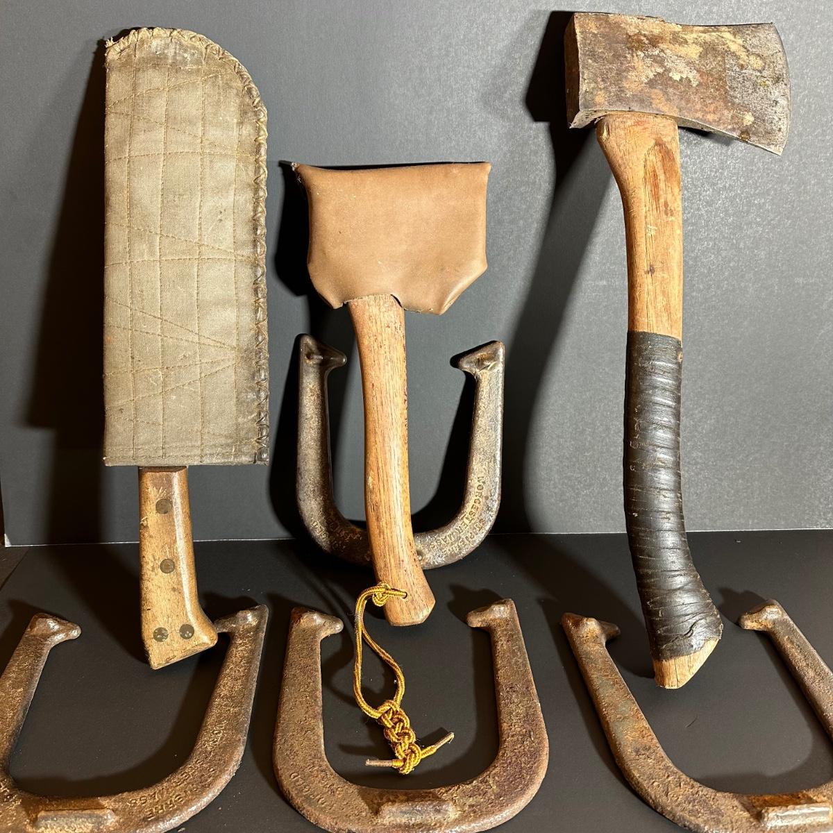 LOT 193S: Vintage USMC Village Blacksmith Bolo Knife & Hatchets & Horseshoes