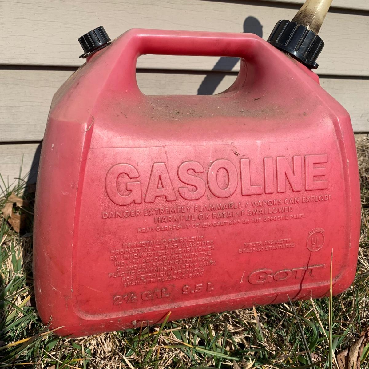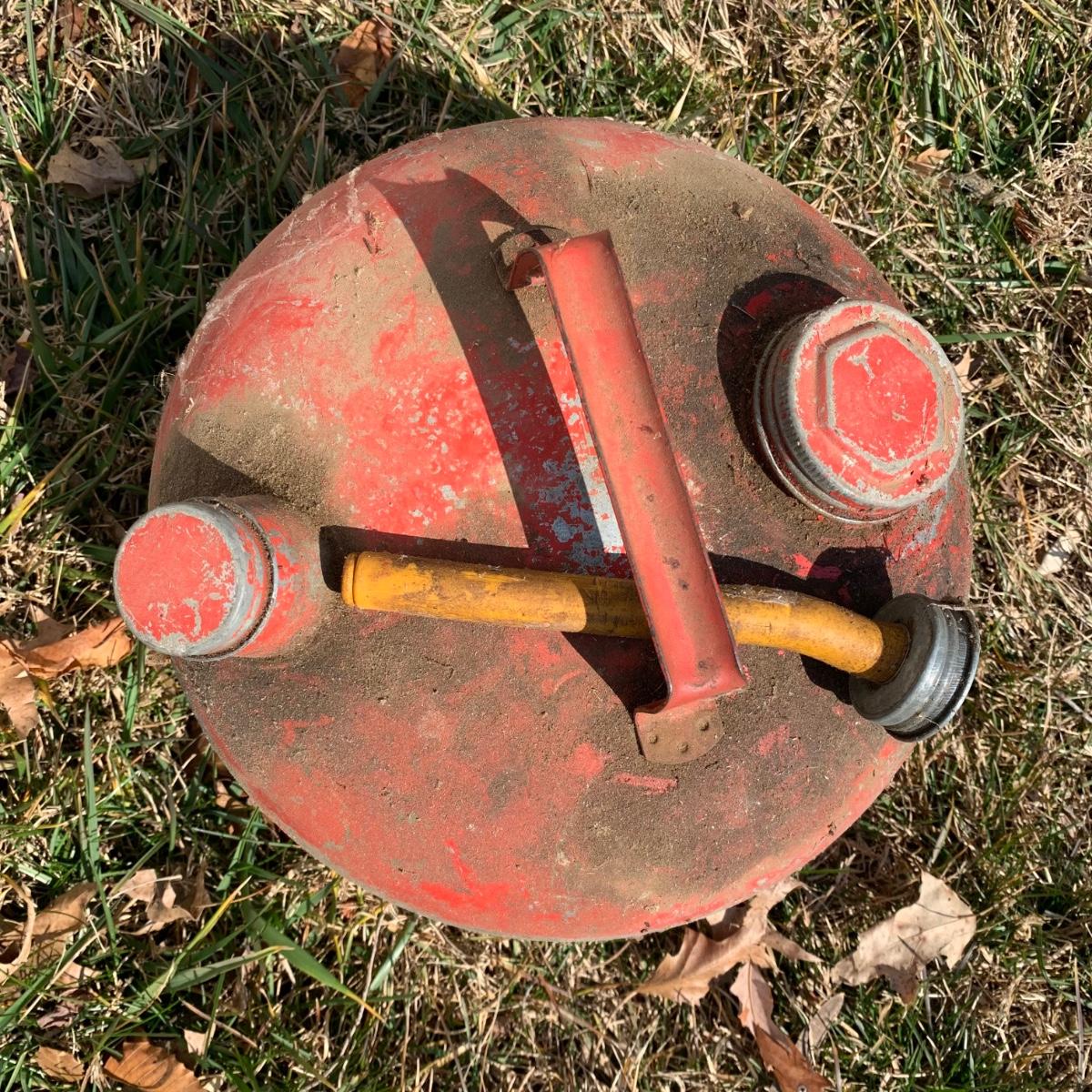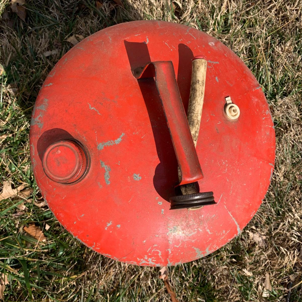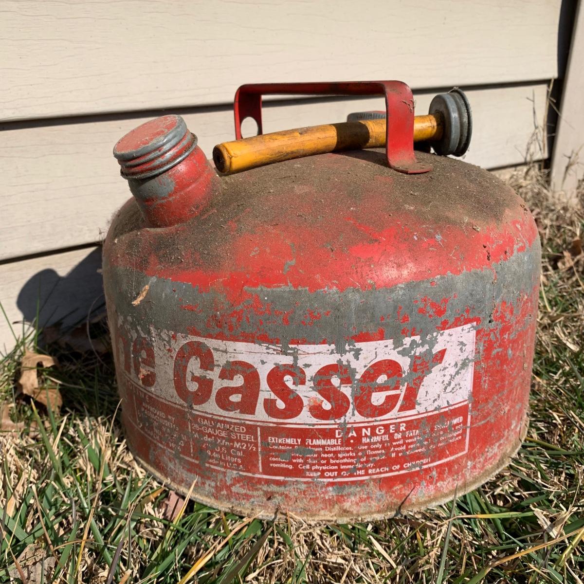 LOT 203 S: 2 Vintage Galvanised Steel Eagle Gas Cans: 5 & 2.5 Gallons & Plastic Gas Can
